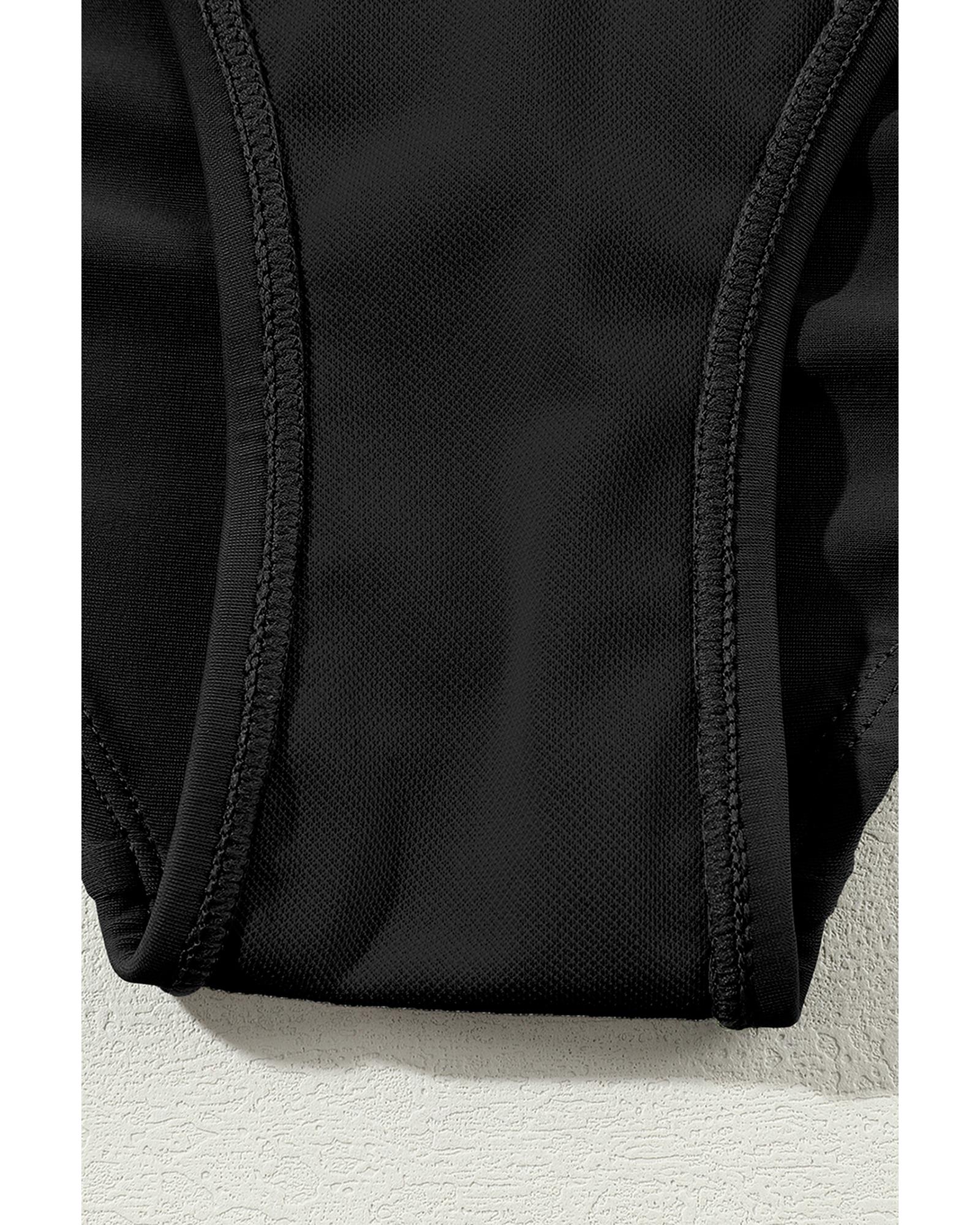 Black Contrast Trim Colorblock U Neck One Piece Swimwear – 2XL