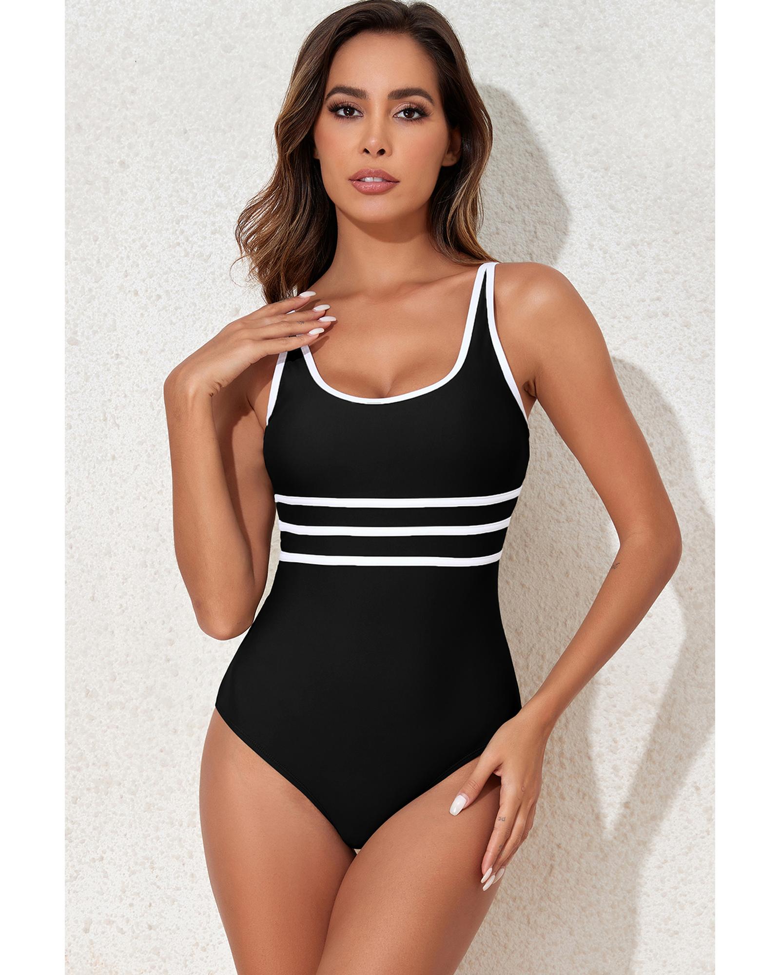 - Black Contrast Trim Colorblock U Neck One Piece Swimwear