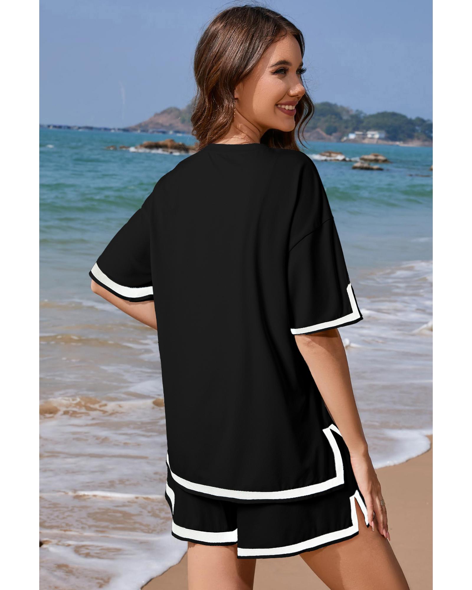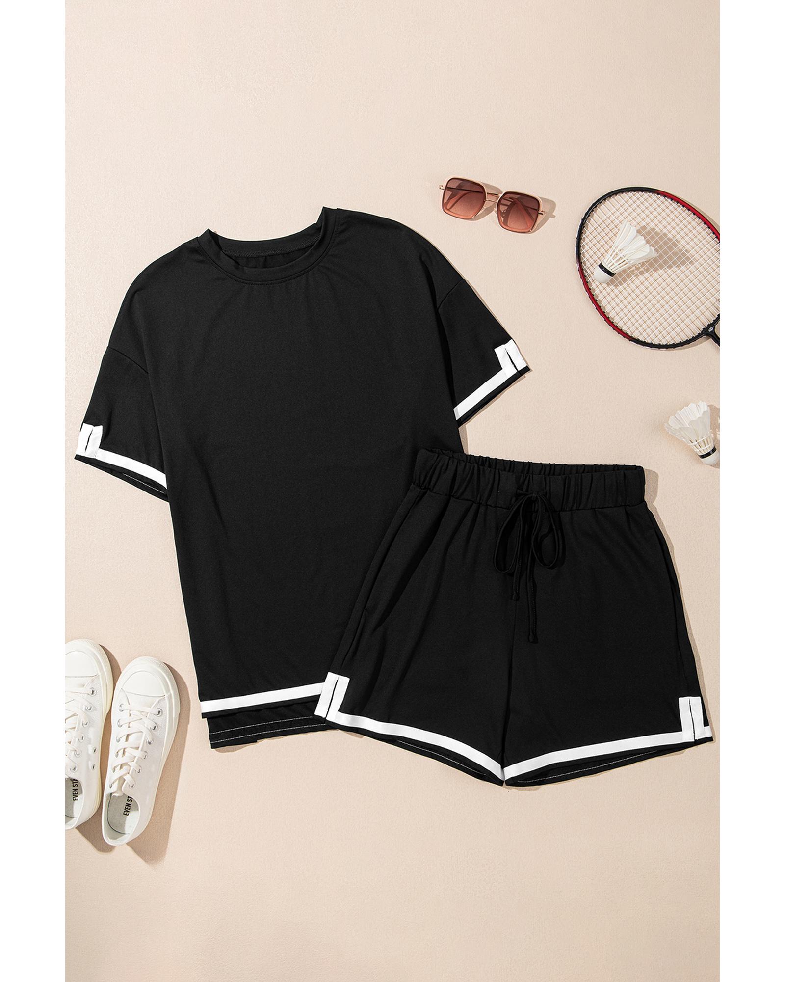 Black Contrast Trim Tee and Shorts Set – S