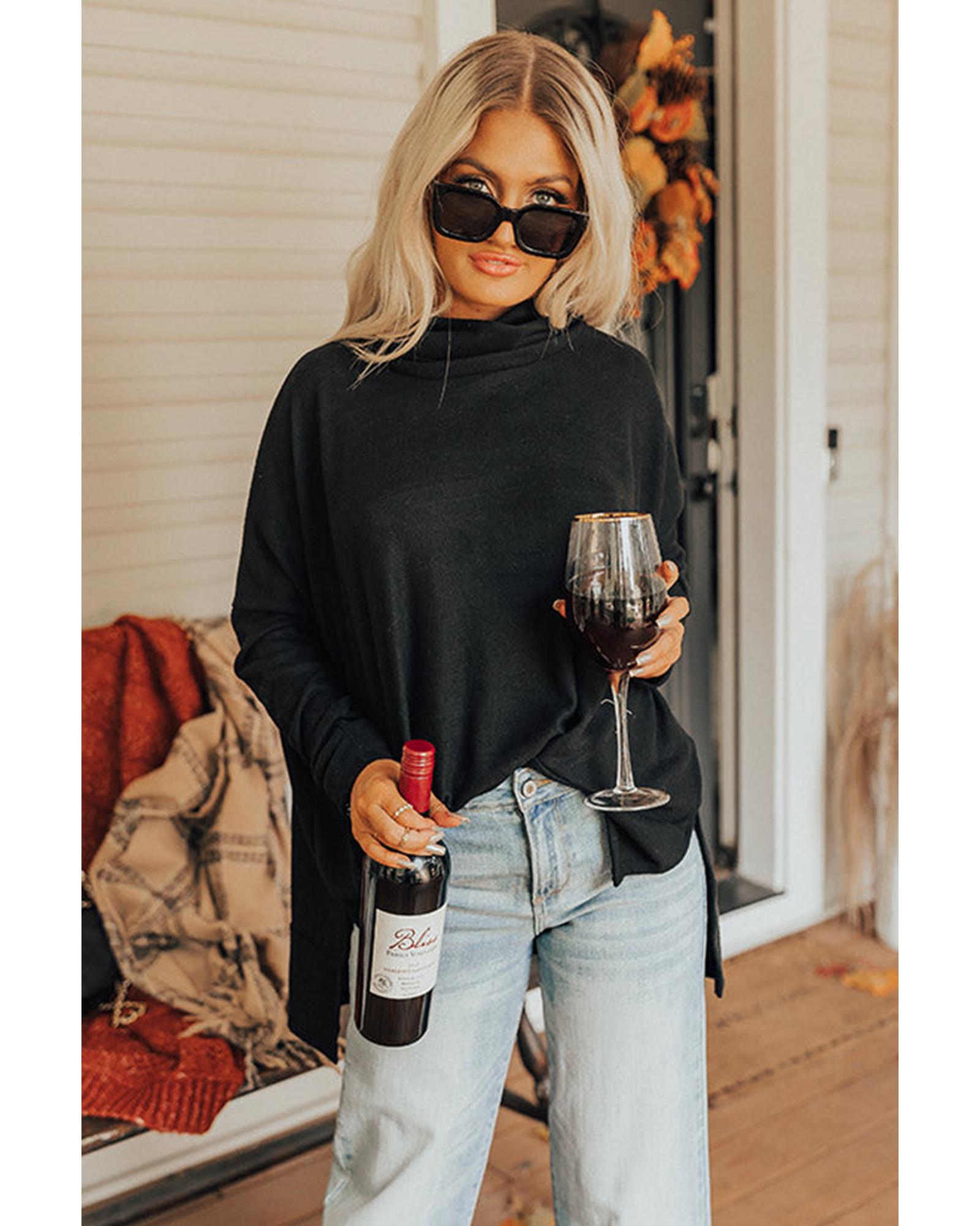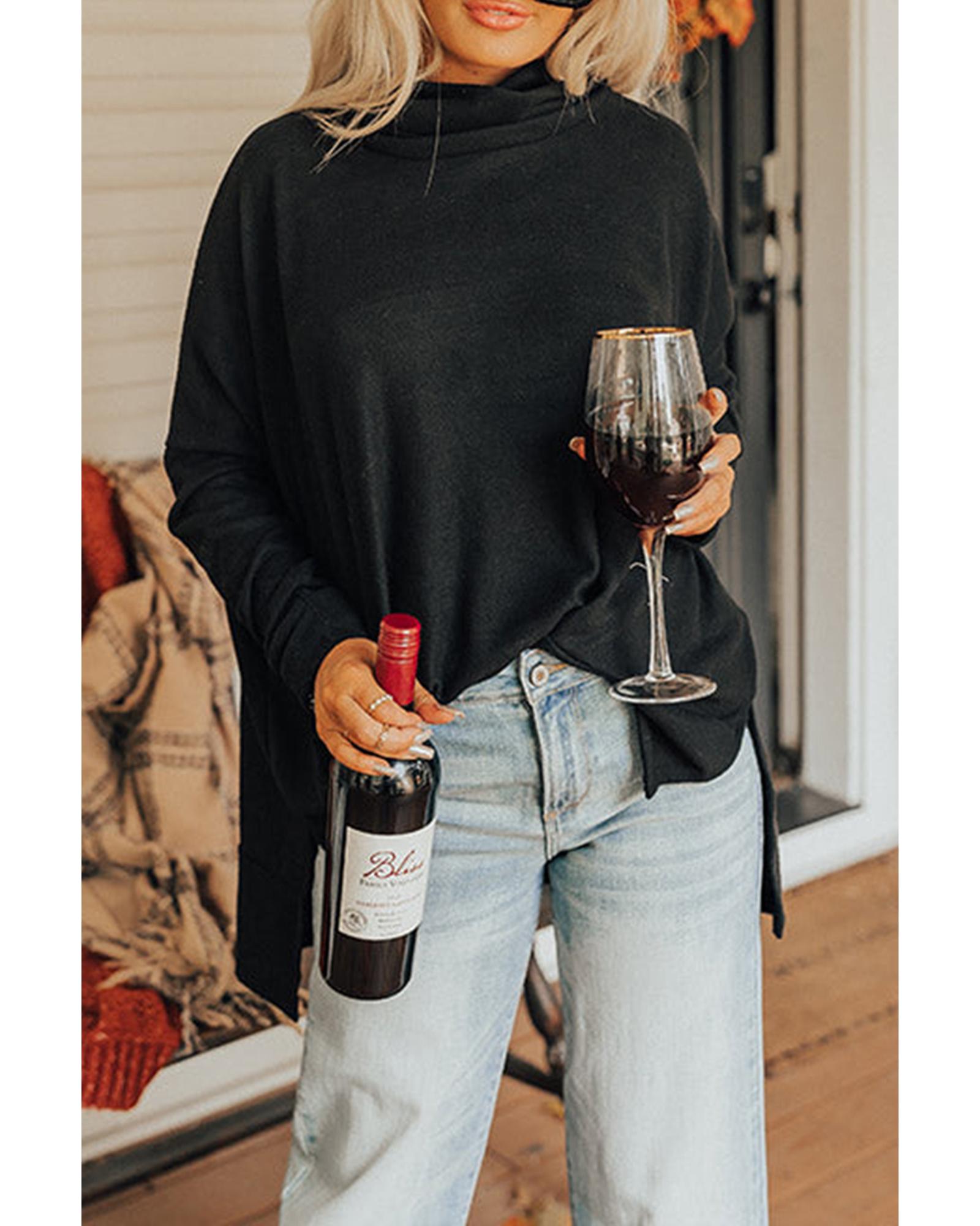 Black Cowl Neck Shift Tunic Top – M
