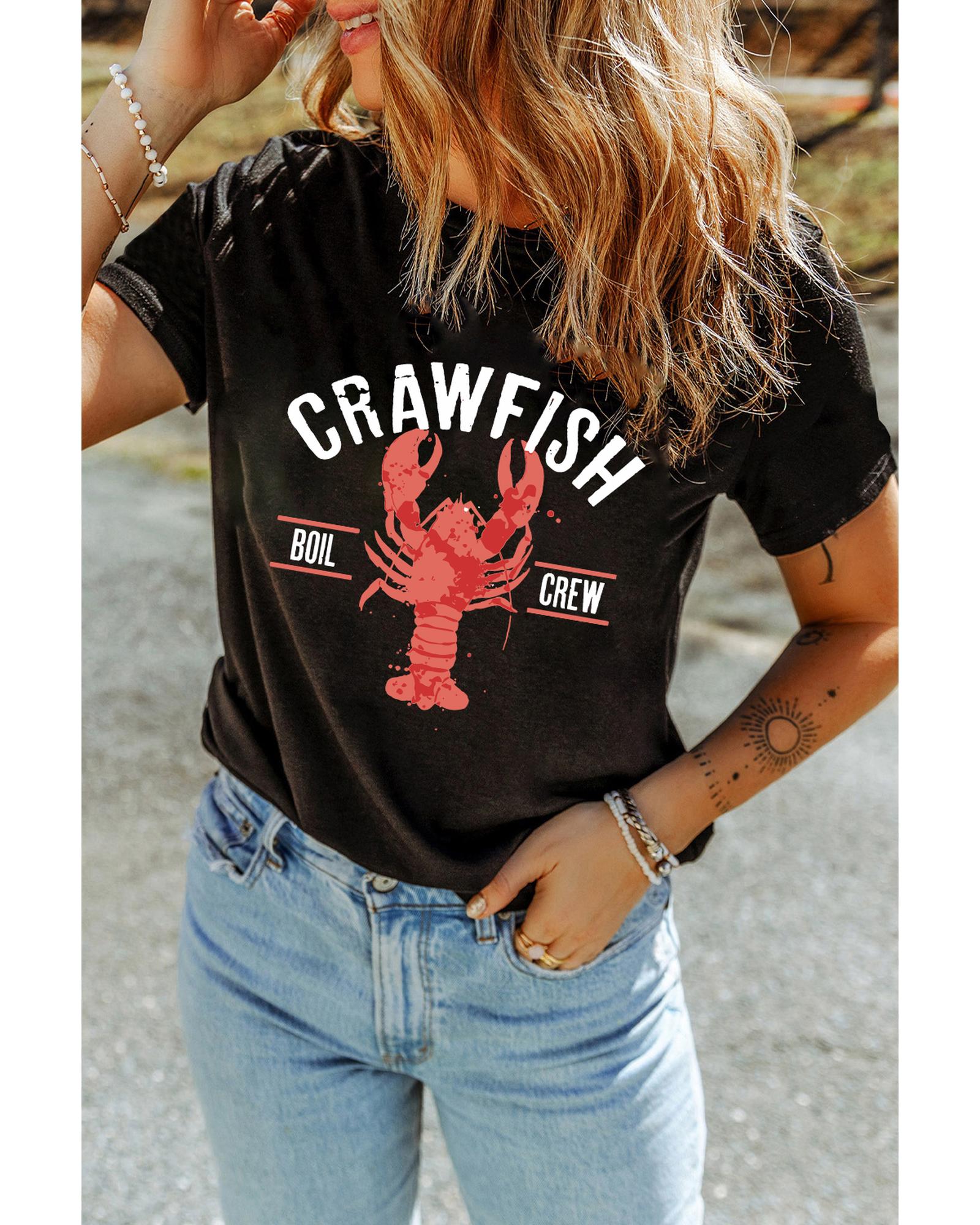- Black CRAWFISH BOIL CREW Distressed Letter Graphic T Shirt