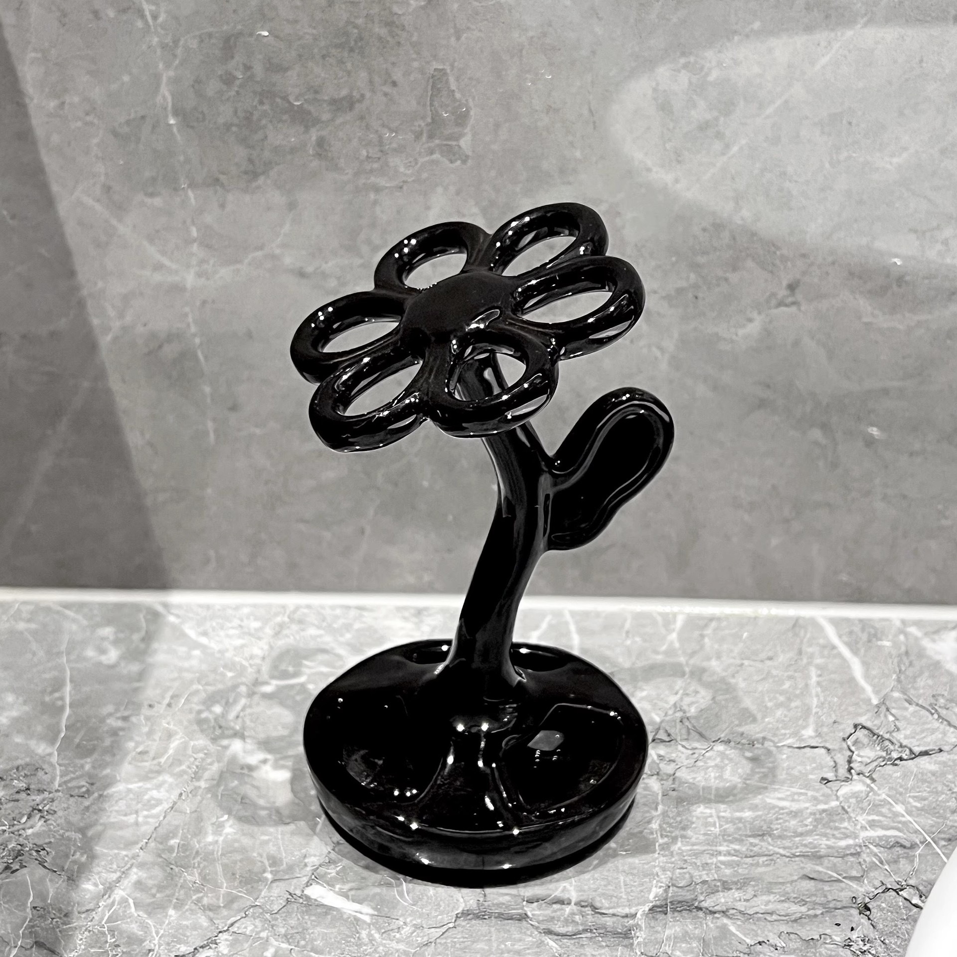 Black Creative Ceramic Toothbrush Holder – Makeup Brush & Eyebrow Pencil Organizer for Bathroom, Stylish and Practical Toothbrush Stand