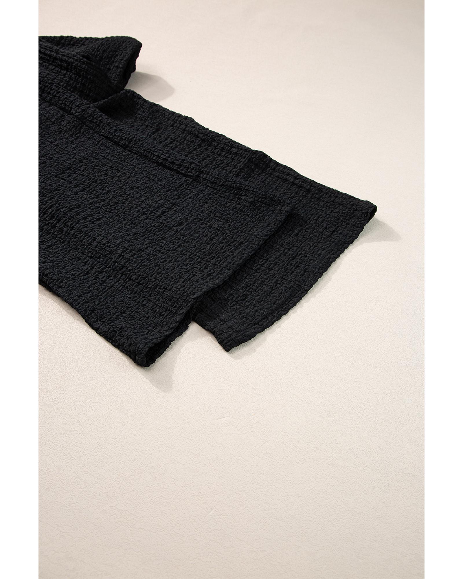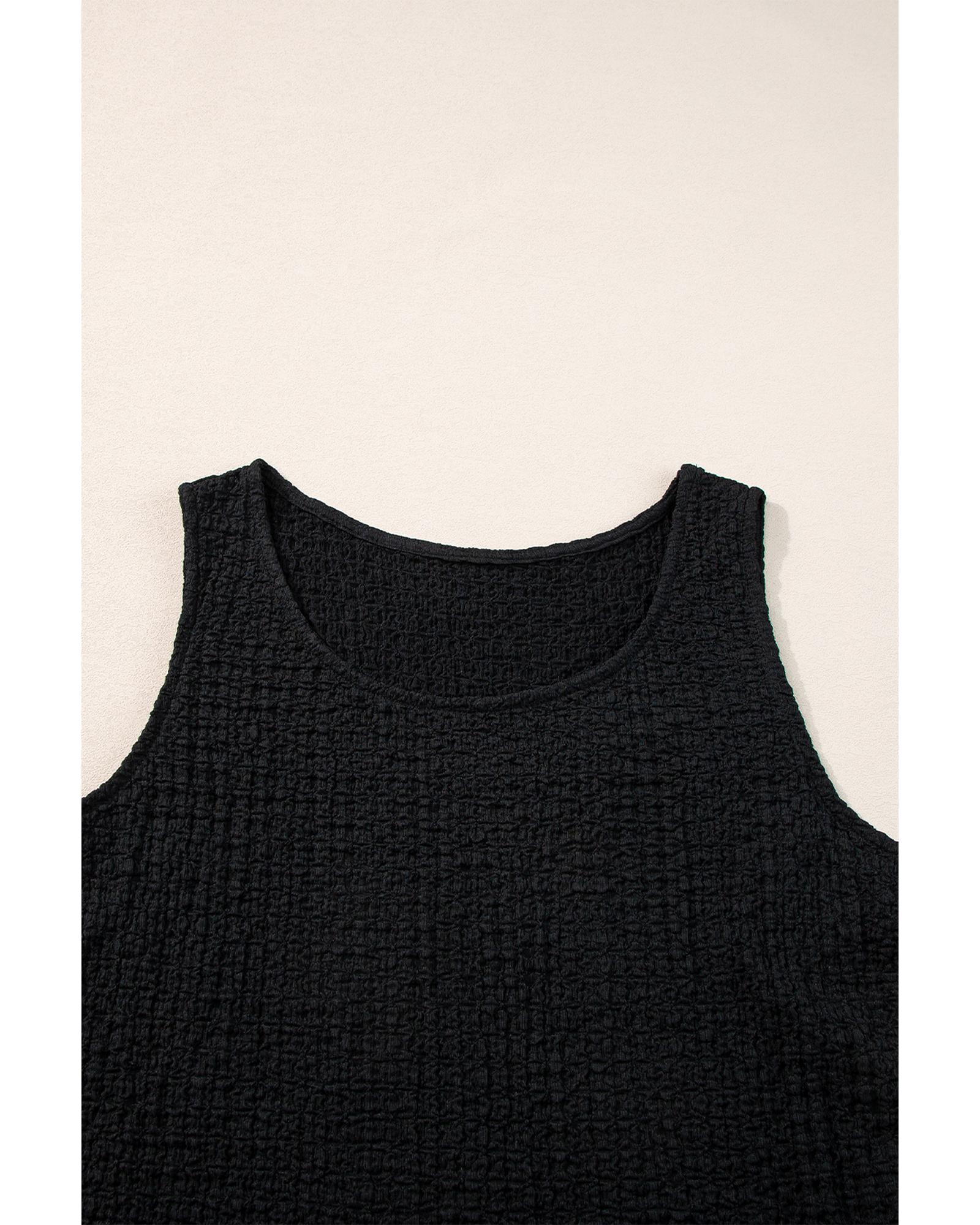 Black Crinkled U Neck Tank Top and Wide Leg Pants Set – XL
