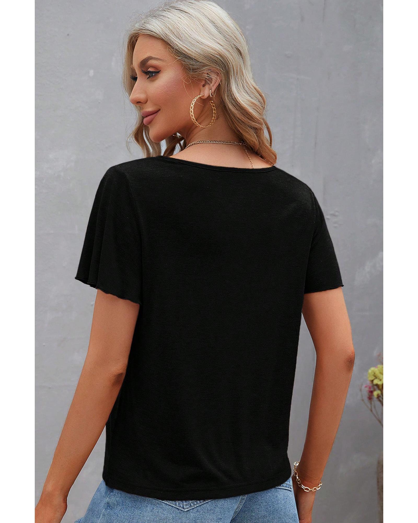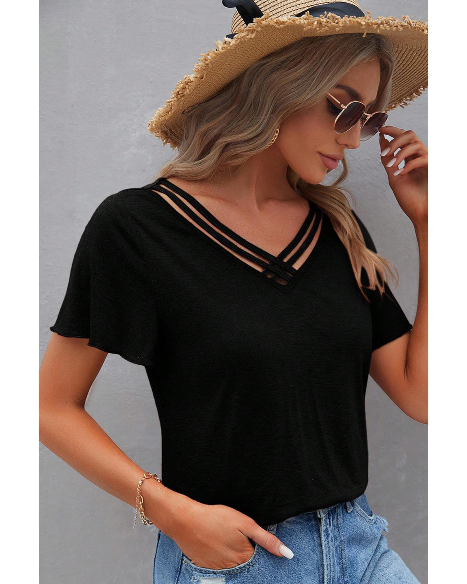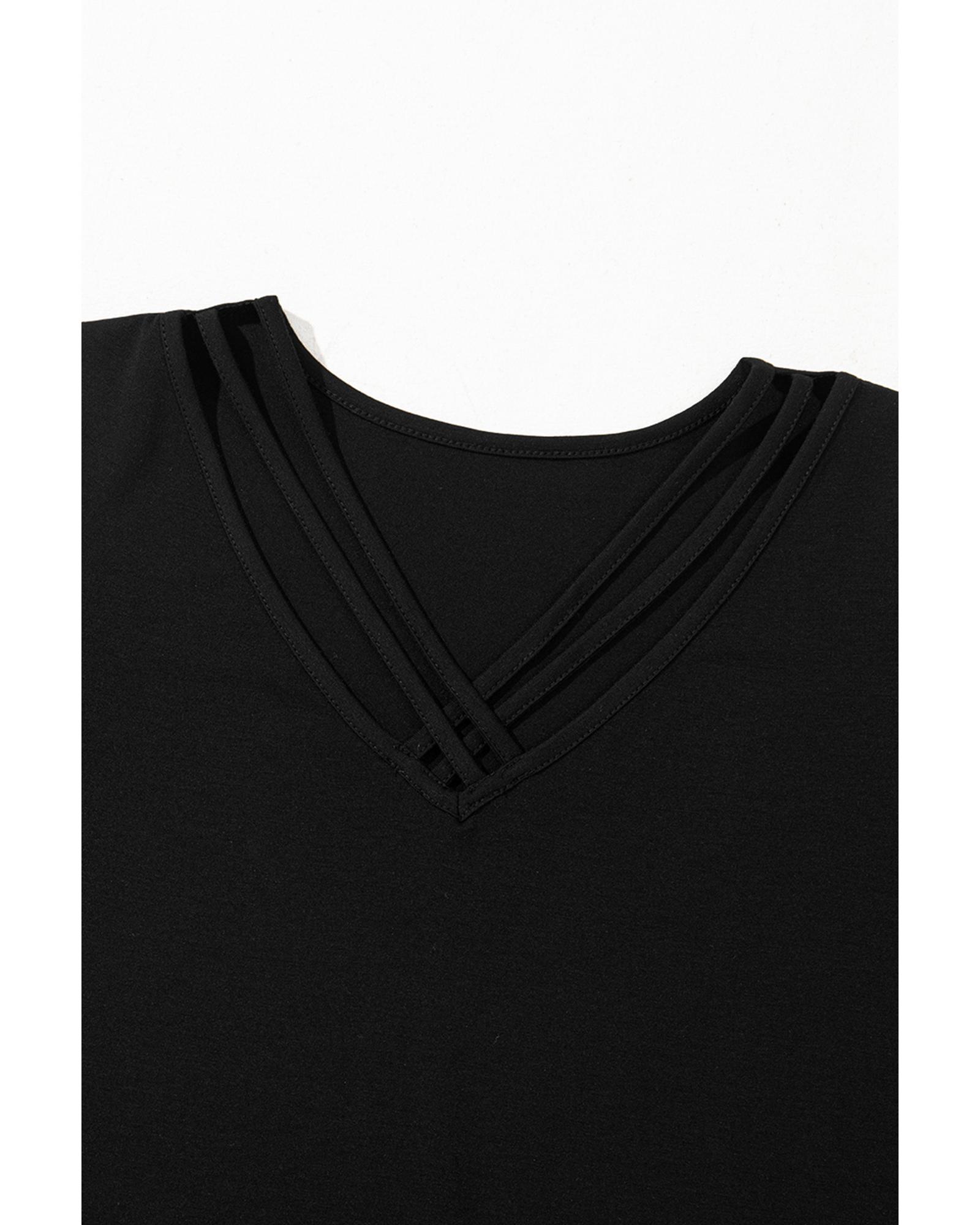 Black Crisscross V Neck Butterfly Sleeve T Shirt – L