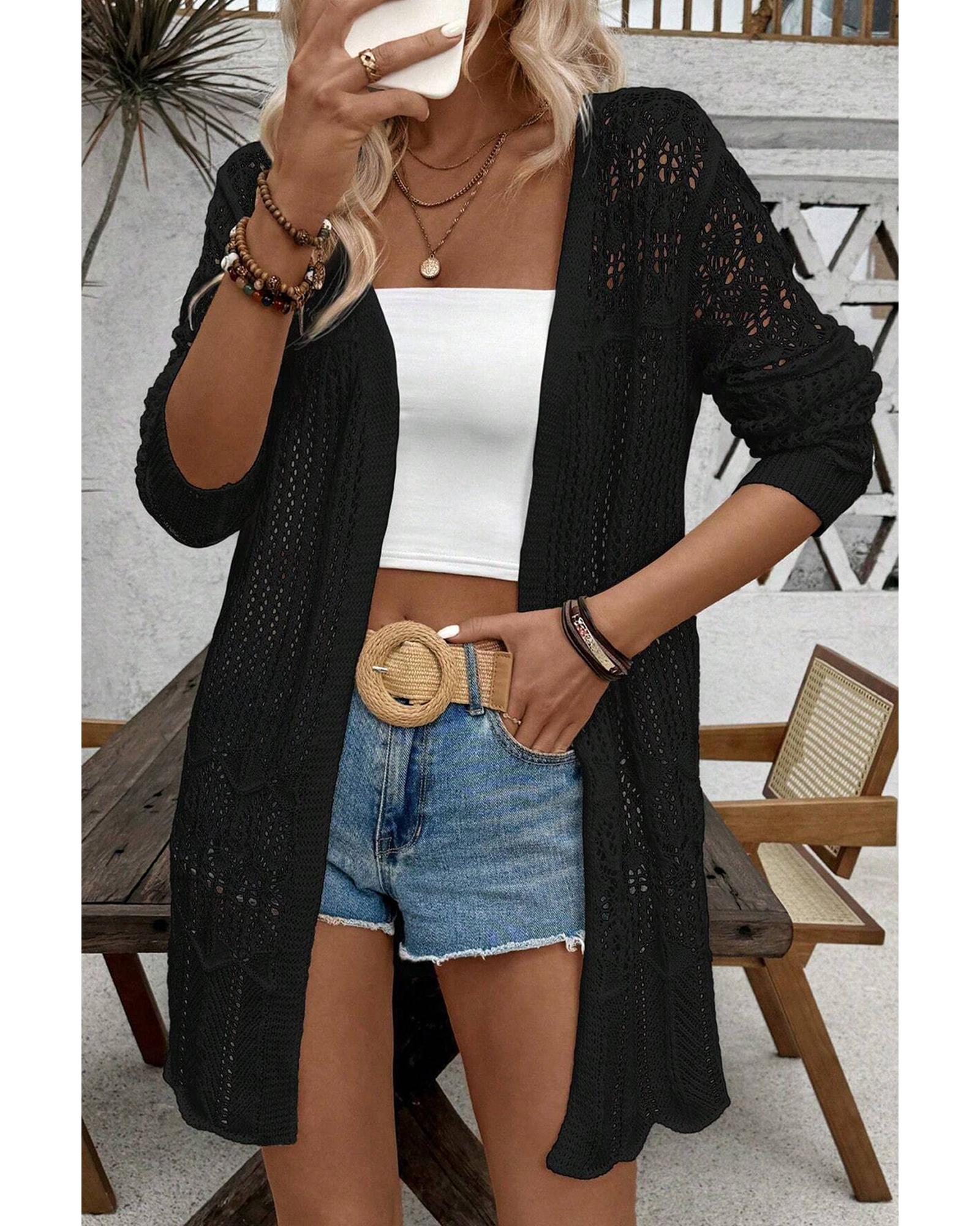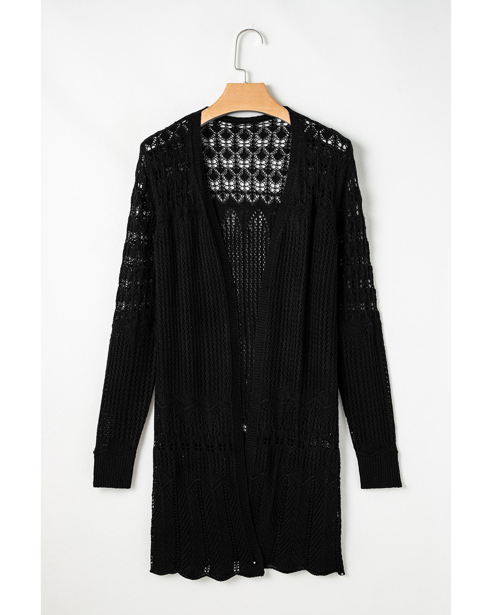 Black Crochet Hollow Out Open Front Cardigan – XL