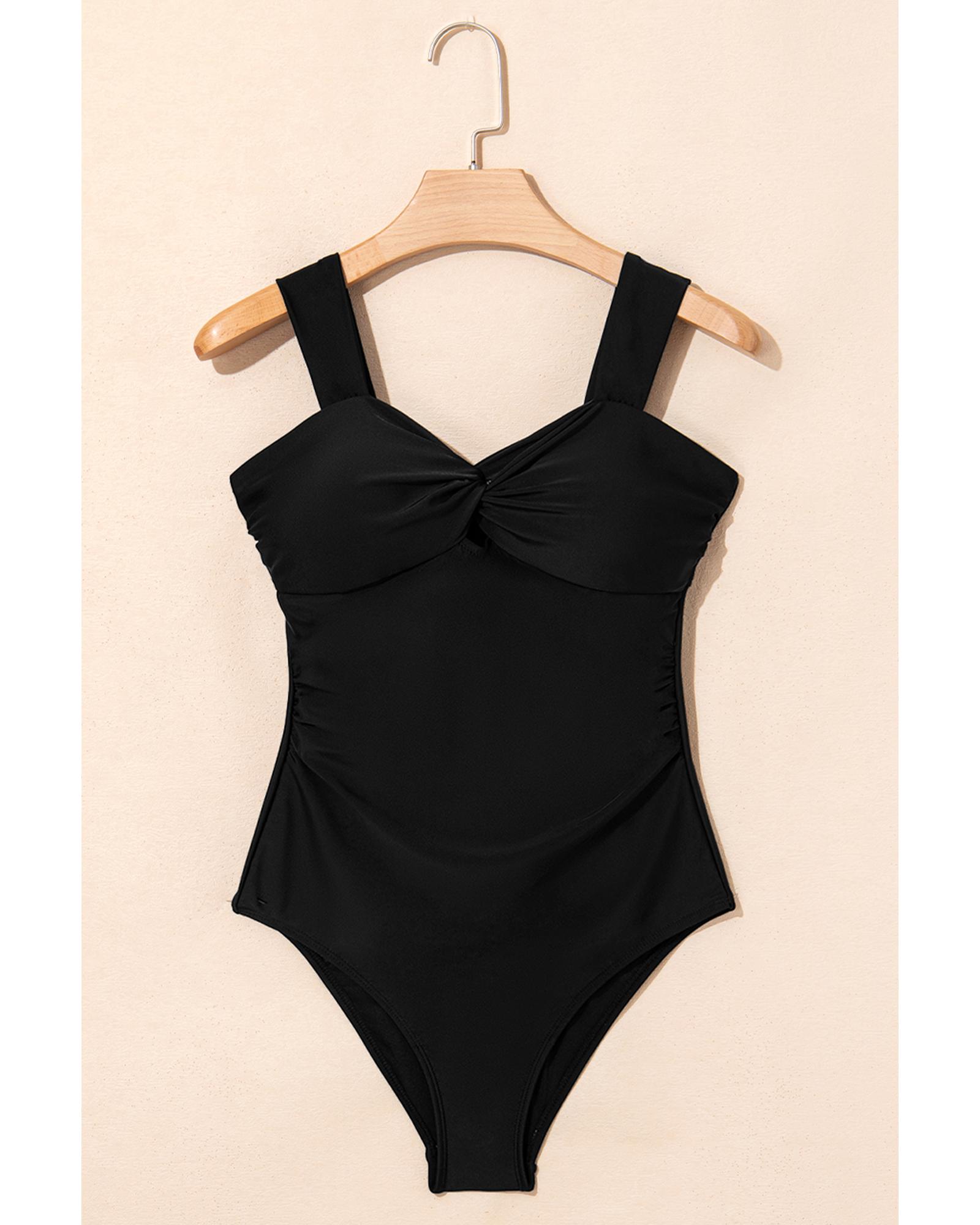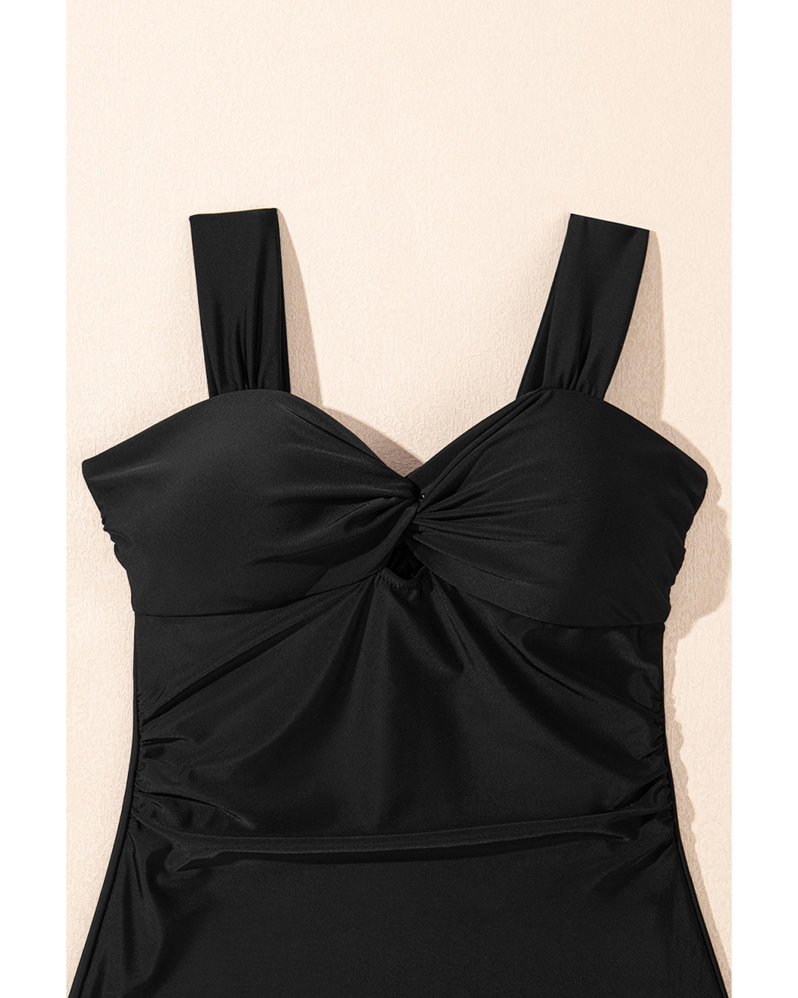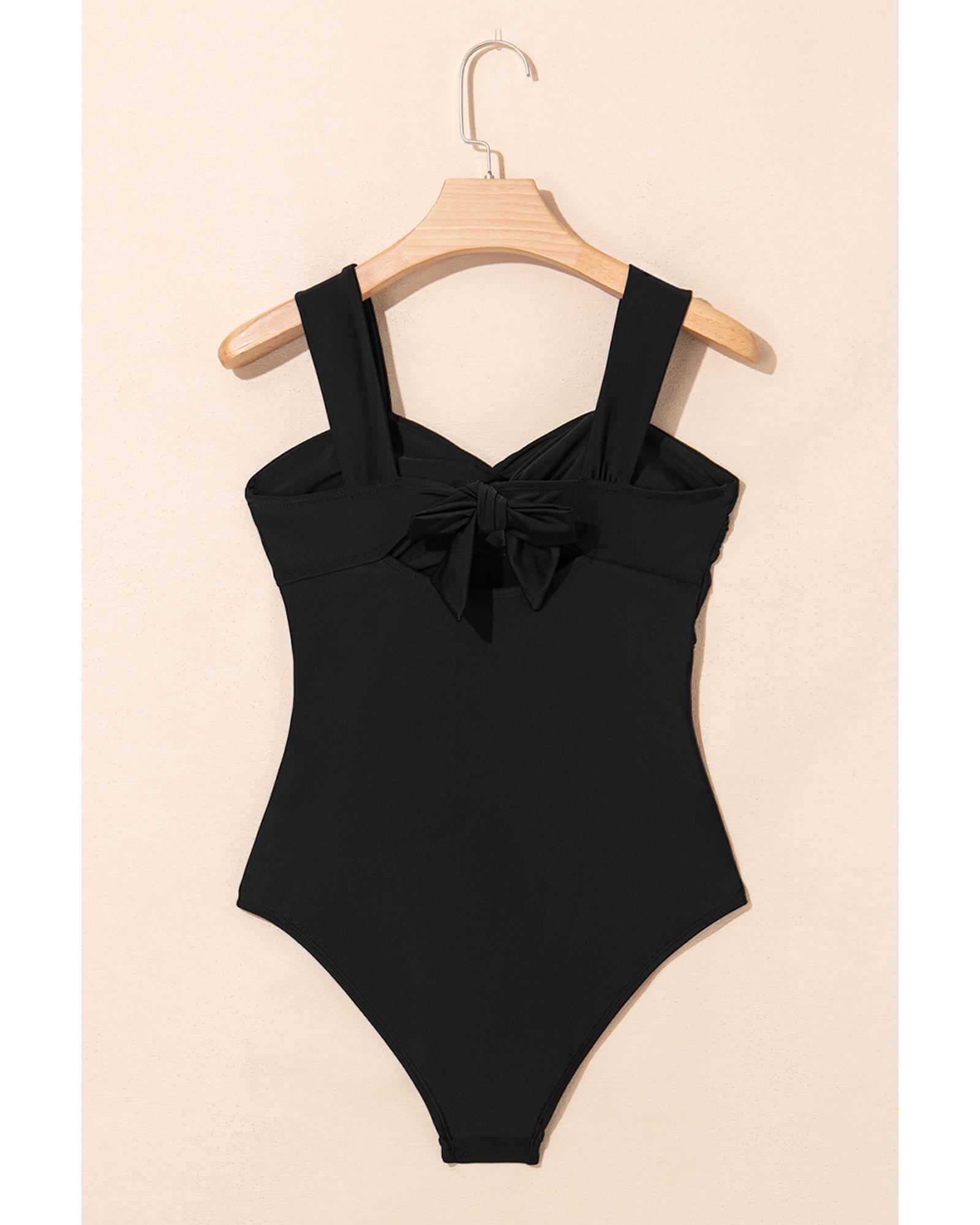 Black Cut out Twist Bowknot Backless One Piece Swimsuit – S