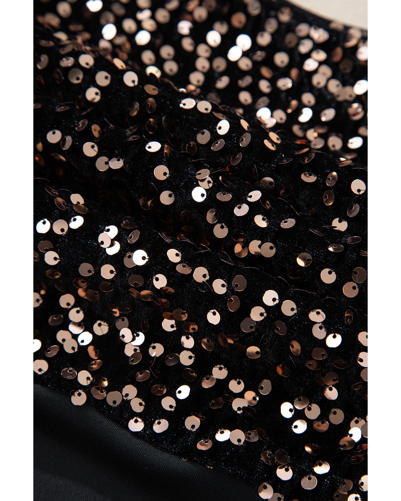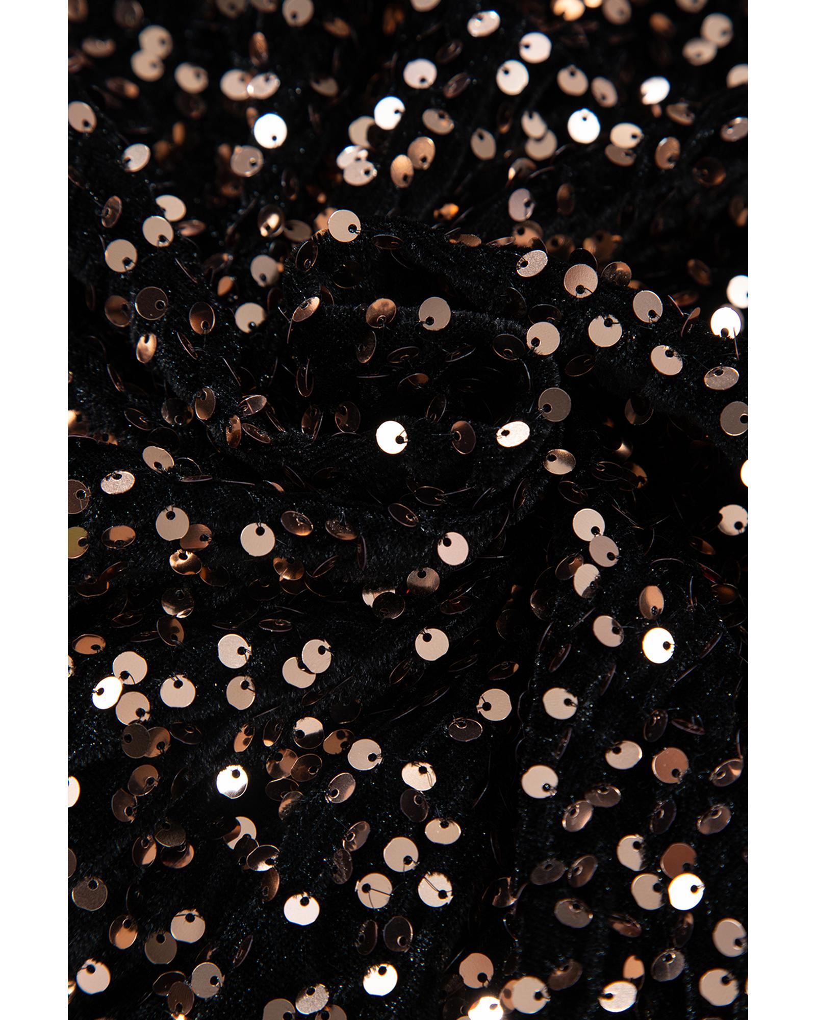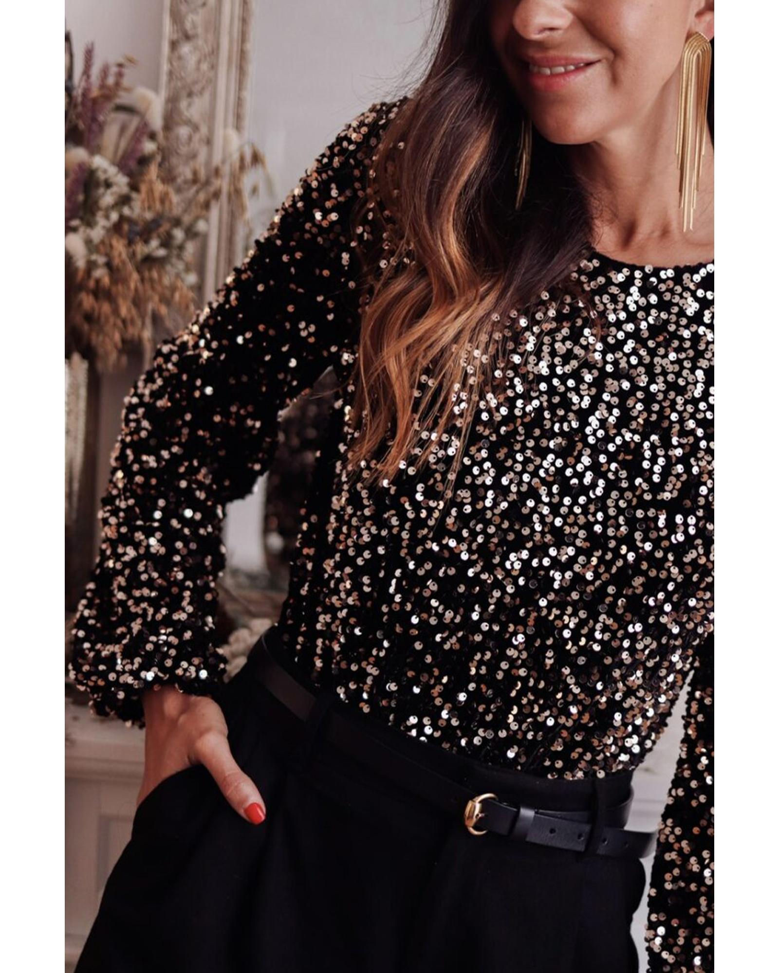 Black Deep V Back Sequin Puff Sleeve Bodysuit – XL