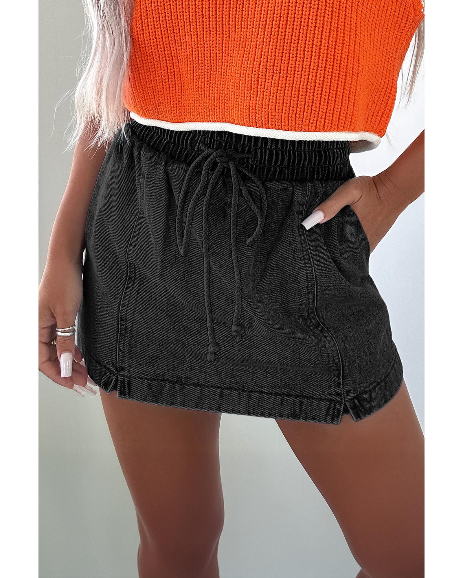 Black Drawstring High Waist Pocketed Denim Shorts – 6 US