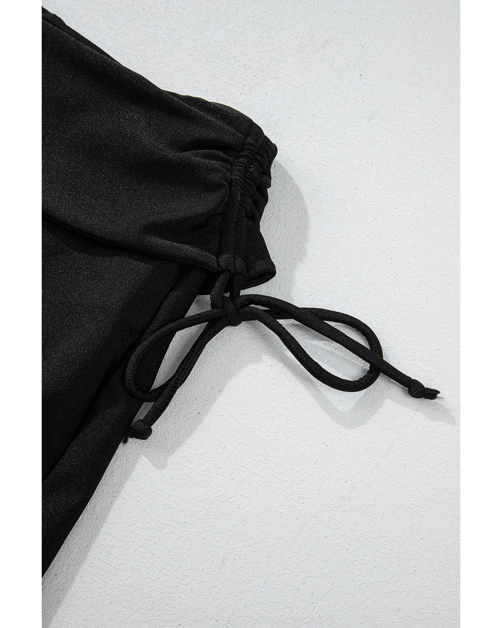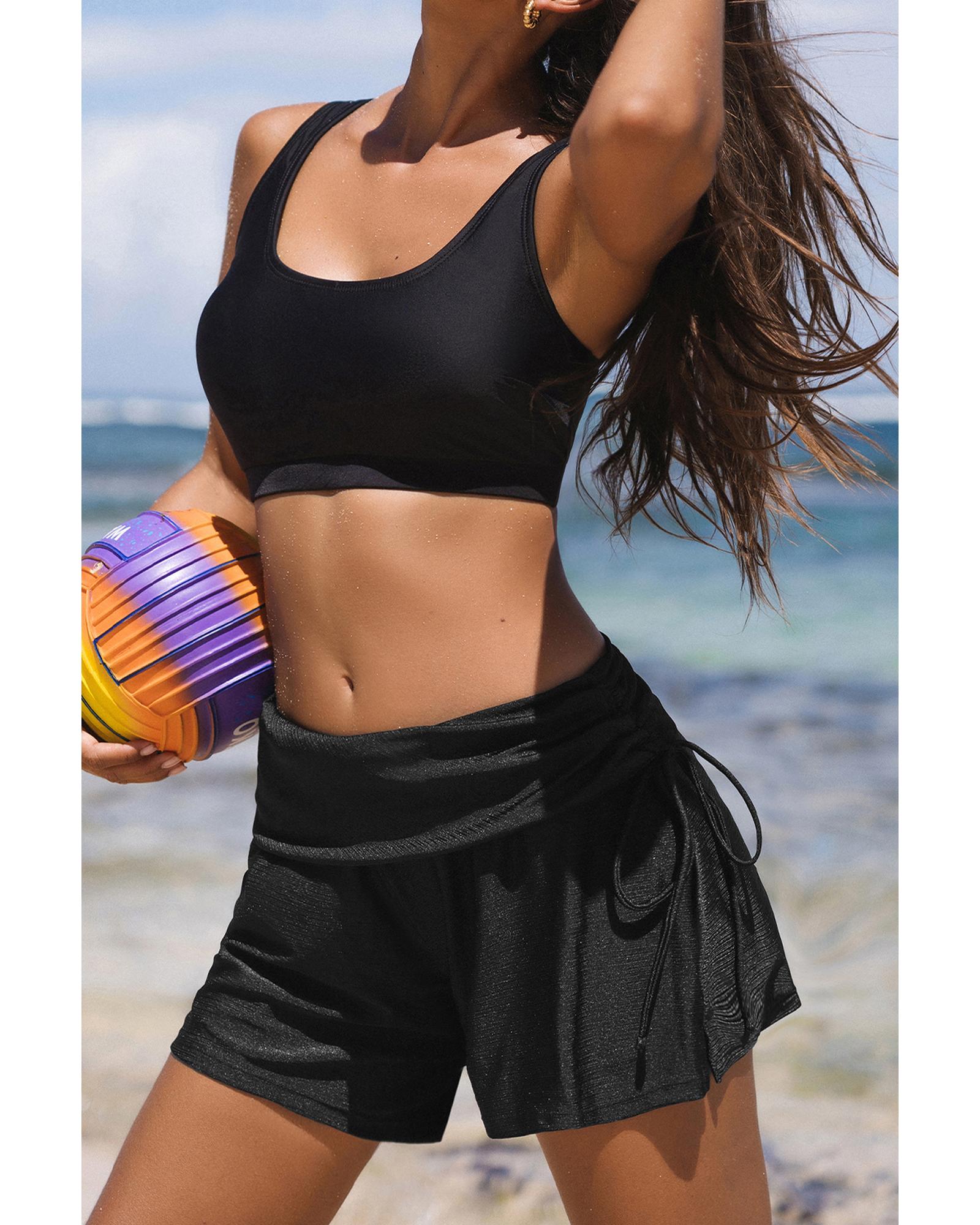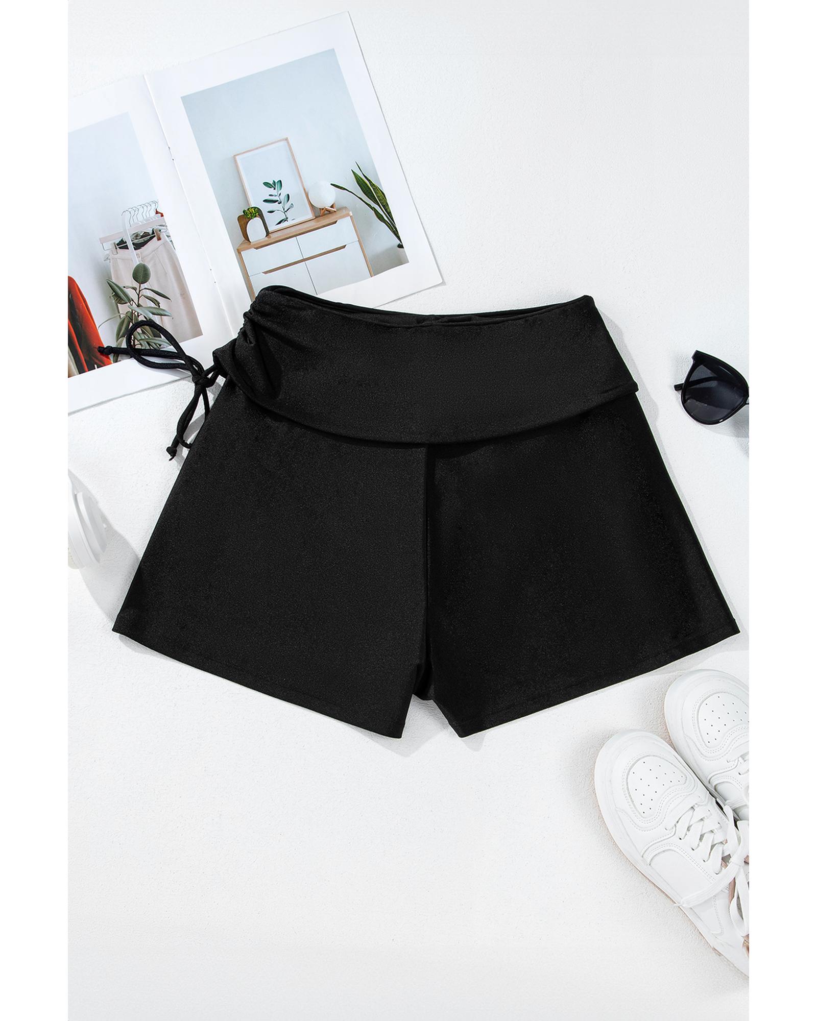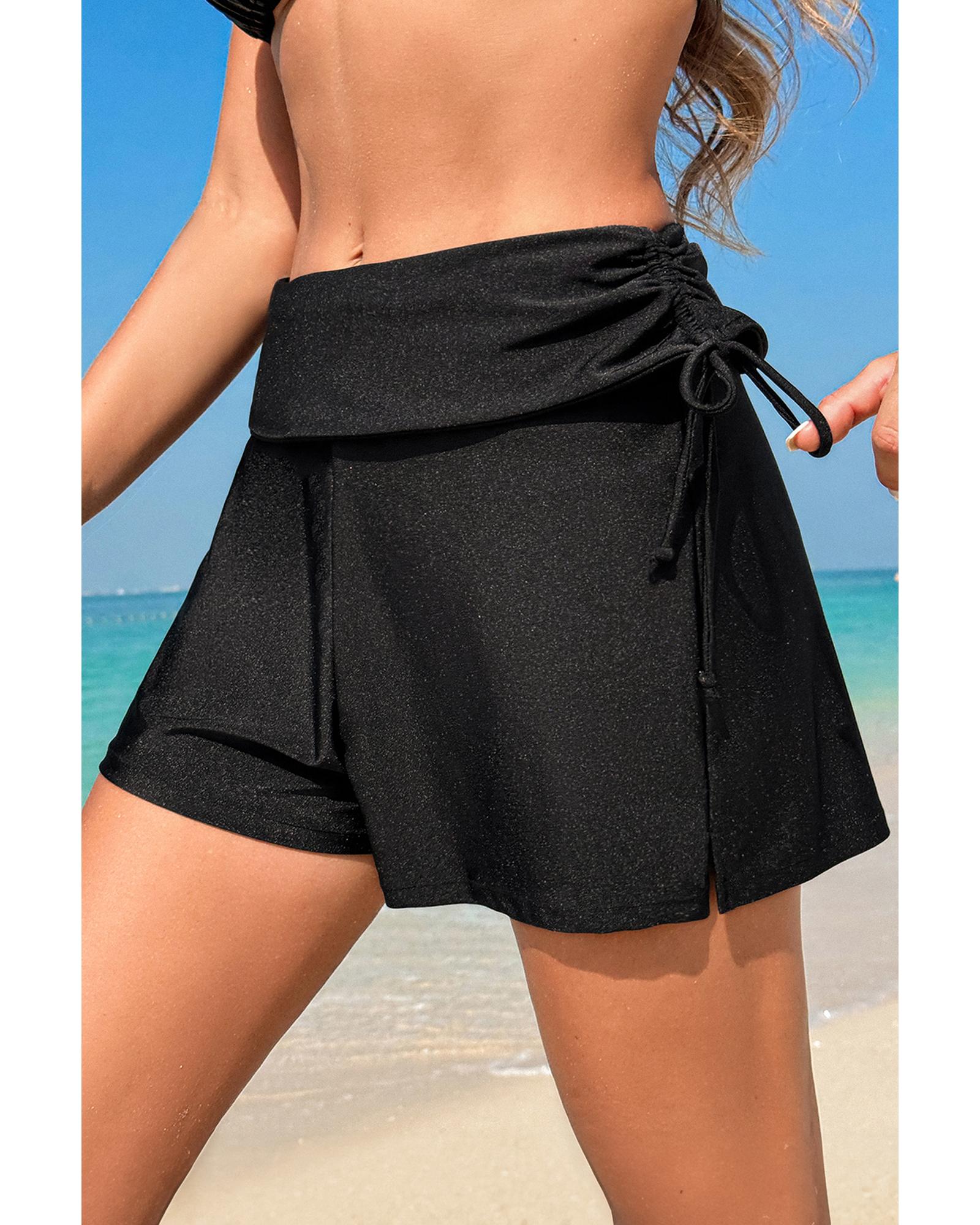 Black Drawstring Ruched High Waist Loose Swim Shorts – L