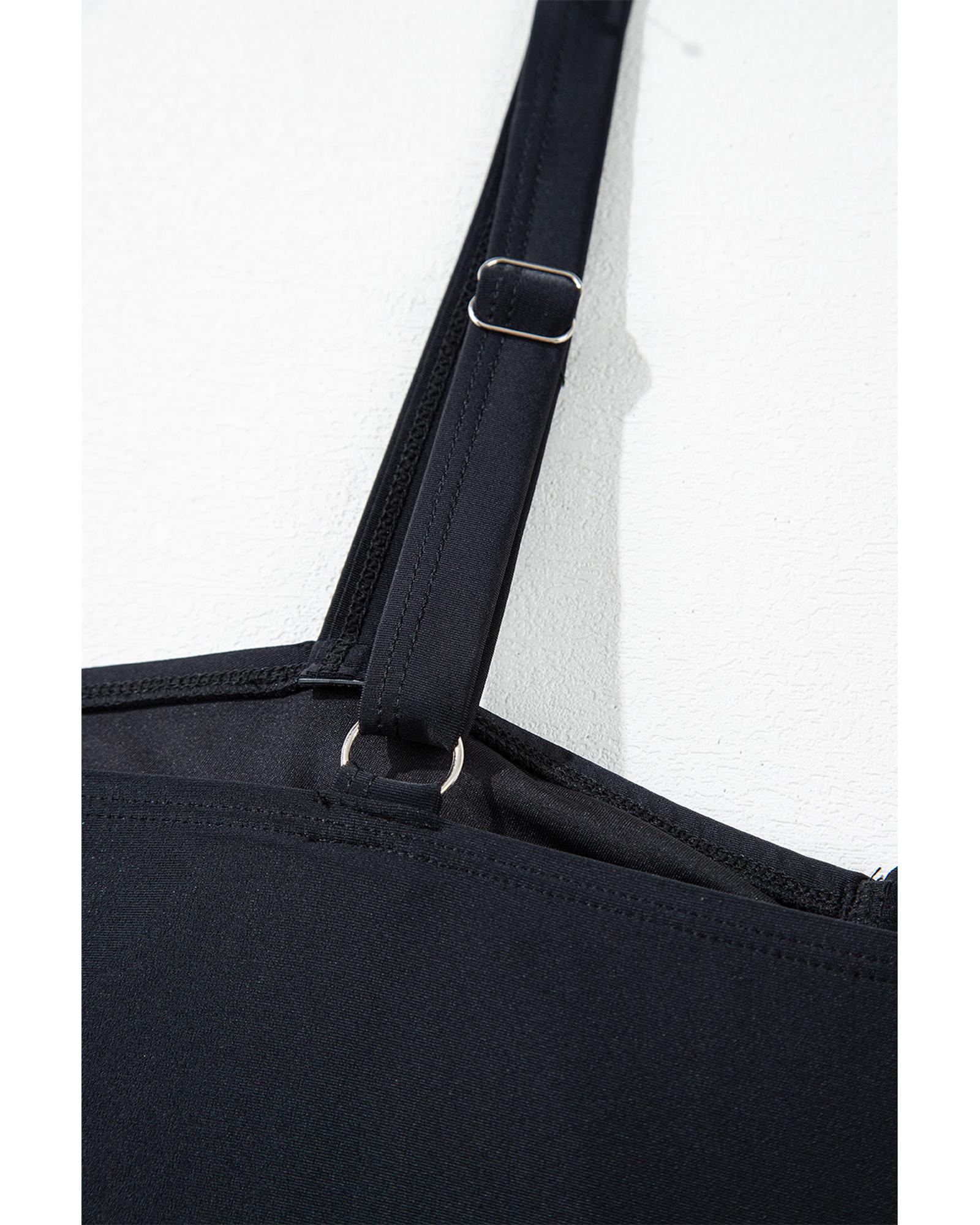 Black Drawstring Tied Front Flared Top Geometric Print Bottom Plus Size Tankinis – 2X