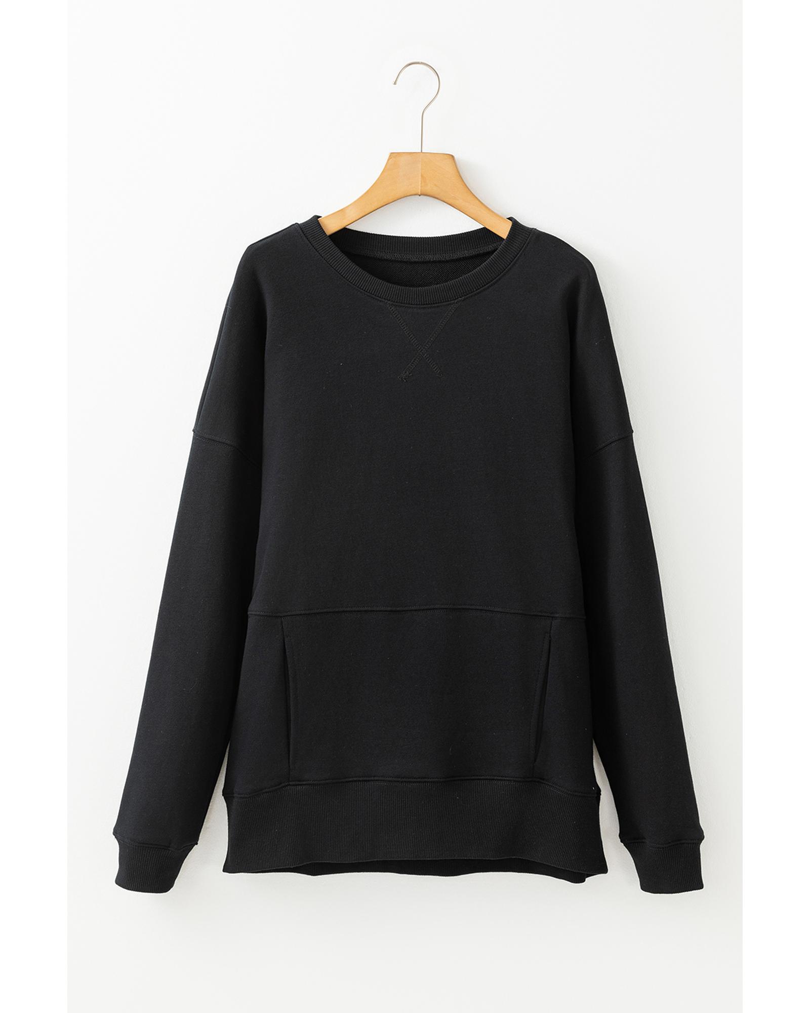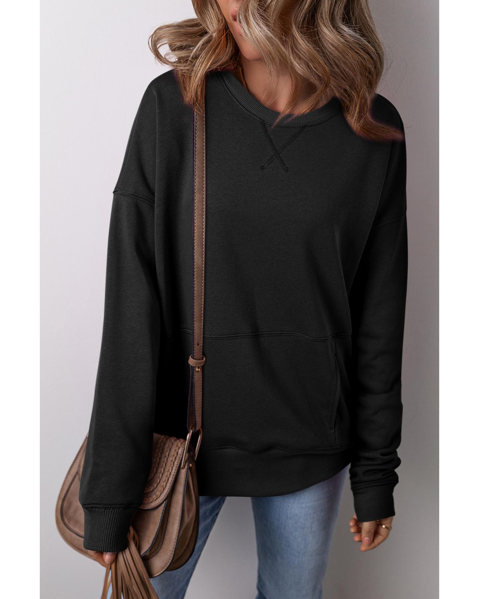 Black Drop Shoulder Crisscross Stitching Pocketed Loose Sweatshirt – M