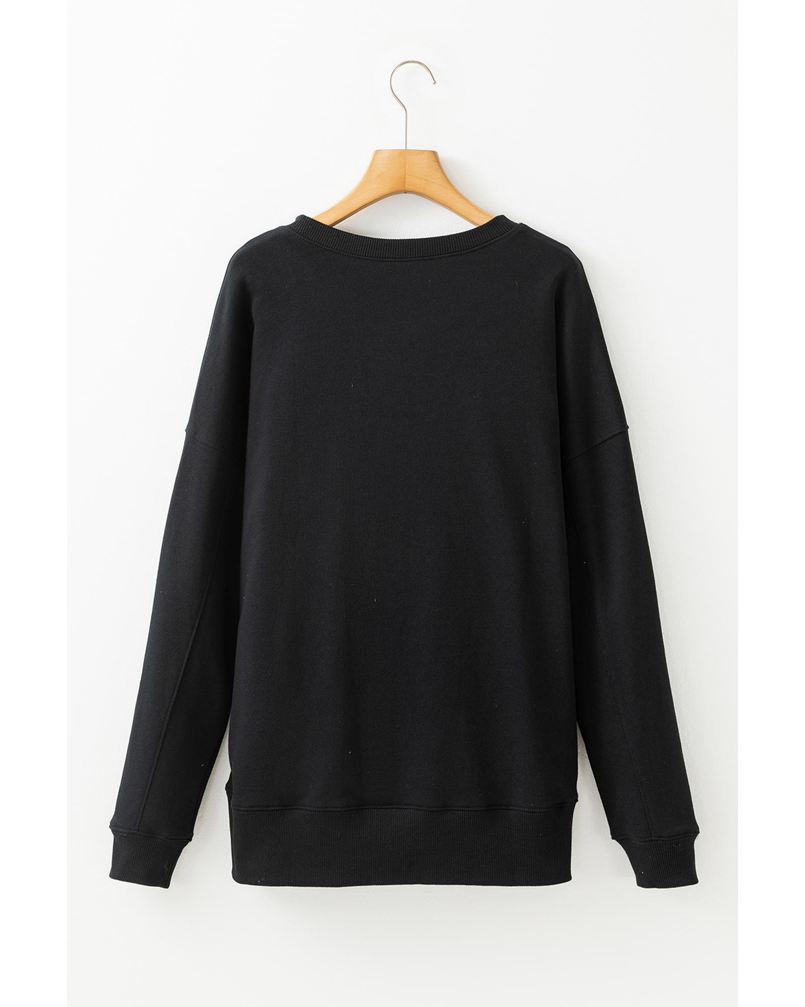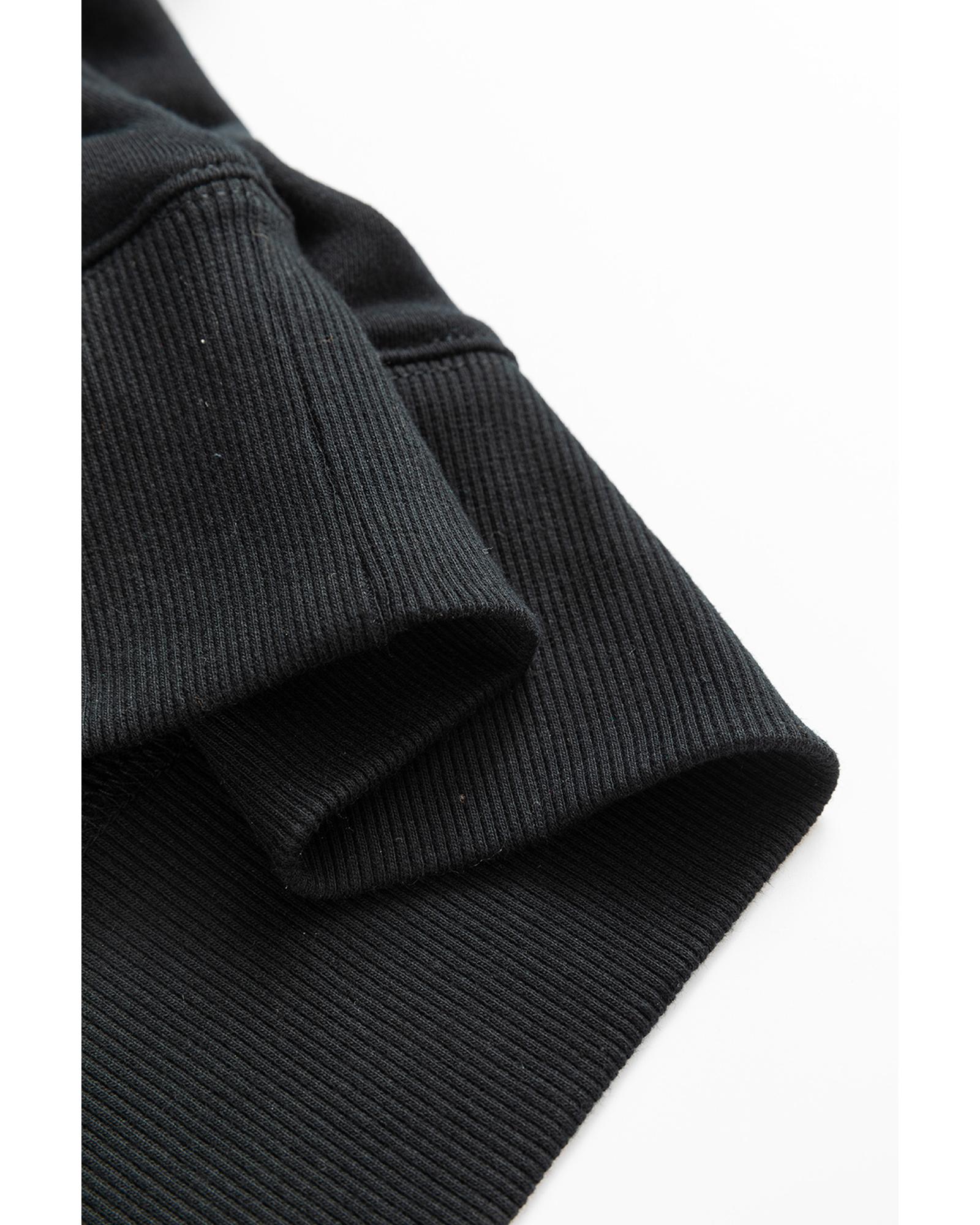 Black Drop Shoulder Crisscross Stitching Pocketed Loose Sweatshirt – S
