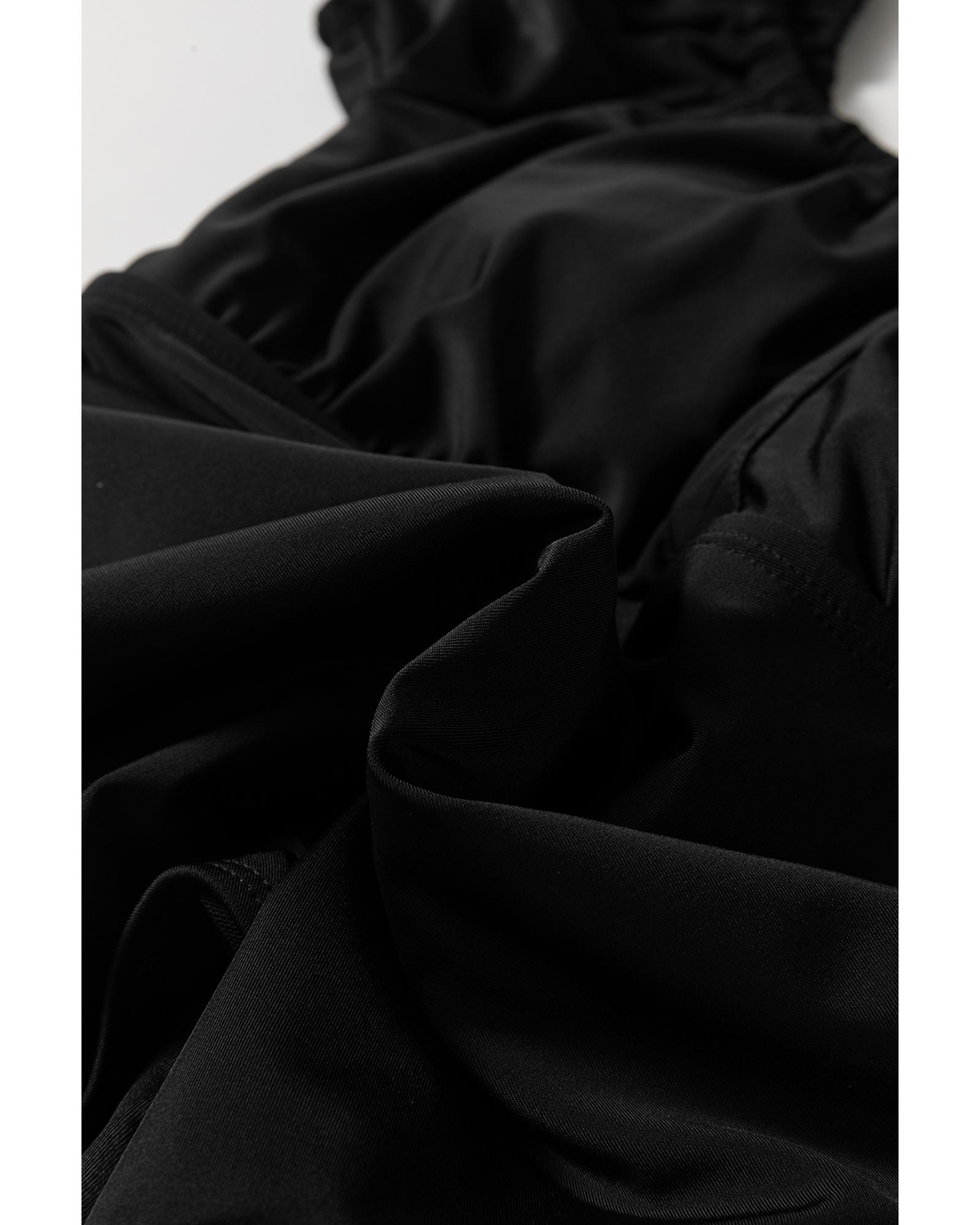 Black Elastic Neckline Short Sleeve One Piece Swimsuit – M