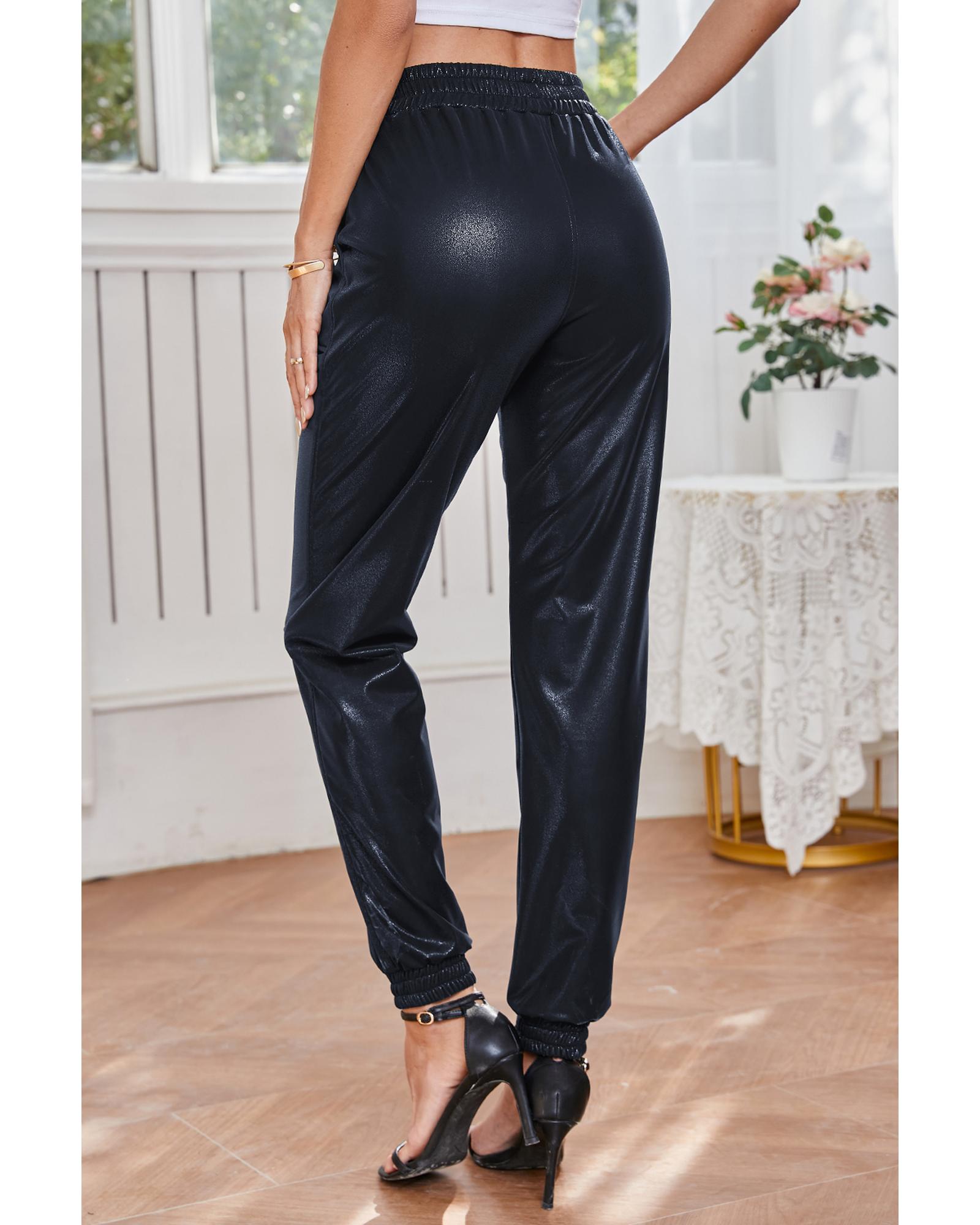 Black Elastic Waist Pocketed Pebble Joggers – L