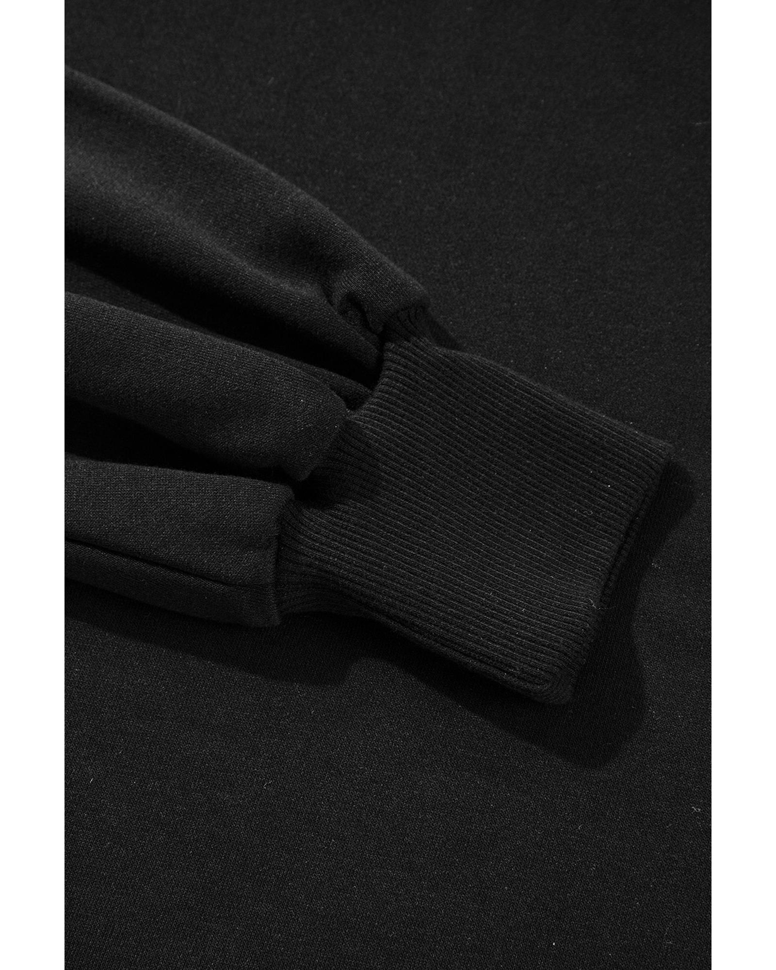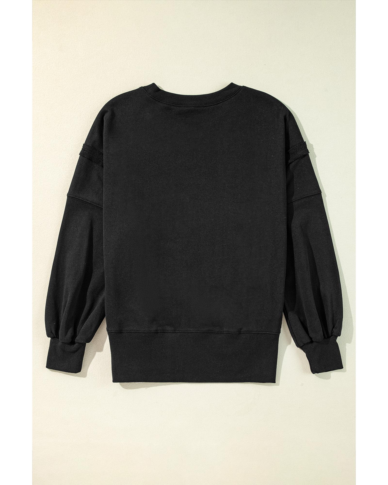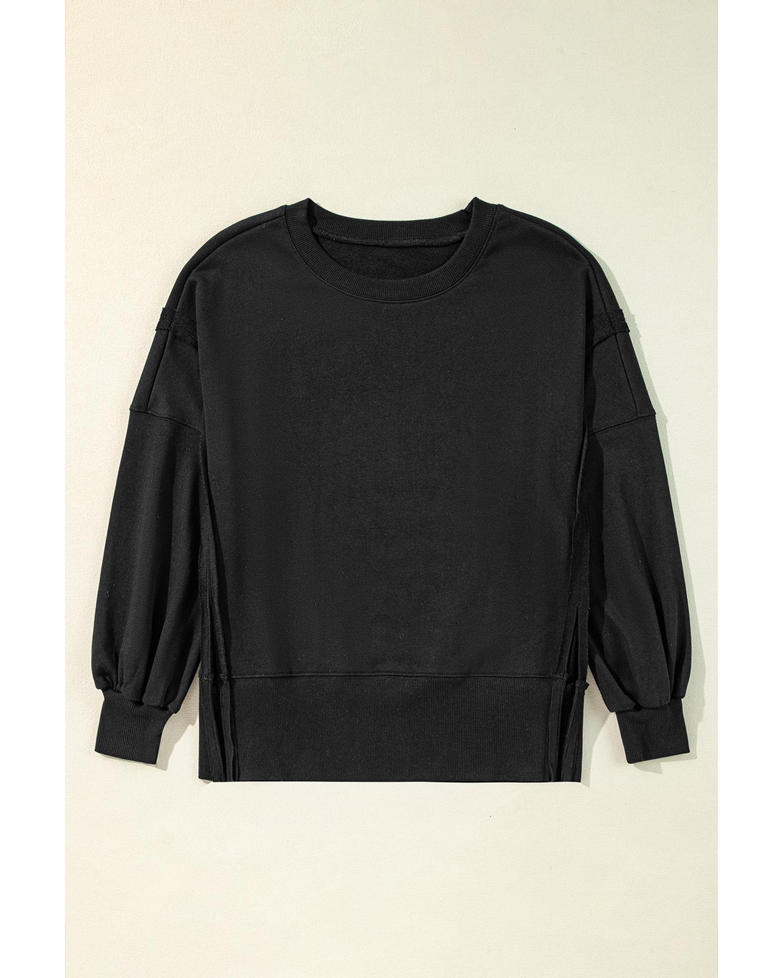 Black Exposed Seam Drop Shoulder Round Neck Sweatshirt with Slits – XL