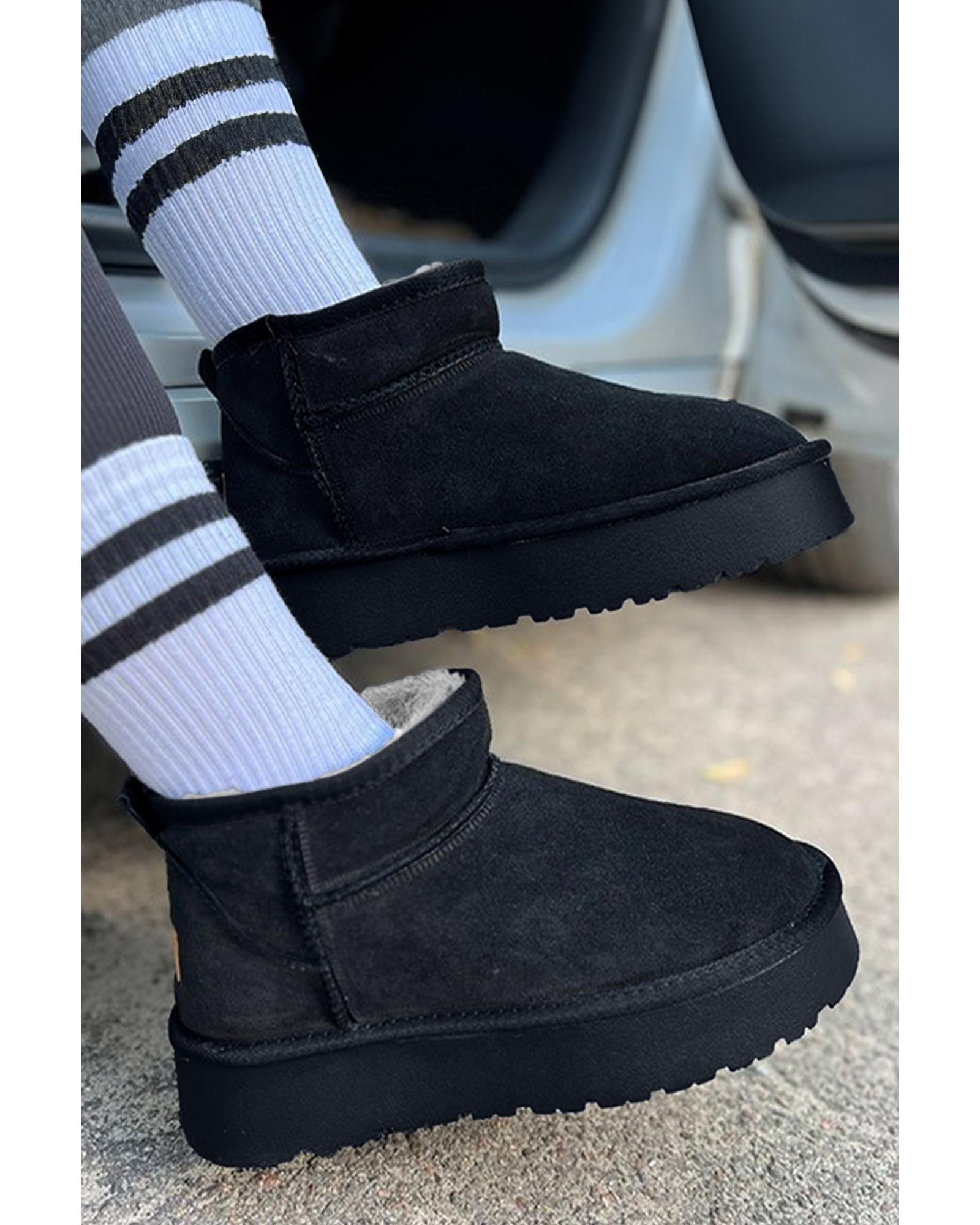 Black Faux Fur Lined Suede Ankle Snow Boots - 37 EU