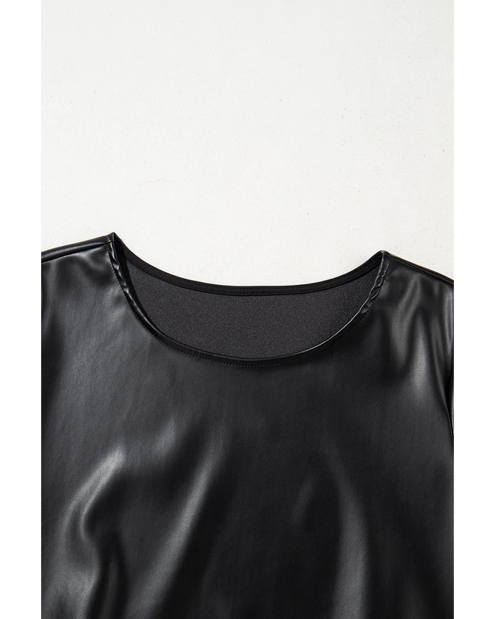 Black Faux Leather Loose T-shirt Dress – L