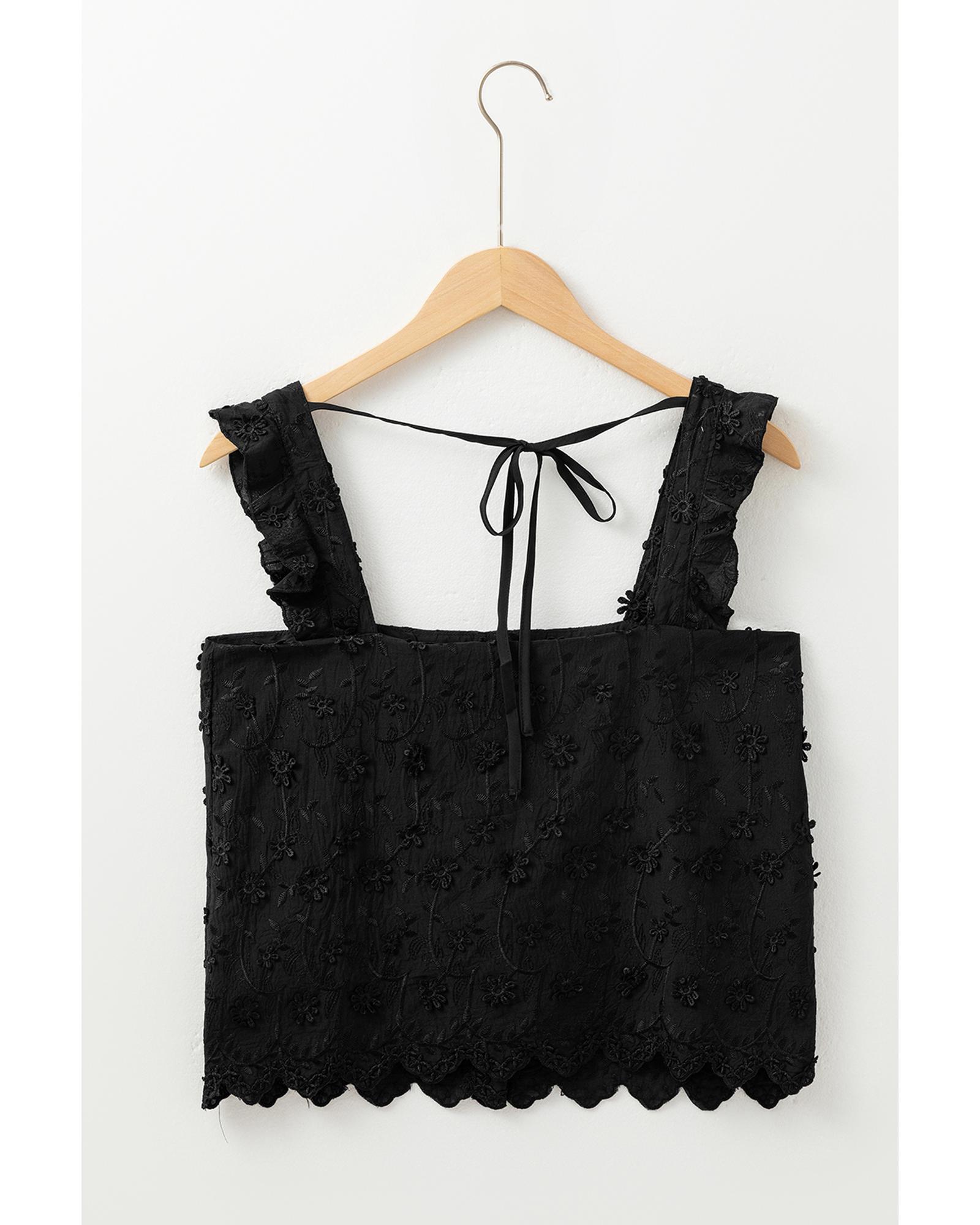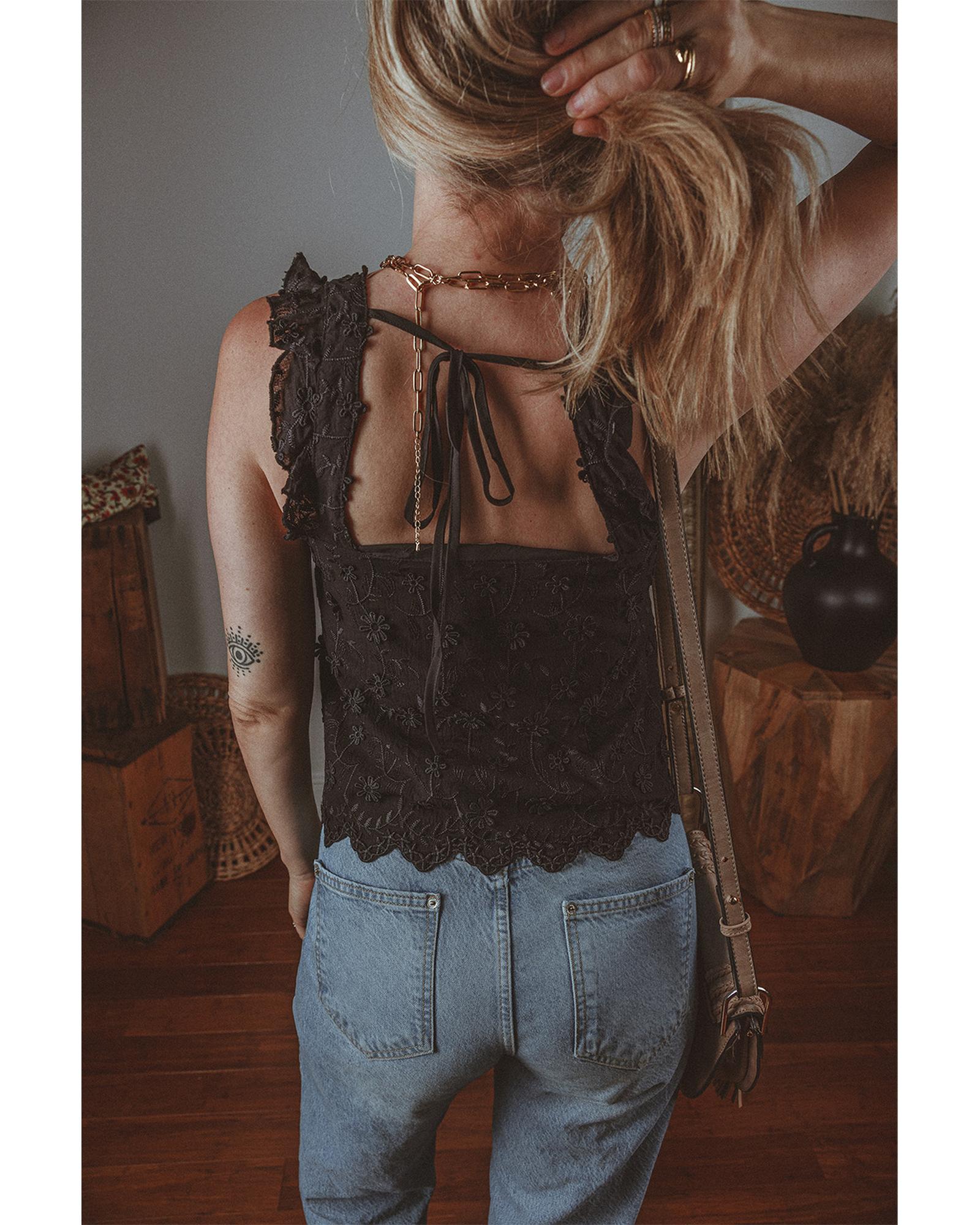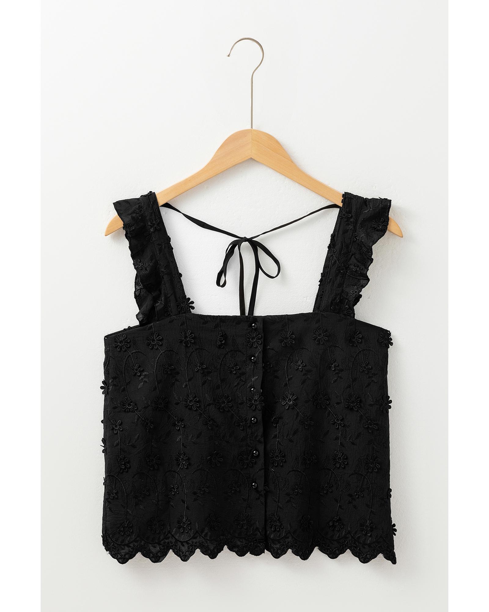 Black Floral Embroidered Buttoned Square Neck Tank Top – XL