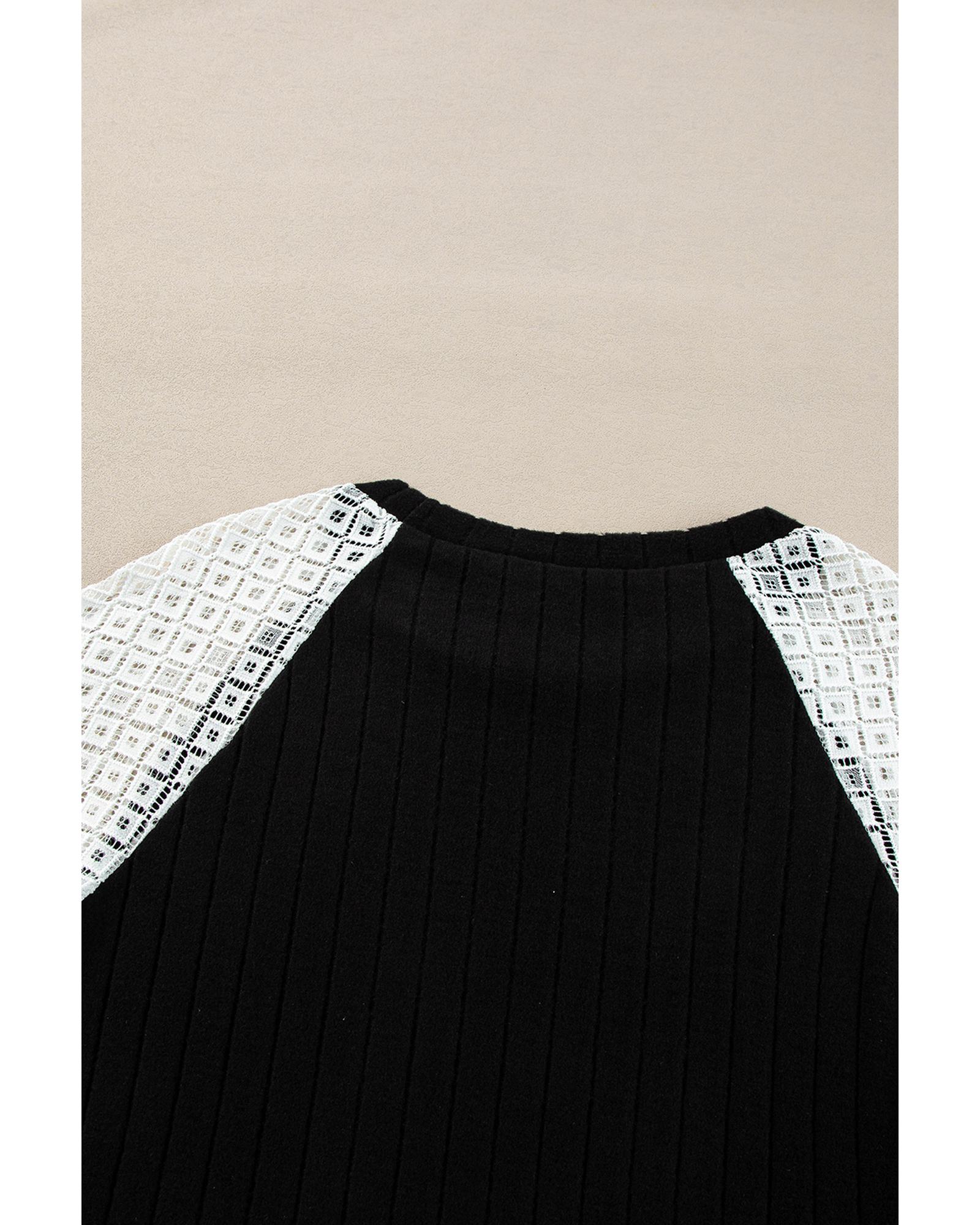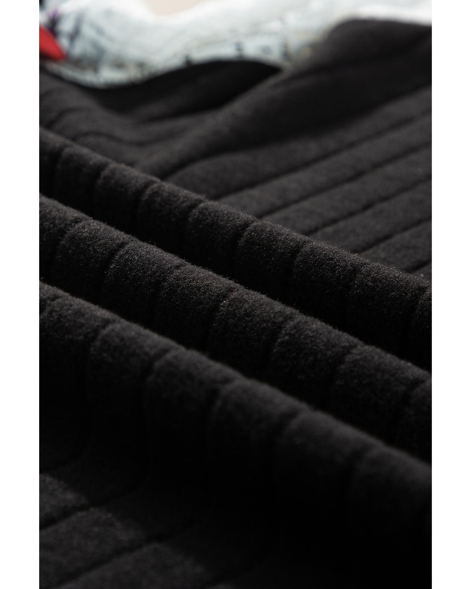 - Black Floral Patchwork Long Sleeve Ribbed Blouse