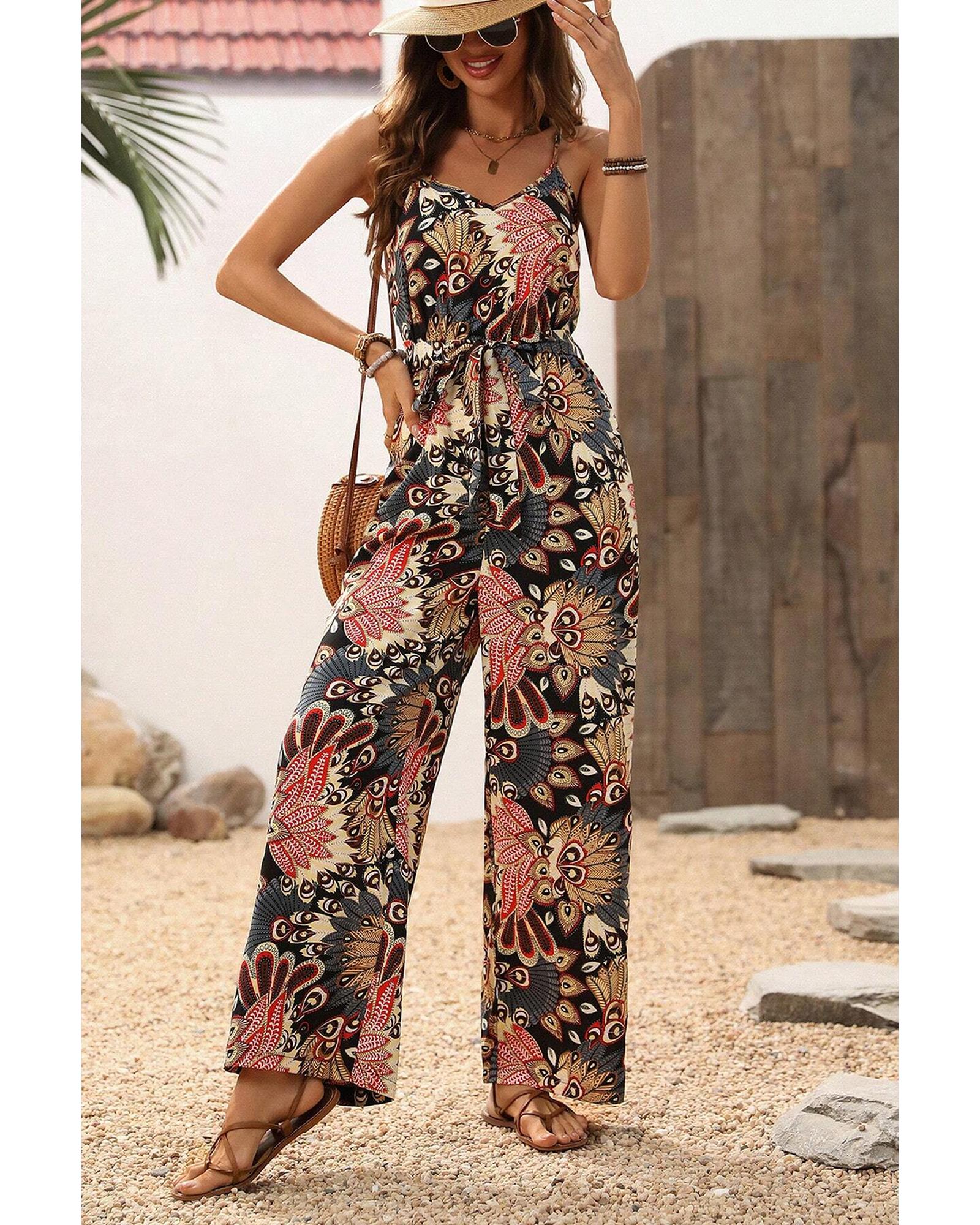 - Black floral print jumpsuit