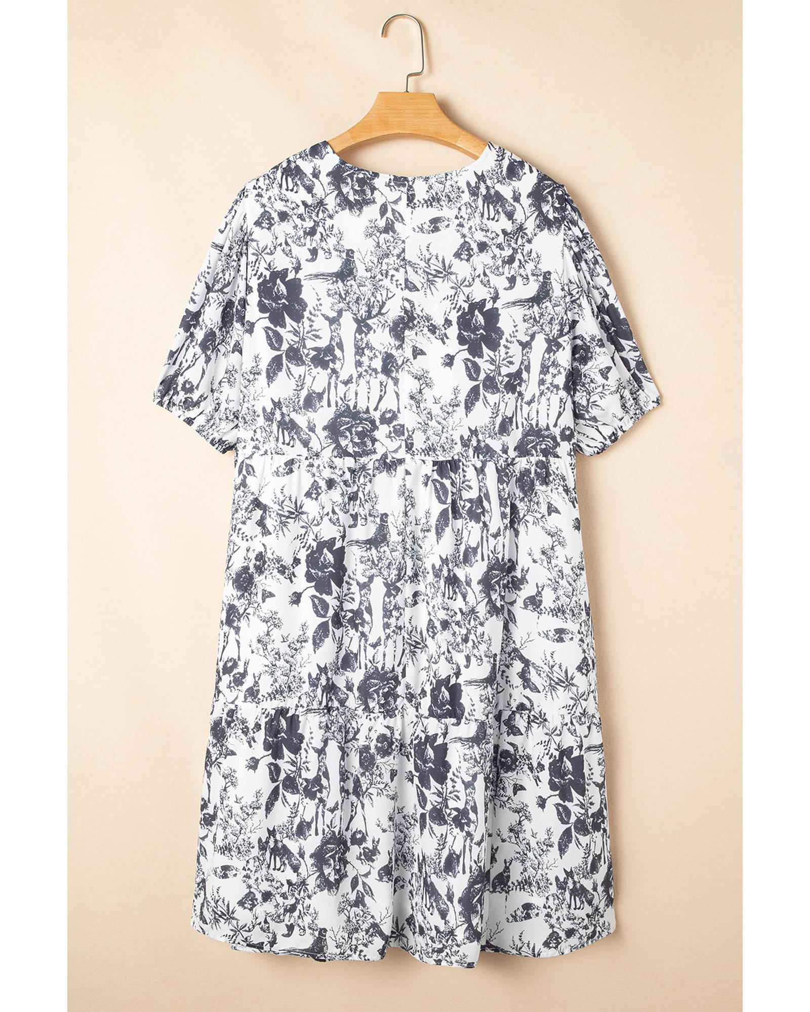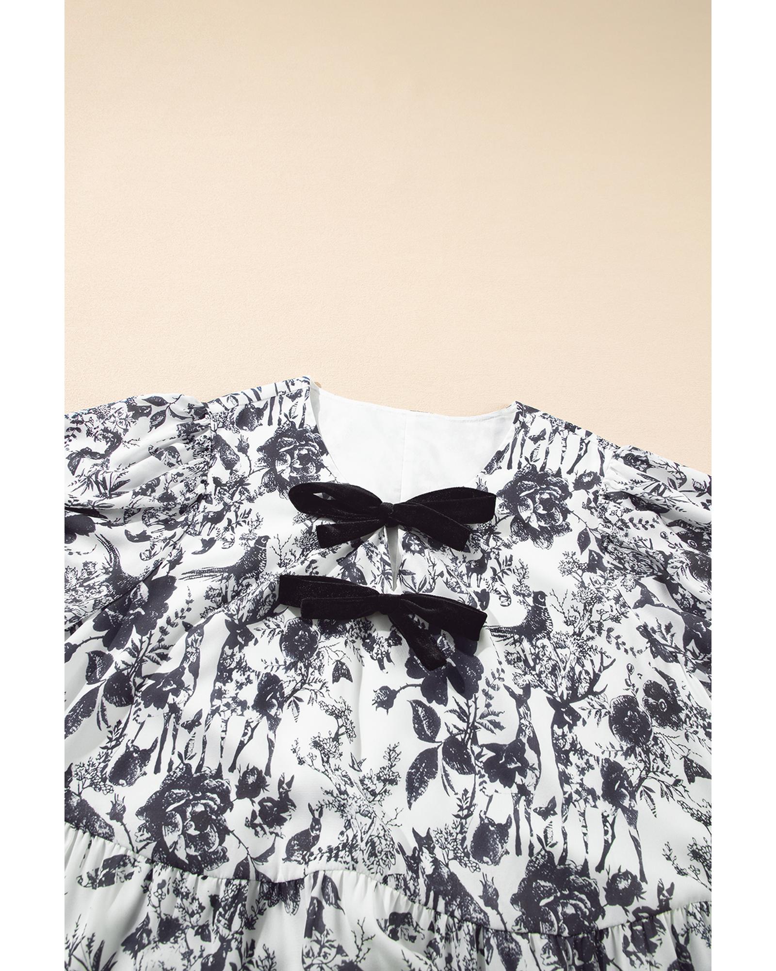 Black Floral Print Bow Detail Puff Sleeve Plus Size Midi Dress – 4X