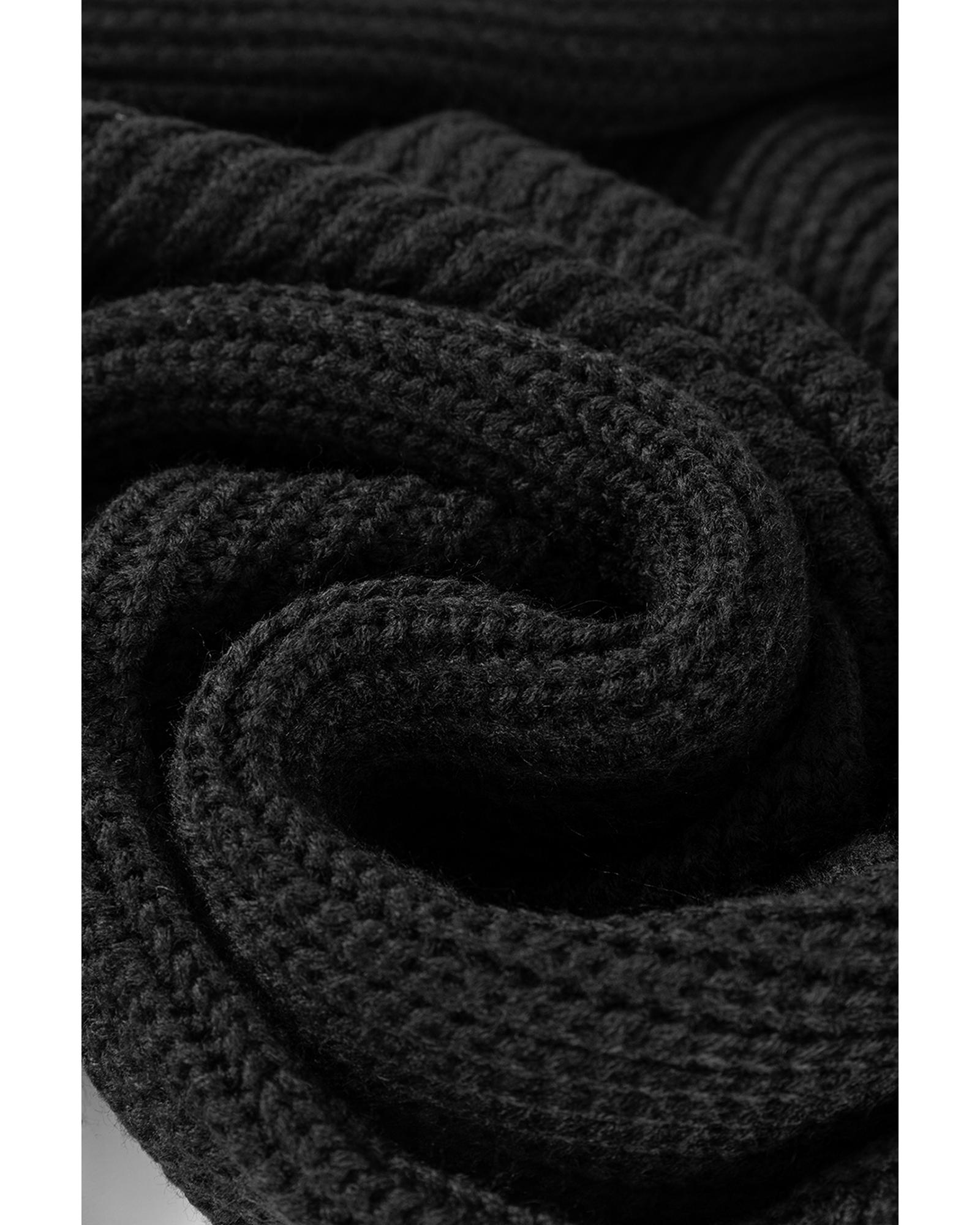 Black Colorblock Striped V Neck Knitted Loose Sweater - L