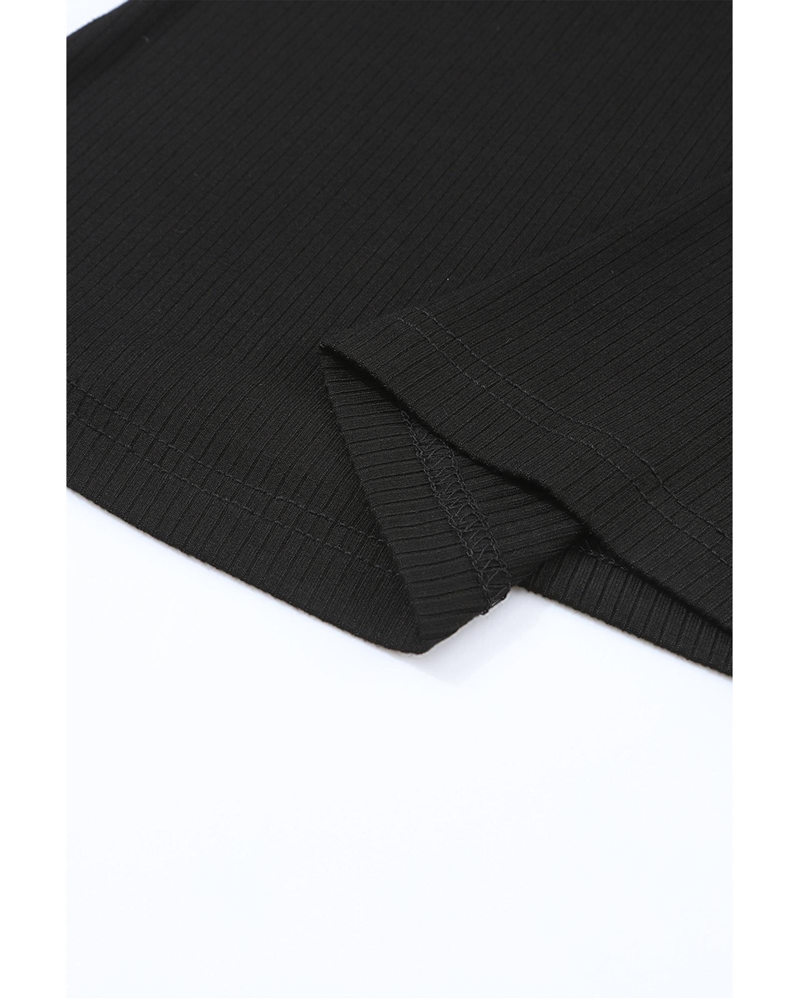 Black Flower Puff Sleeve Ribbed Knit Top – XL