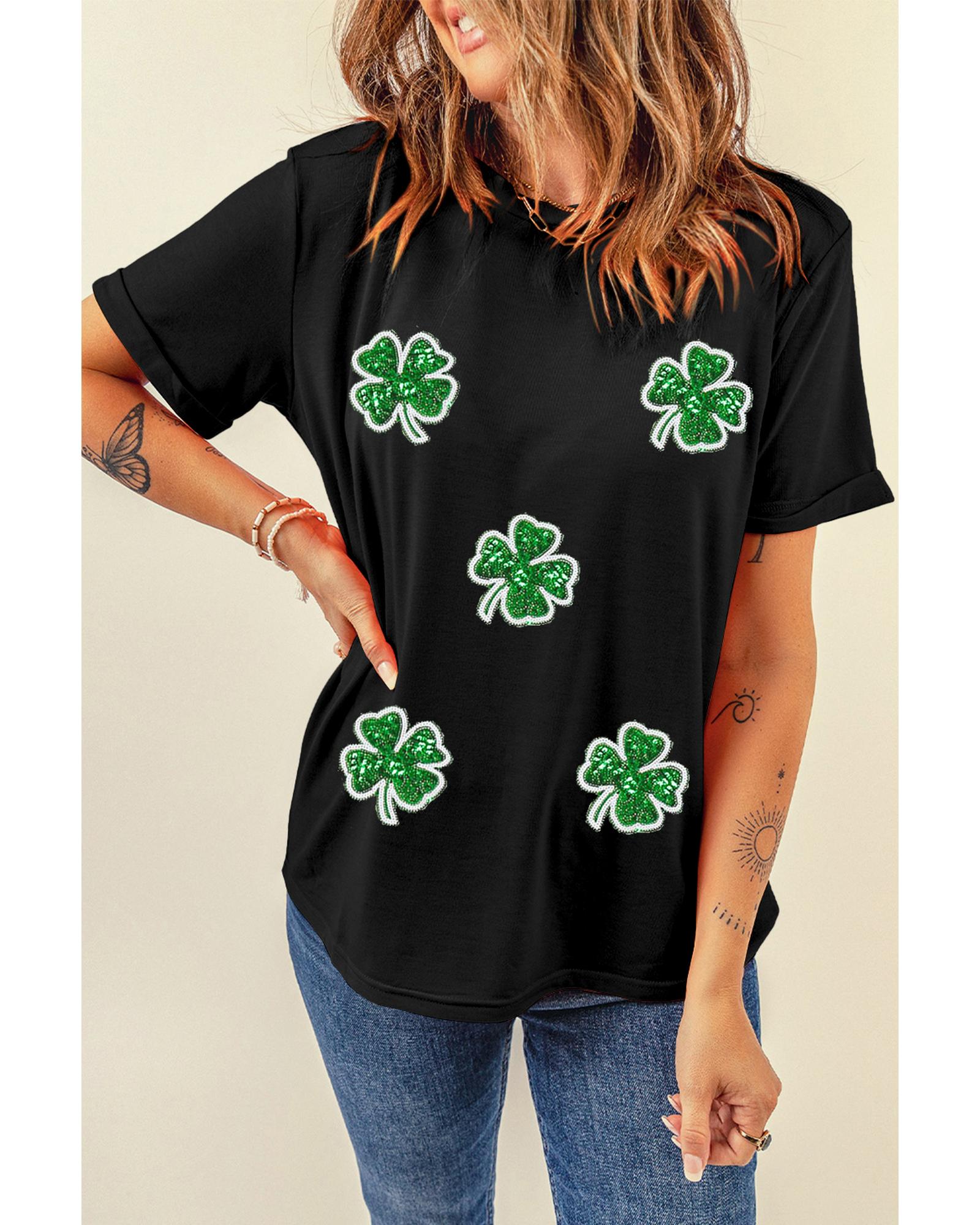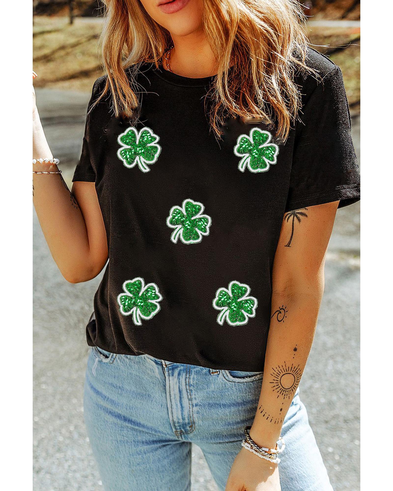 Black Four Leaf Clover Graphic St. Patricks Crewneck Tee – XL