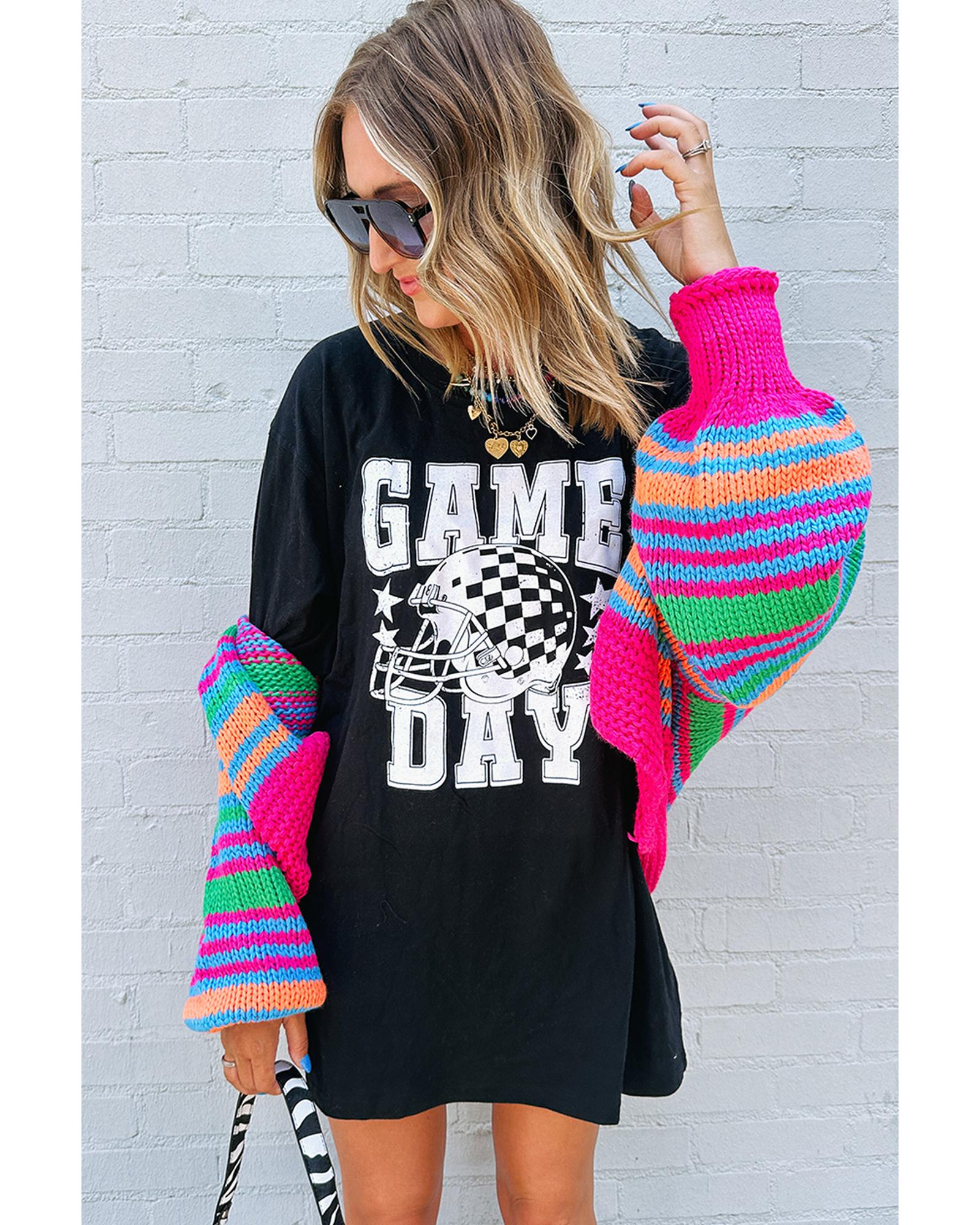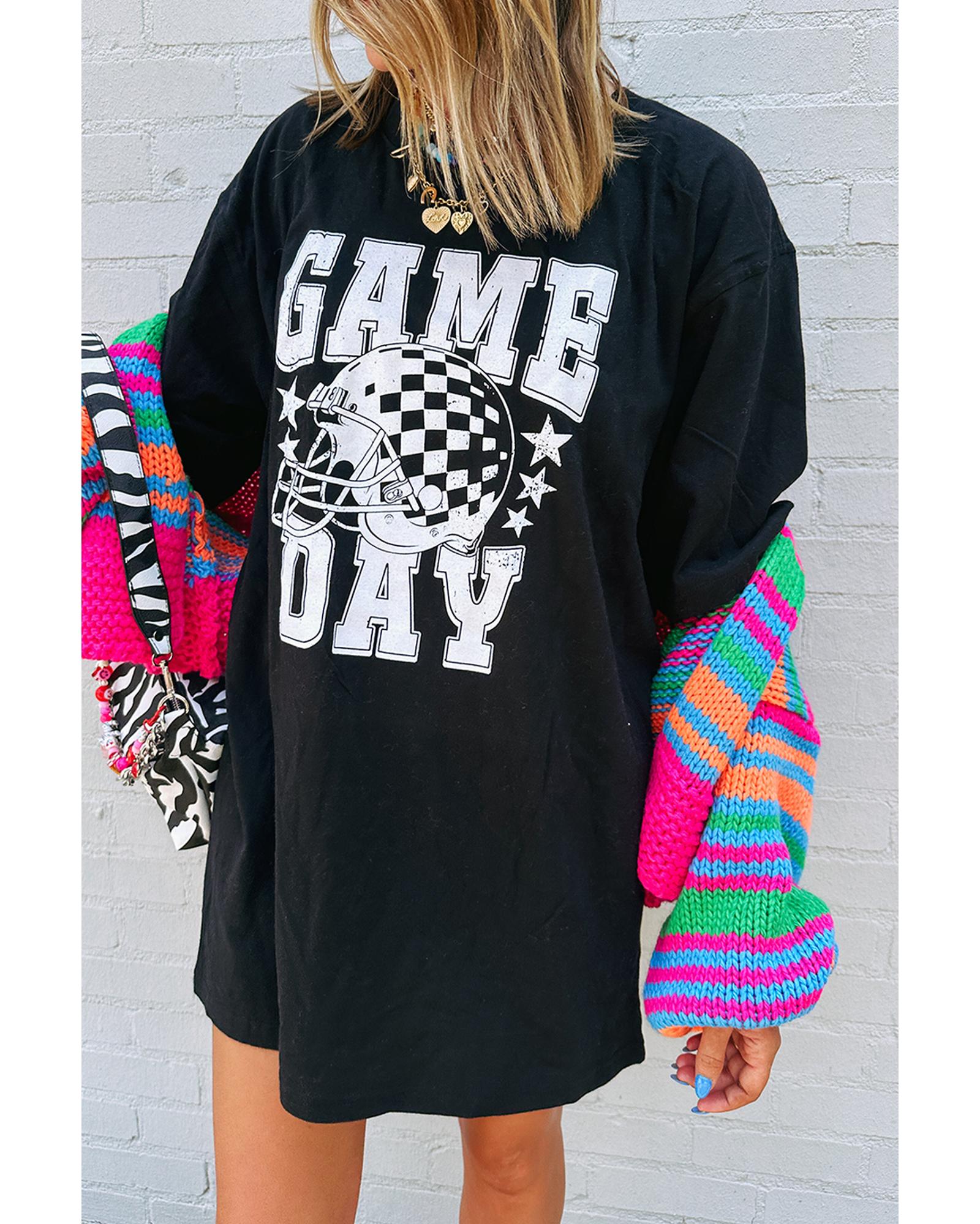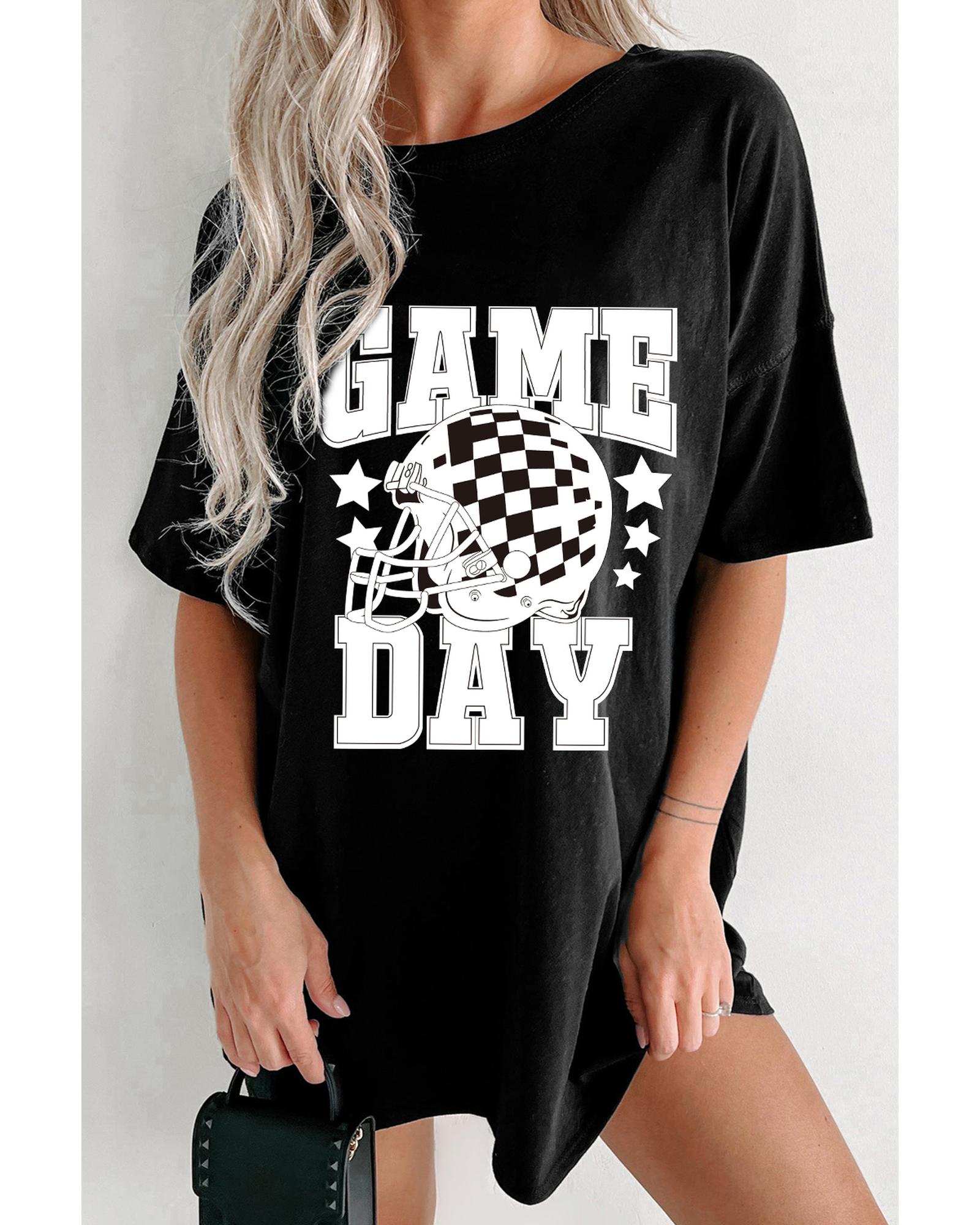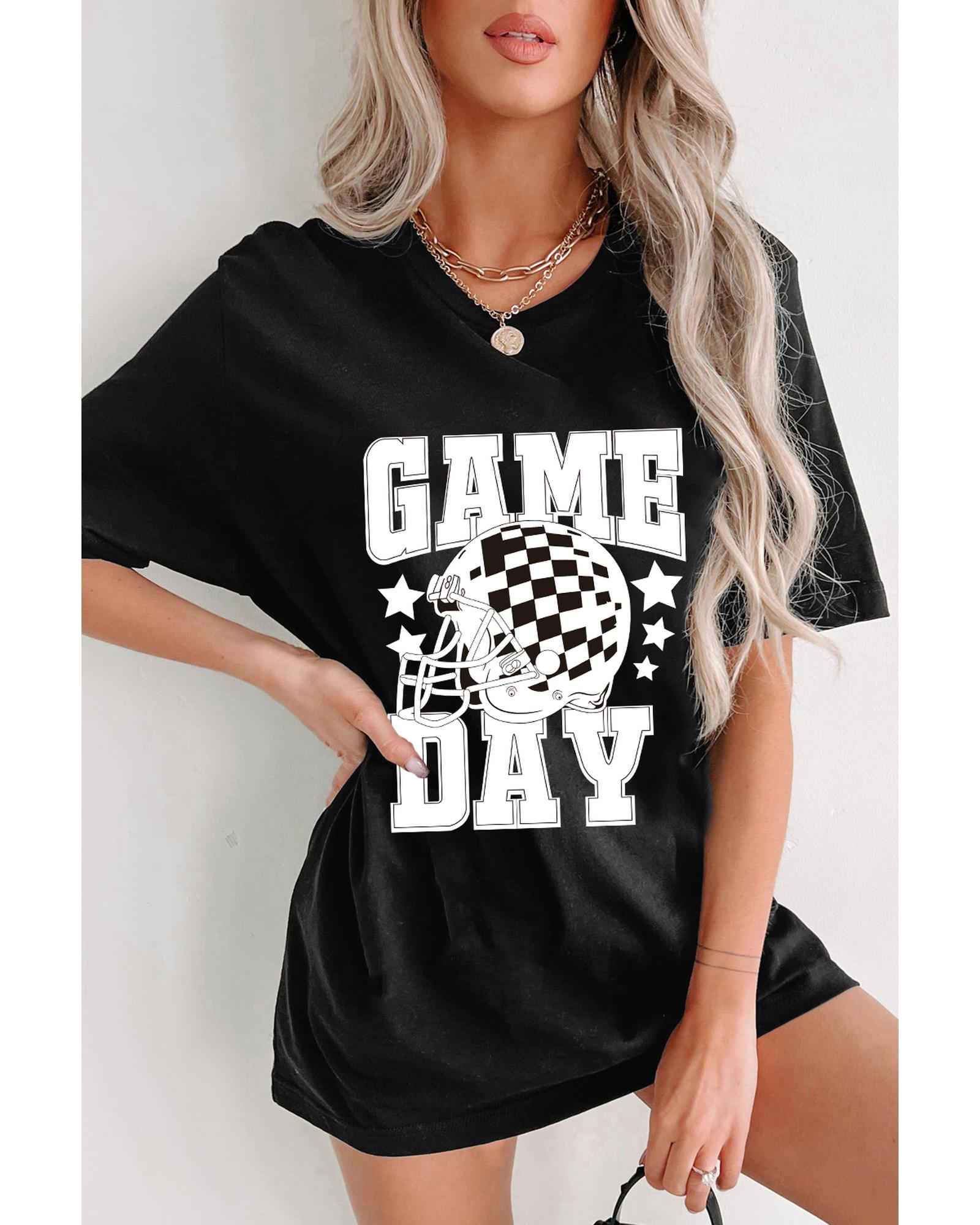 - Black GAME DAY Checkerboard Rugby Football Helmet T Shirt