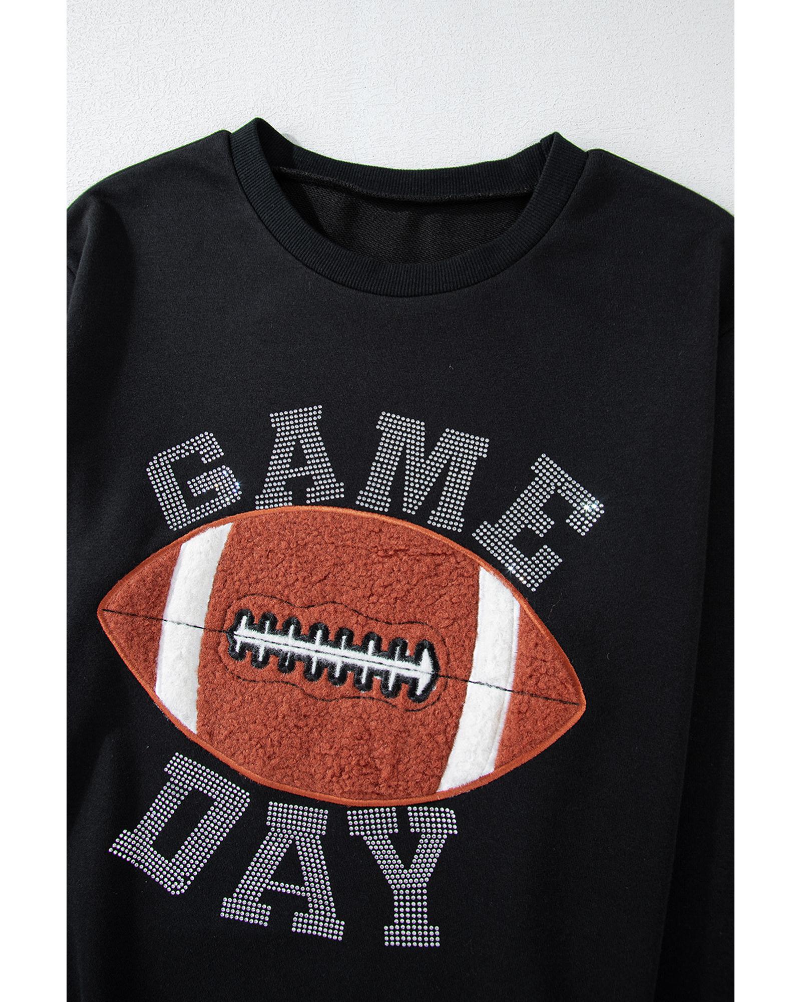 • Black GAME DAY Rugby Football Graphic Pullover and Shorts Casual Outfit