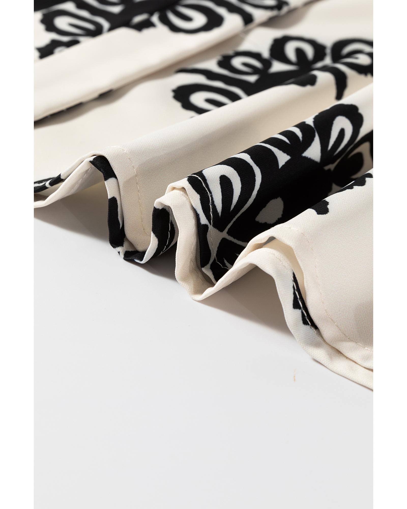 Black Geometric Print Short Sleeve V Neck Blouse – S