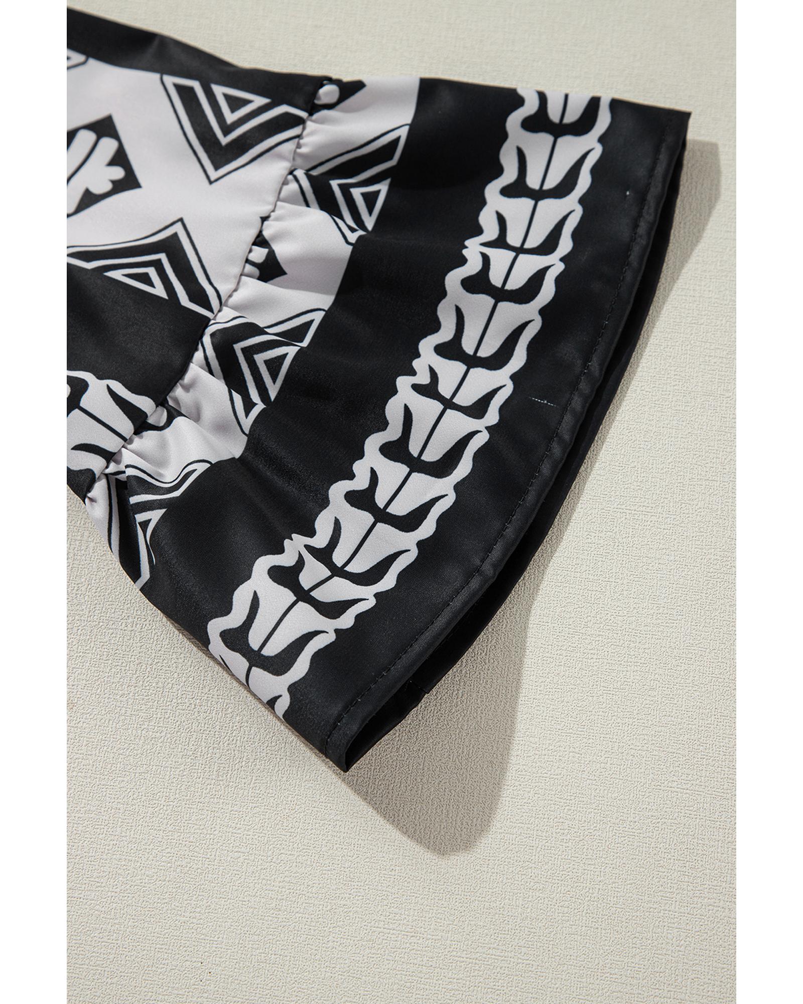 Black Geometric Print V Neck Ruffled Dress – S