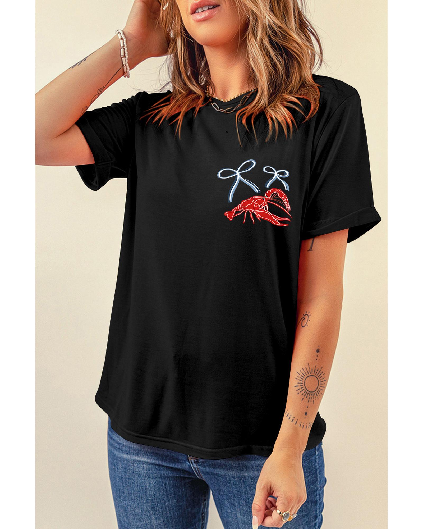 Black Girlie Bow Crawfish Printed T Shirt – 2XL