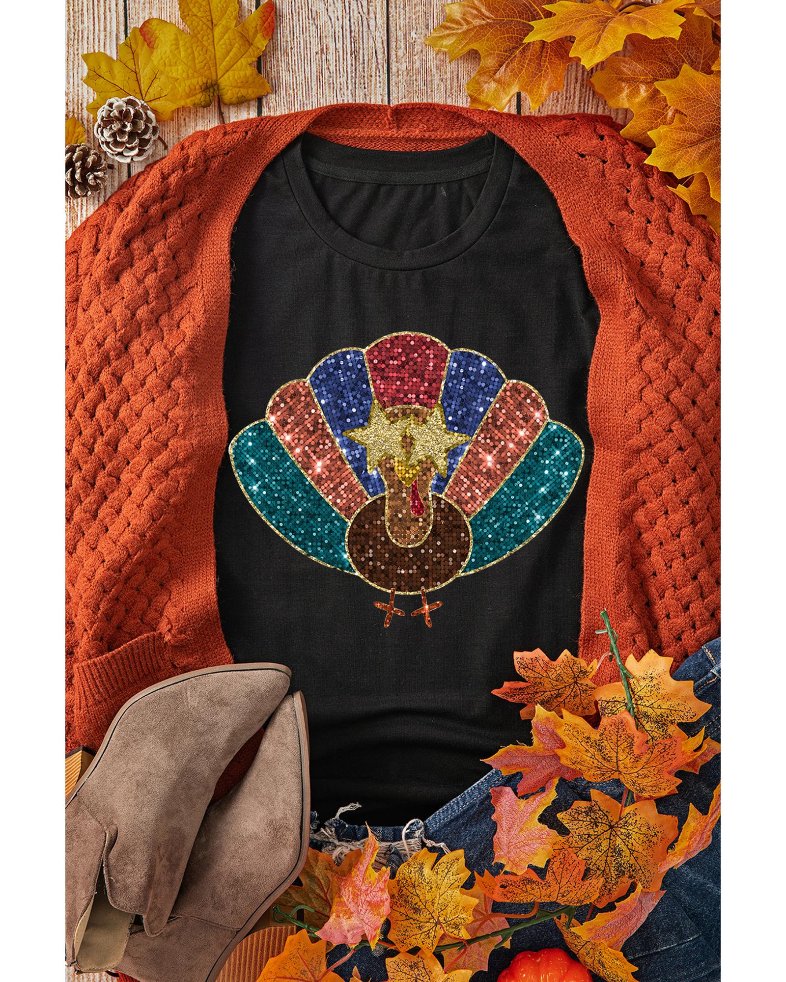 Black Glitter Turkey Heat Transfer Printing Thanksgiving T Shirt – S