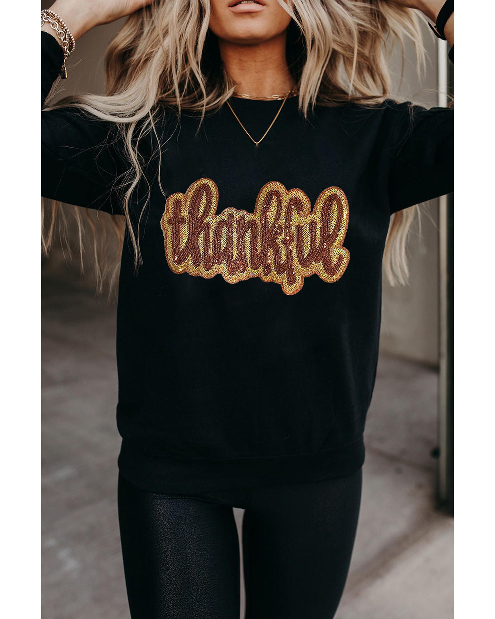 Black Glittering thankful Graphic Drop Shoulder Sweatshirt – XL