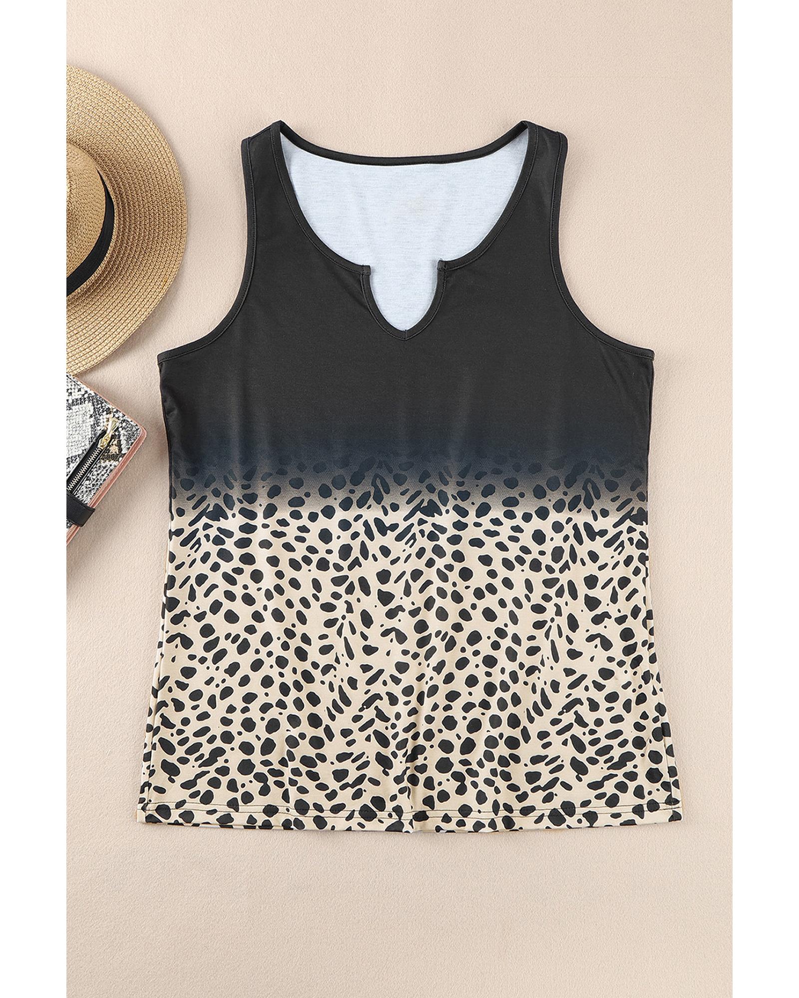 • Stylish and trendy Gradient Leopard Split Neck Tank Top