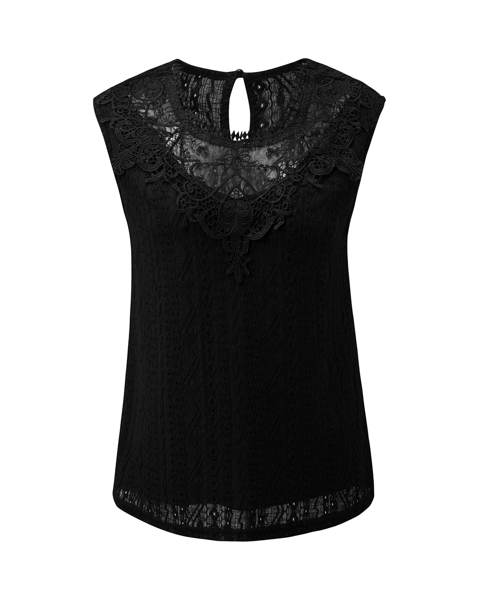 Black Guipure Lace Crochet Keyhole Back Tank Top – M
