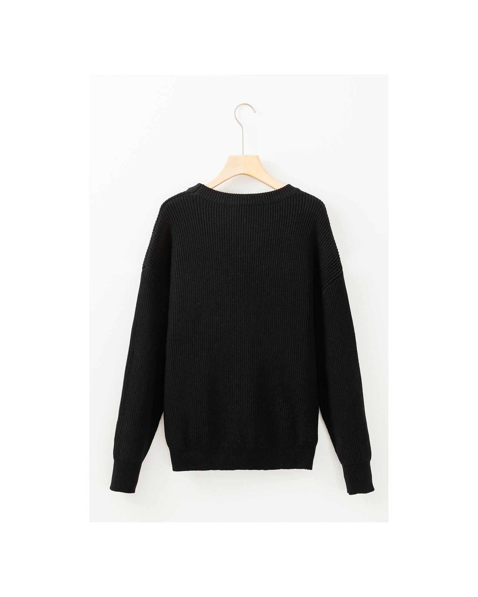 Beau Blue Floral O Neck Drop Shoulder Knitted Sweater - XL