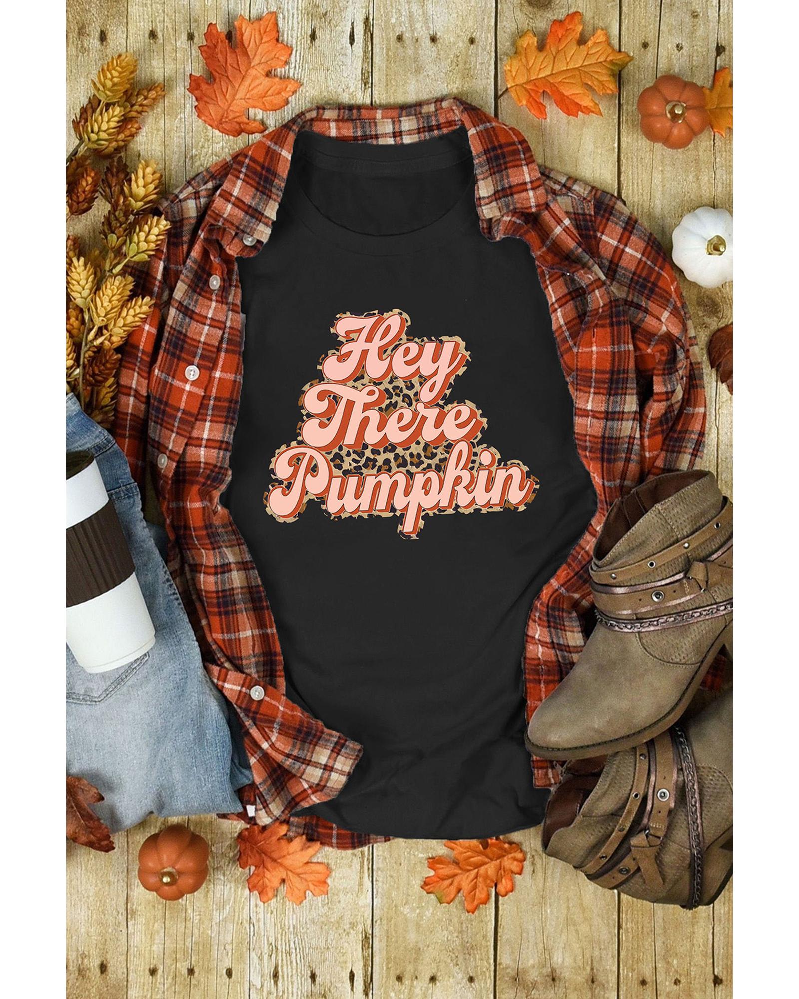 Stylish and trendy short - sleeve graphic tee for women Unique leopard graphic design with Hey There Pumpkin text Made from high