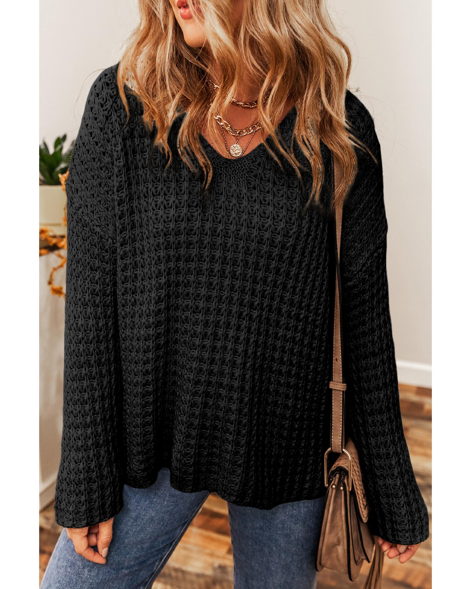 Beau Blue Flower Detail Knitted Notched Neck Sweater - L