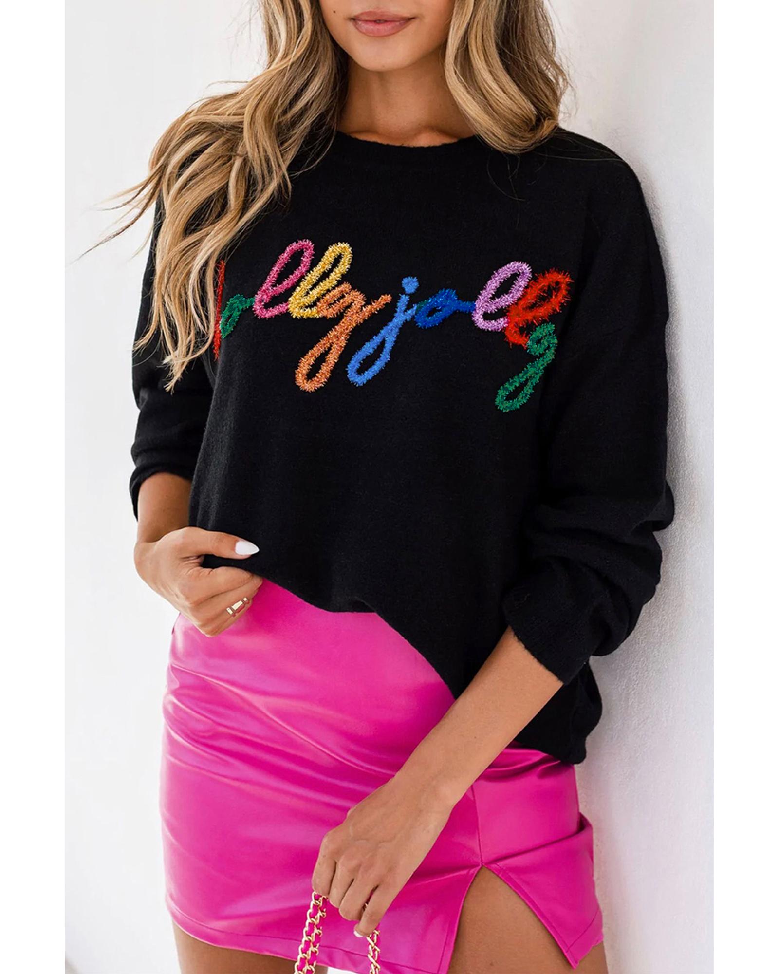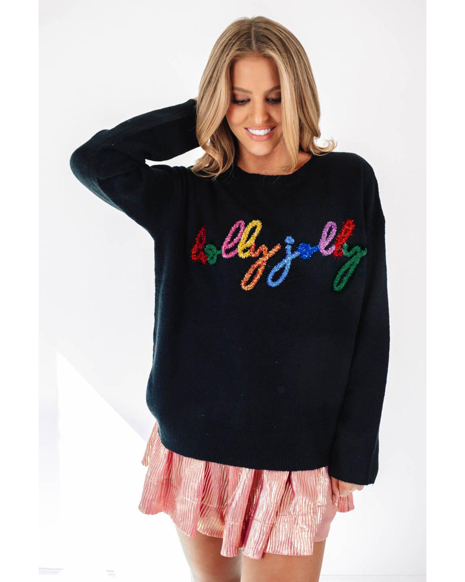 Black Holly Jolly Round Neck Casual Sweater – XL