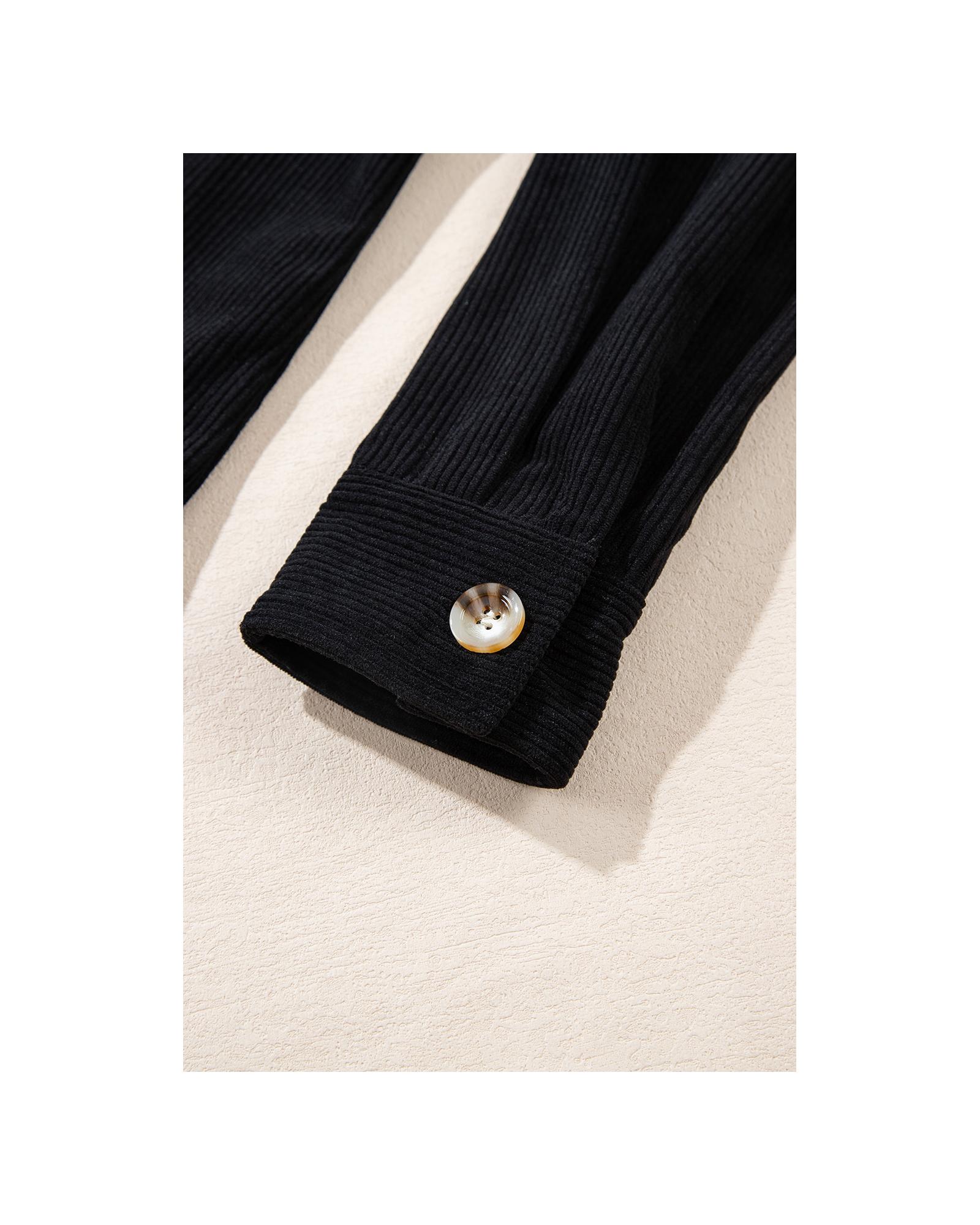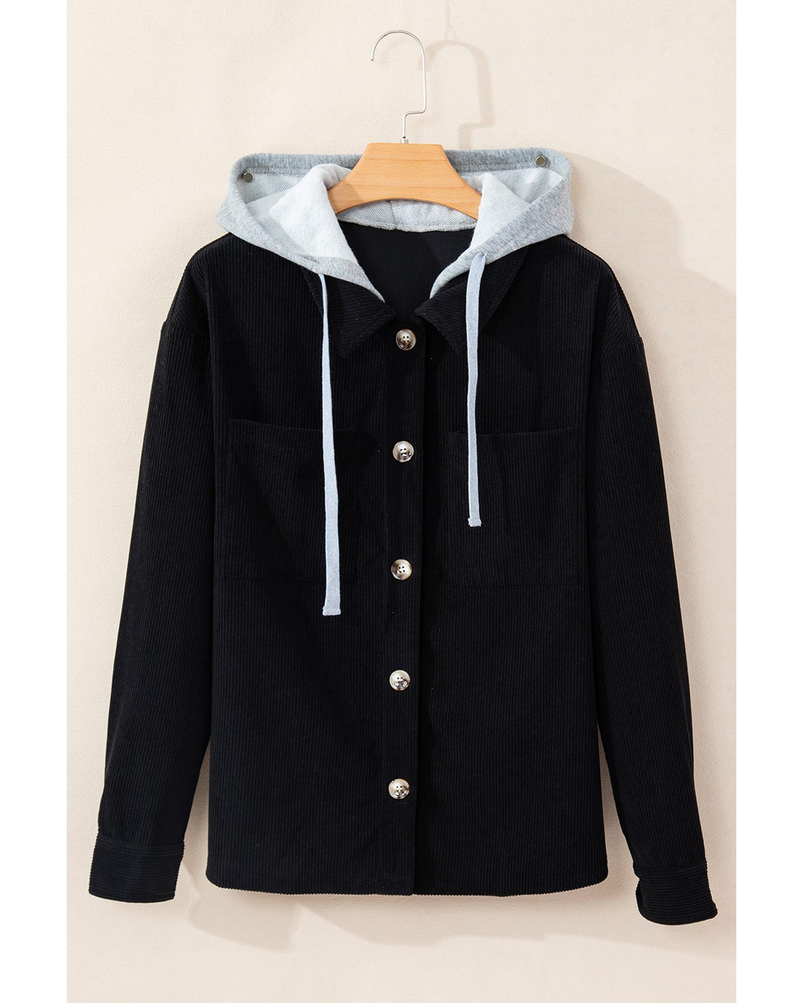 Black Hooded Drawstring Pockets Corduroy Shacket – 2XL