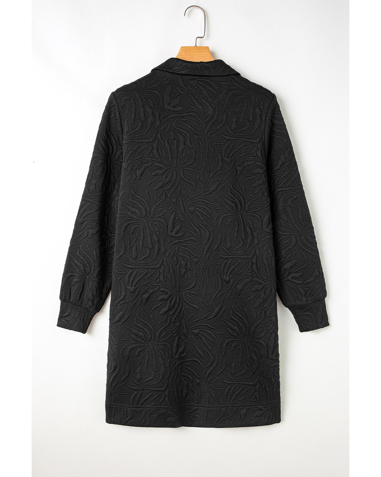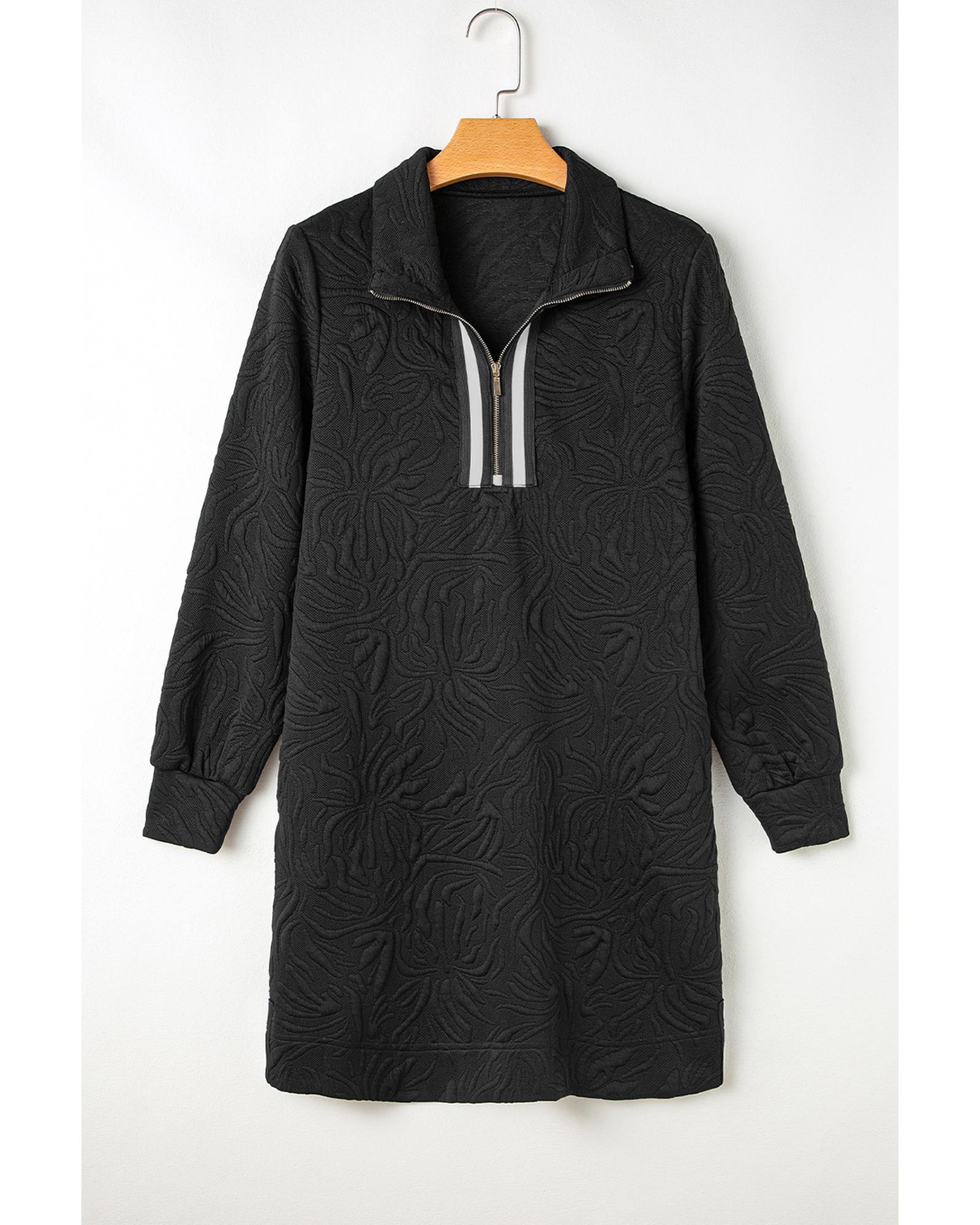 Black Jacquard Textured Quarter Zipper Shift Mini Dress – L