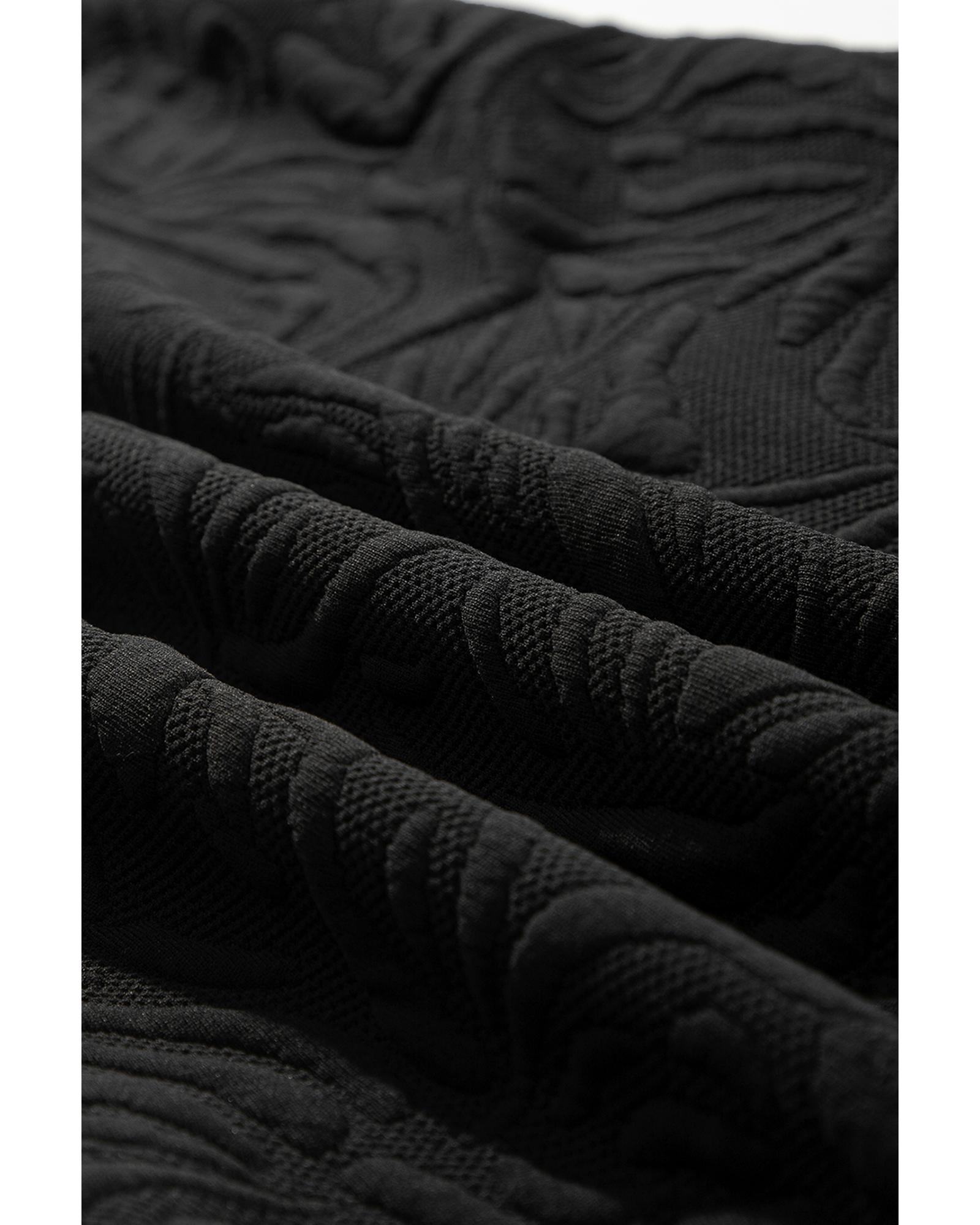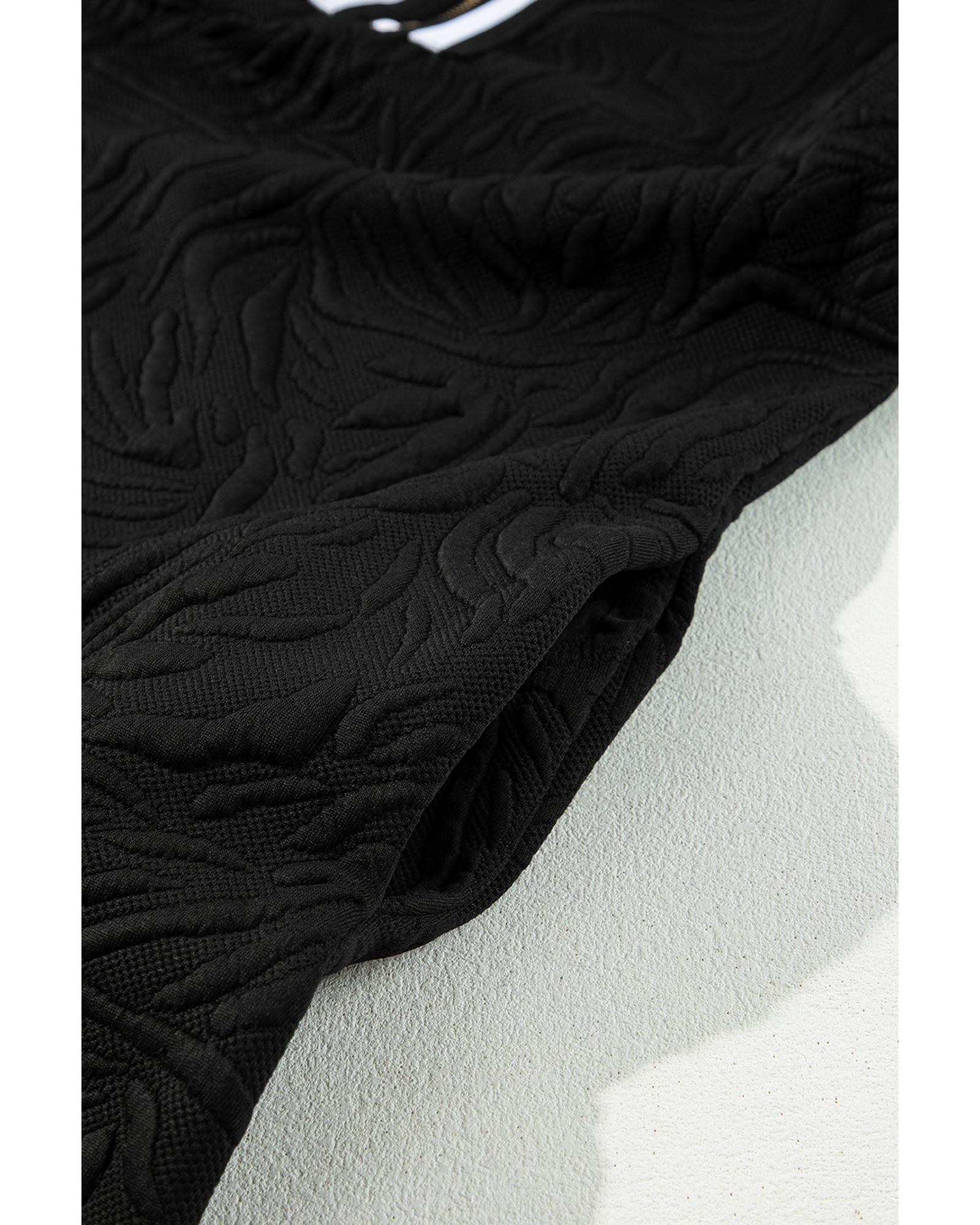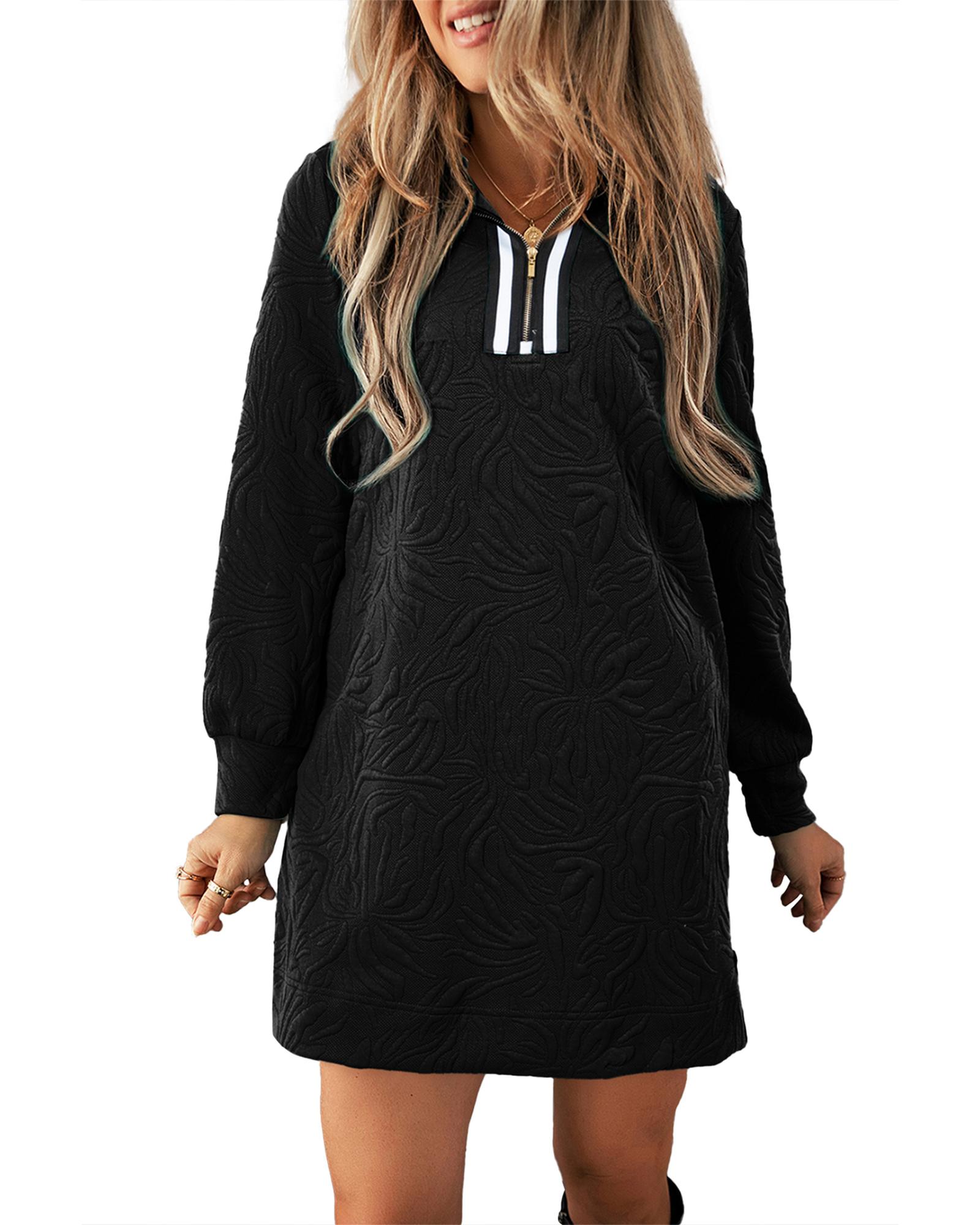 Black Jacquard Textured Quarter Zipper Shift Mini Dress – S