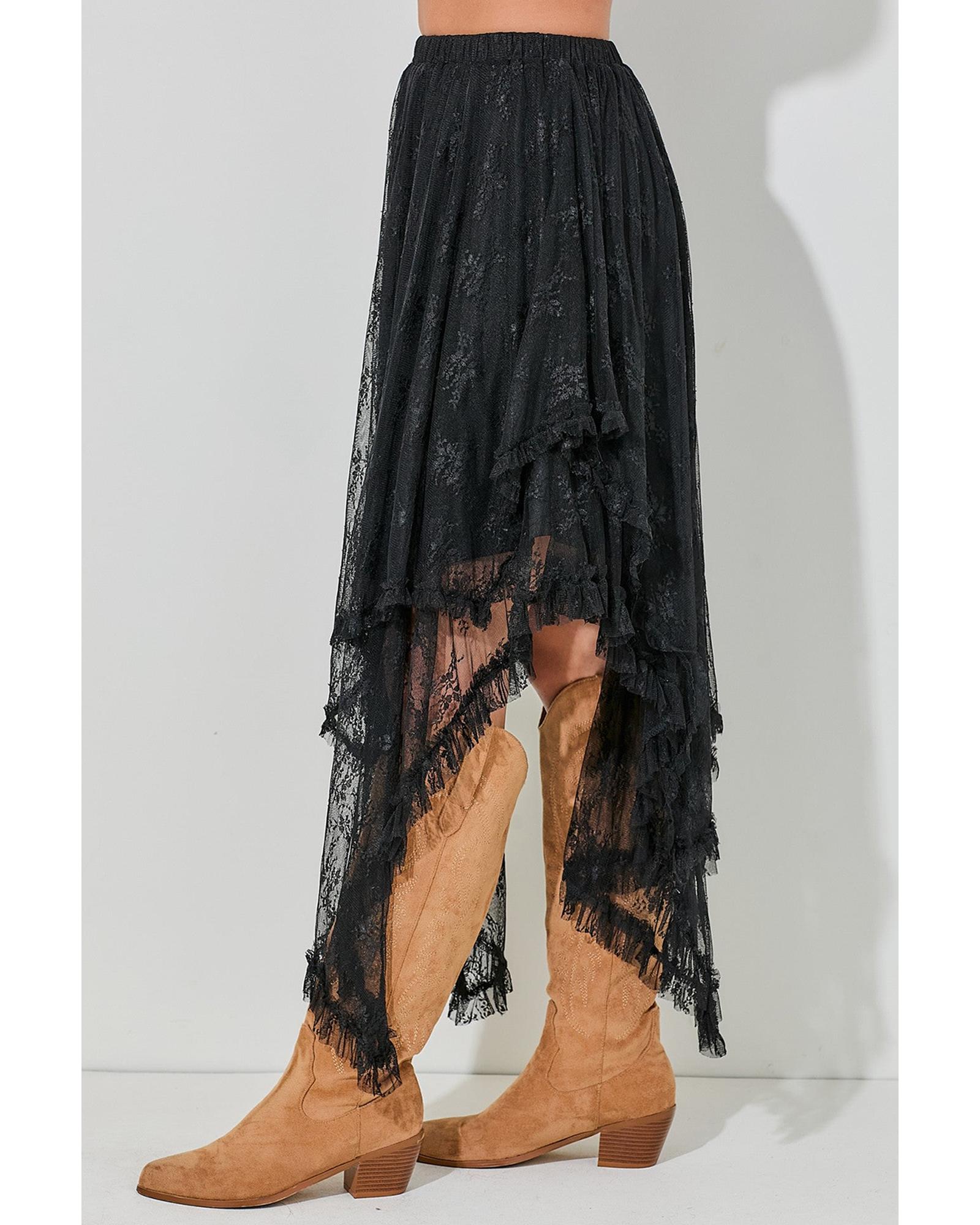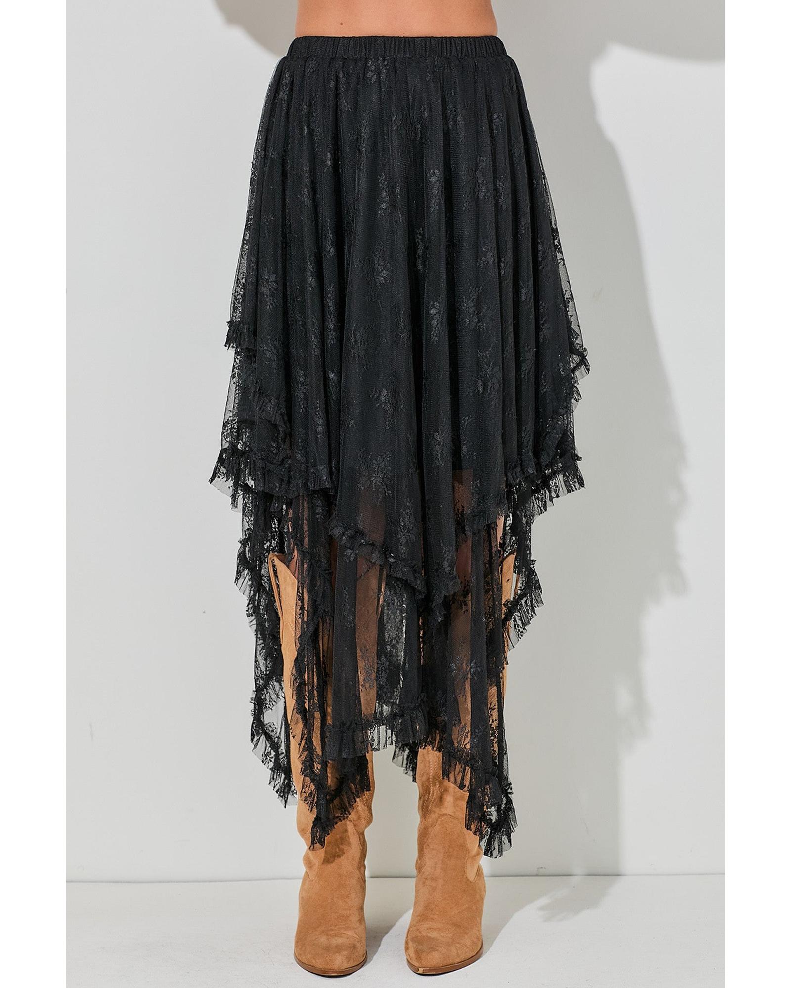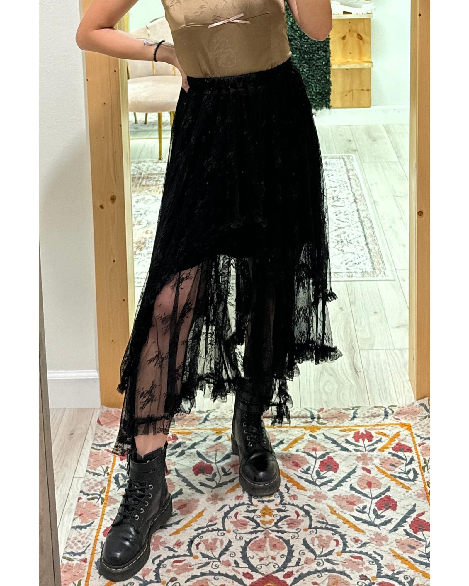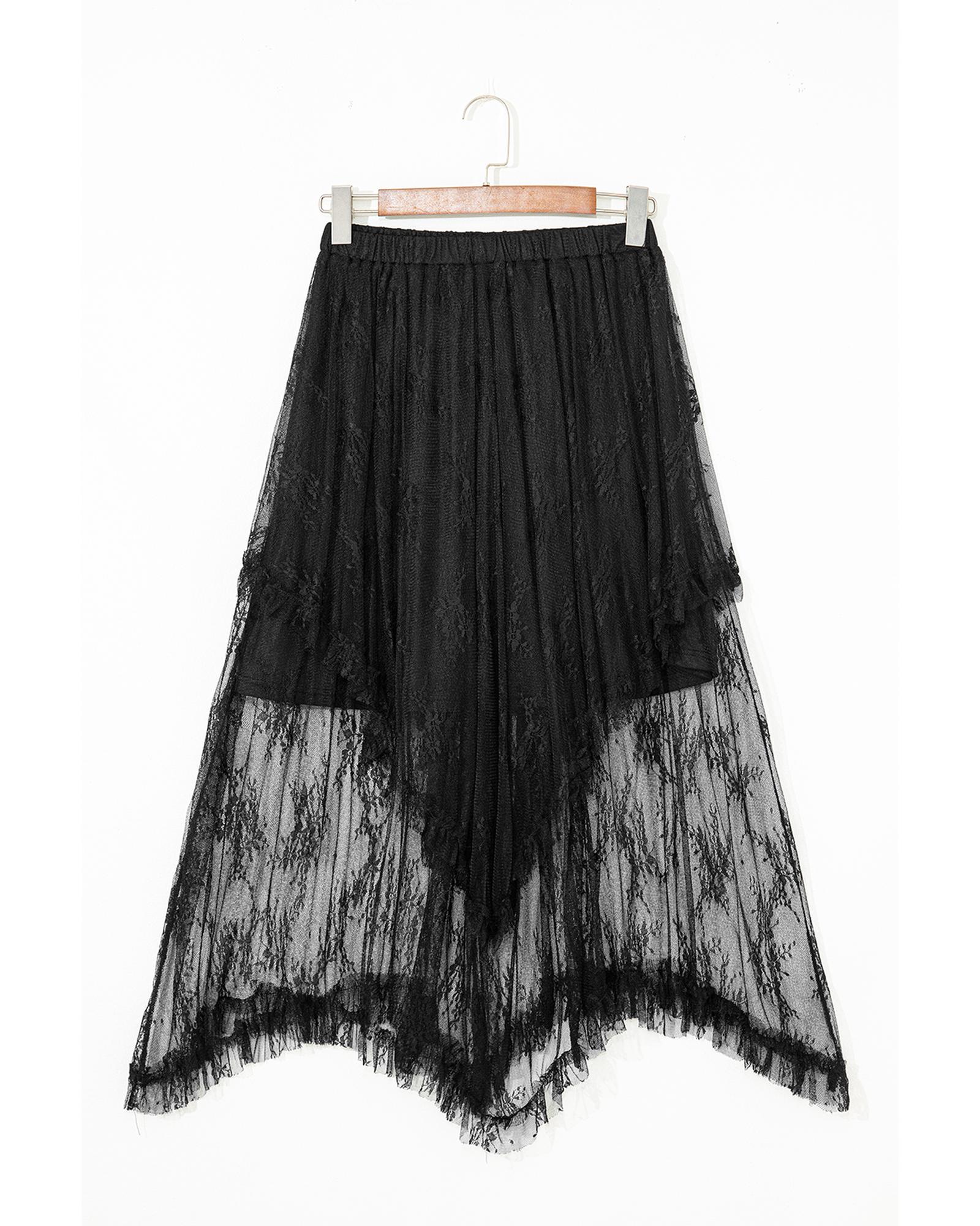 Black Lace Cascading Tiered High Waist Maxi Skirt – L