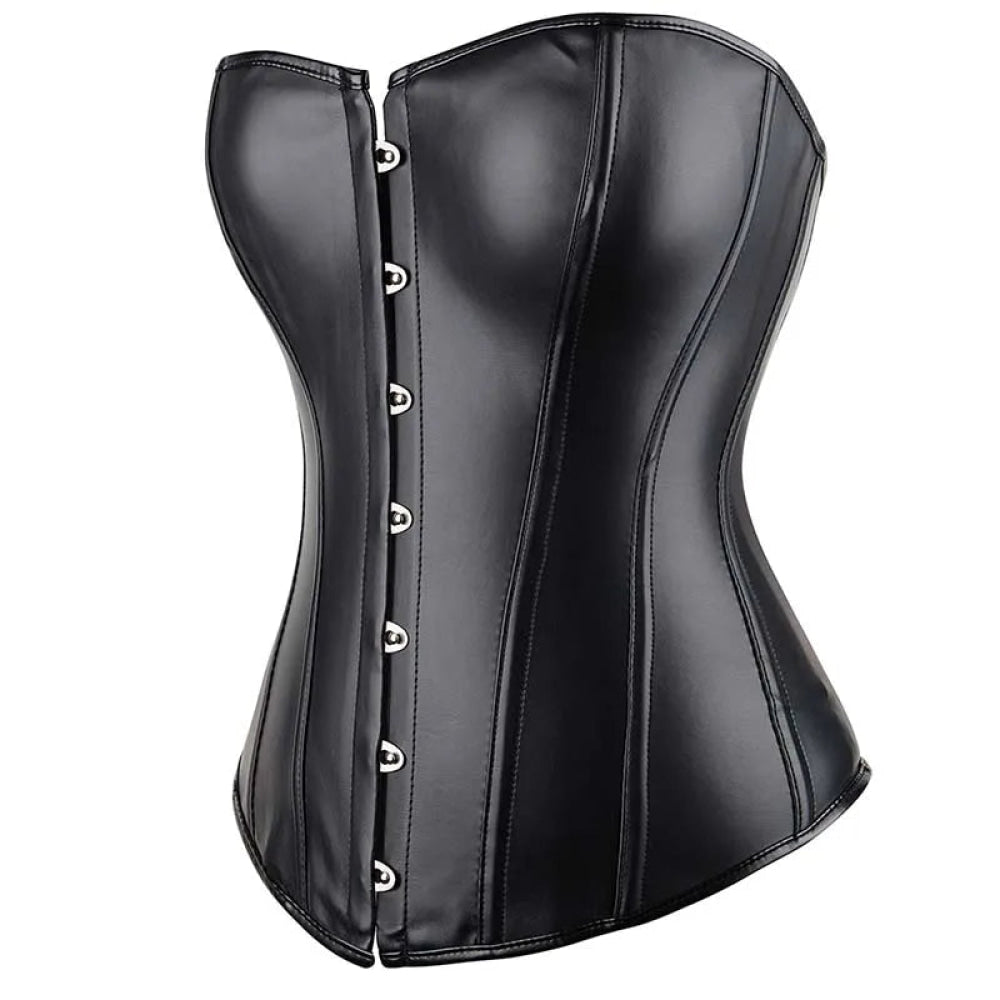 Black Leather Plus Size Corset Slimming S-6Xl Bustier With Lace-Up Boning And Pleated Design – Black – 5Xl