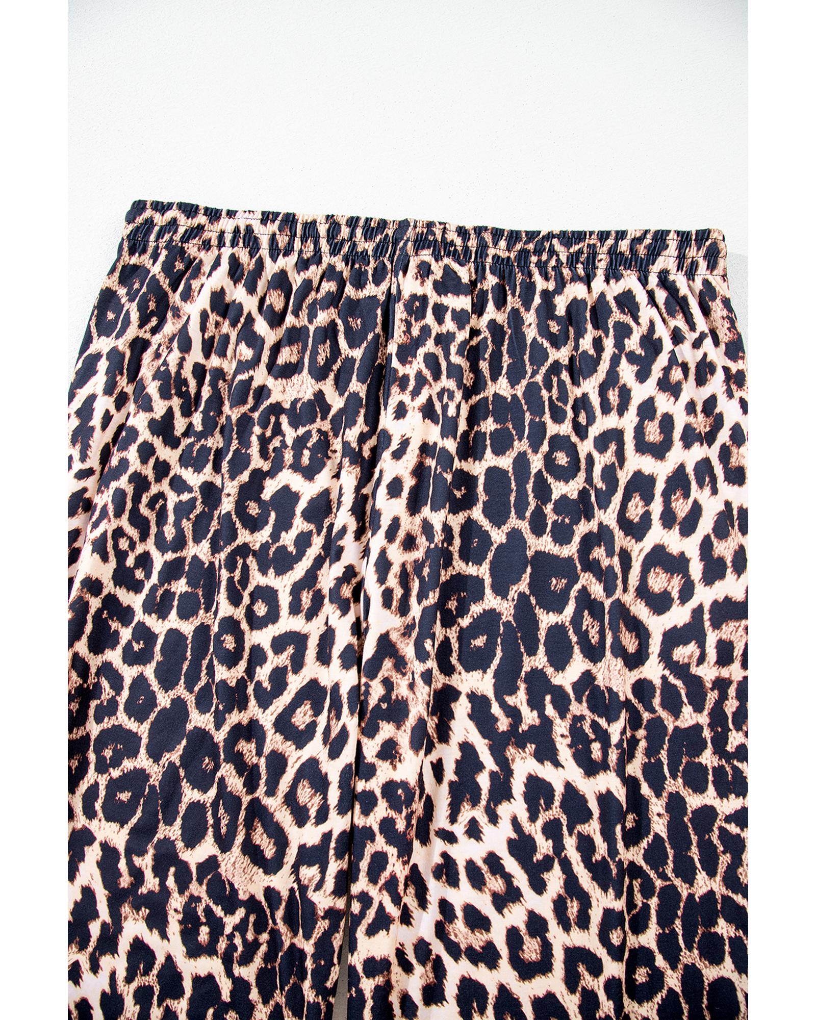 Black Leopard Patched Pocket Long Sleeve Top Plus Size Pants Set - 3X