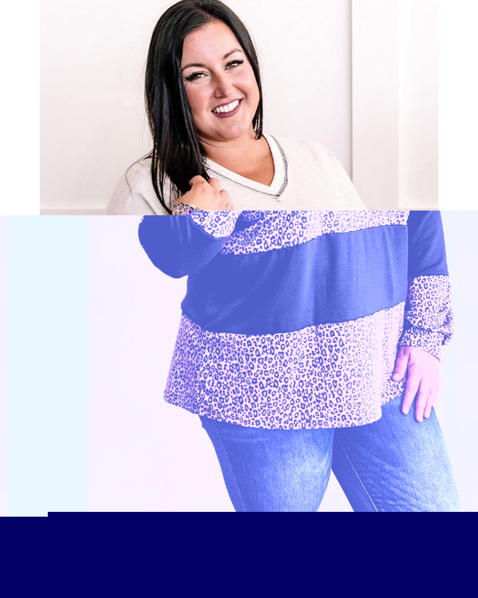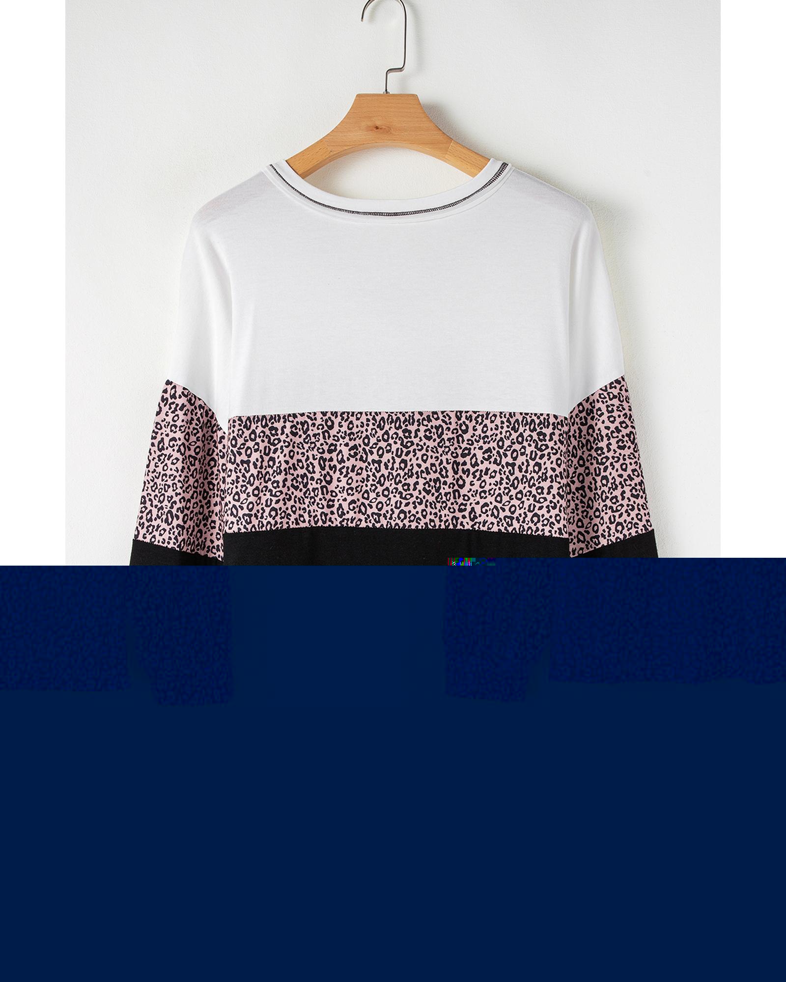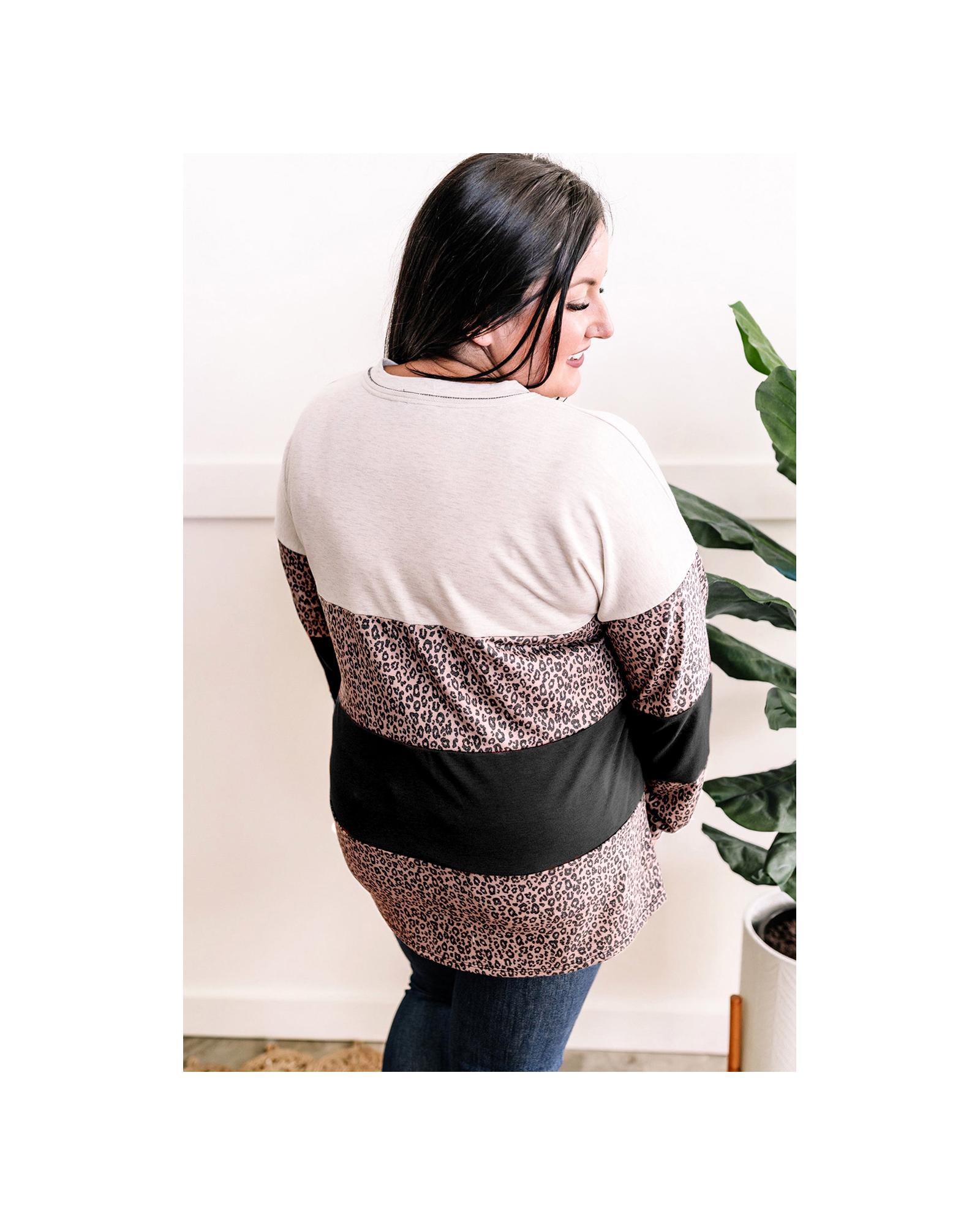 Black Leopard Print Colorblock V Neck Long Sleeve Plus Size Top – 2X