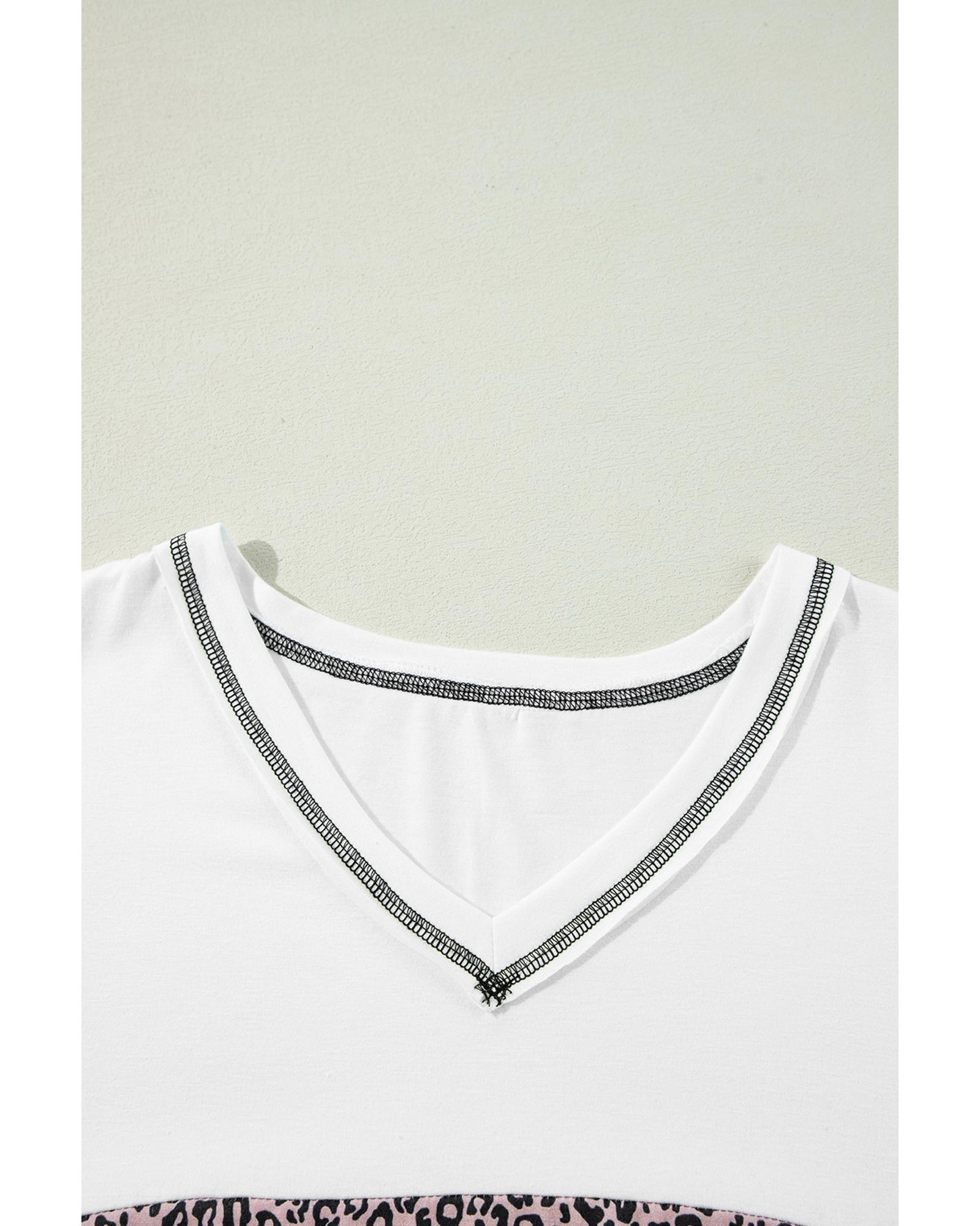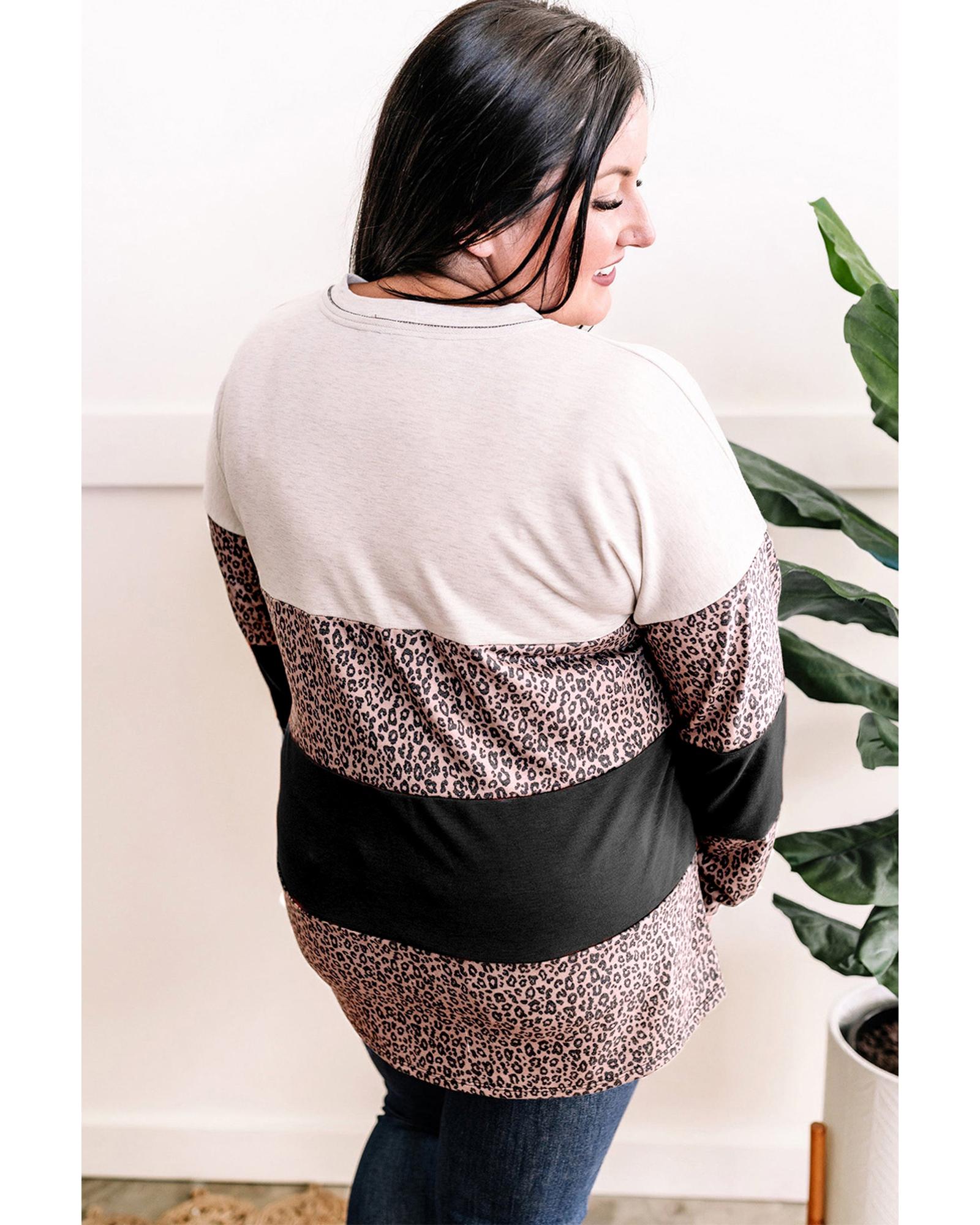 Black Leopard Print Colorblock V Neck Long Sleeve Plus Size Top – 4X