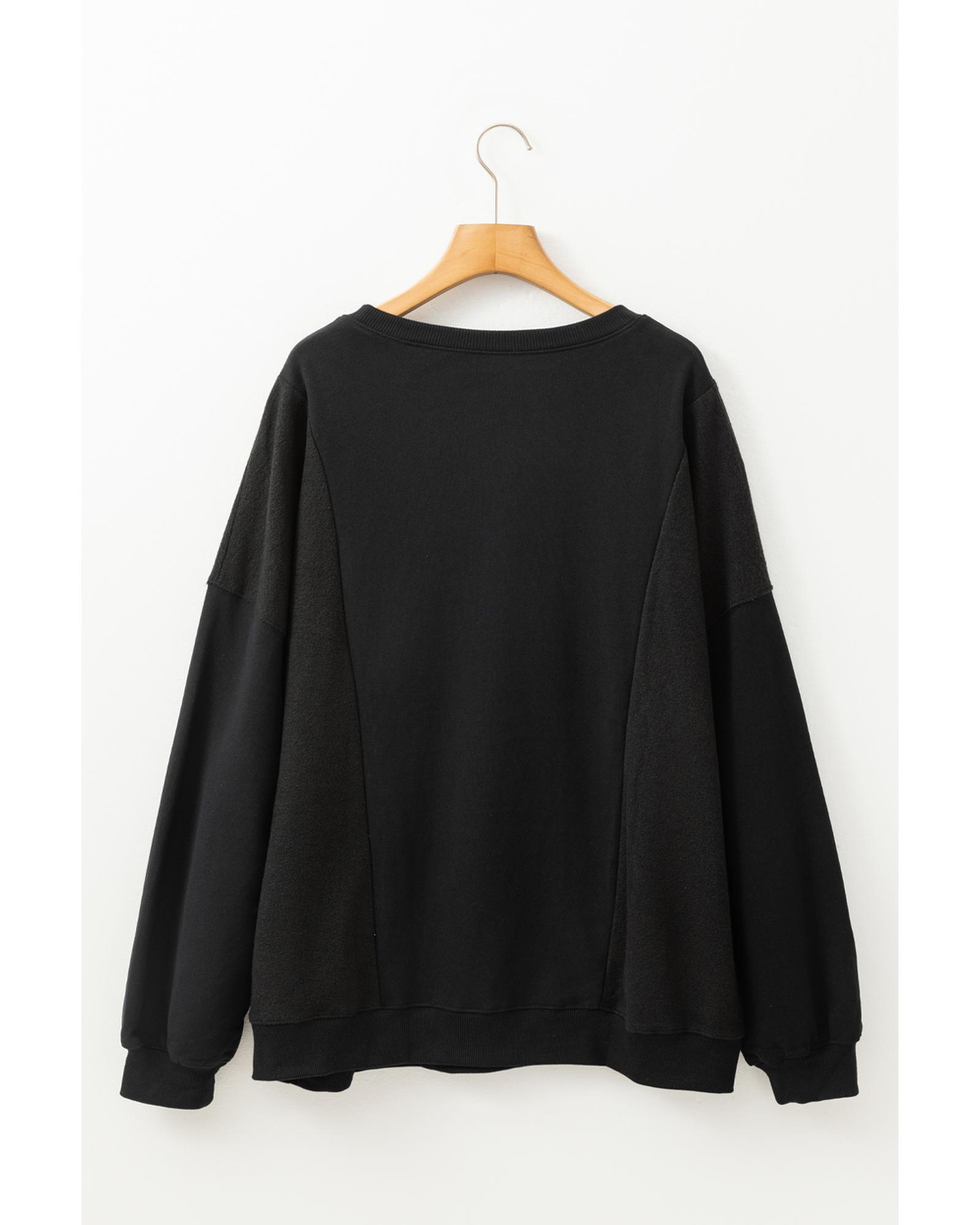 Black Loose Patchwork Crewneck Plus Size Sweatshirt – 2X